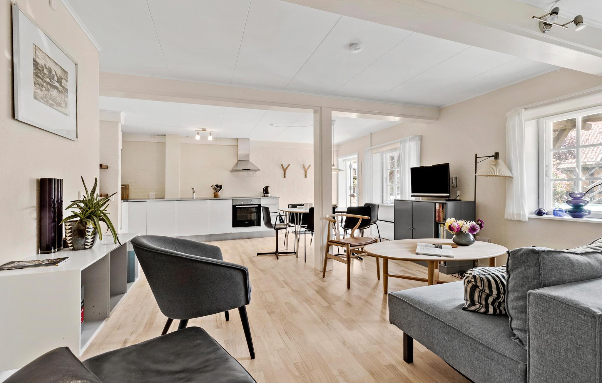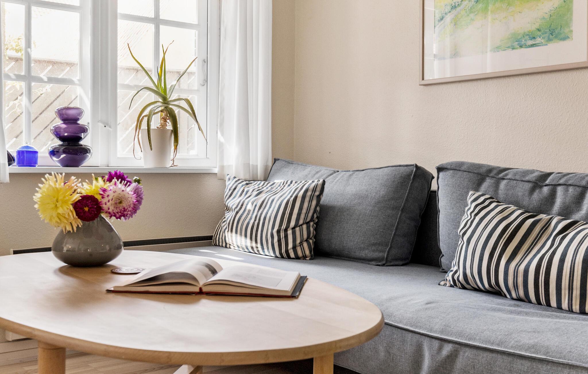 Am Hafen von Svaneke empfängt Sie in einem großen Fachwerkhaus mit mehreren Ferienwohnungen diese charmante und stilvolle Wohnung. Treten Sie ein und genießen die liebevolle Dekoration, die schönen Möbel und die Wohlfühlatmosphäre, die Sie umgibt. Beginnen Sie Ihre Ferientage mit einem leckeren Frühstück auf der überdachten Terrasse, nachdem Sie am frühen Morgen schon die ersten Bahnen im Swimmingpool gezogen haben.