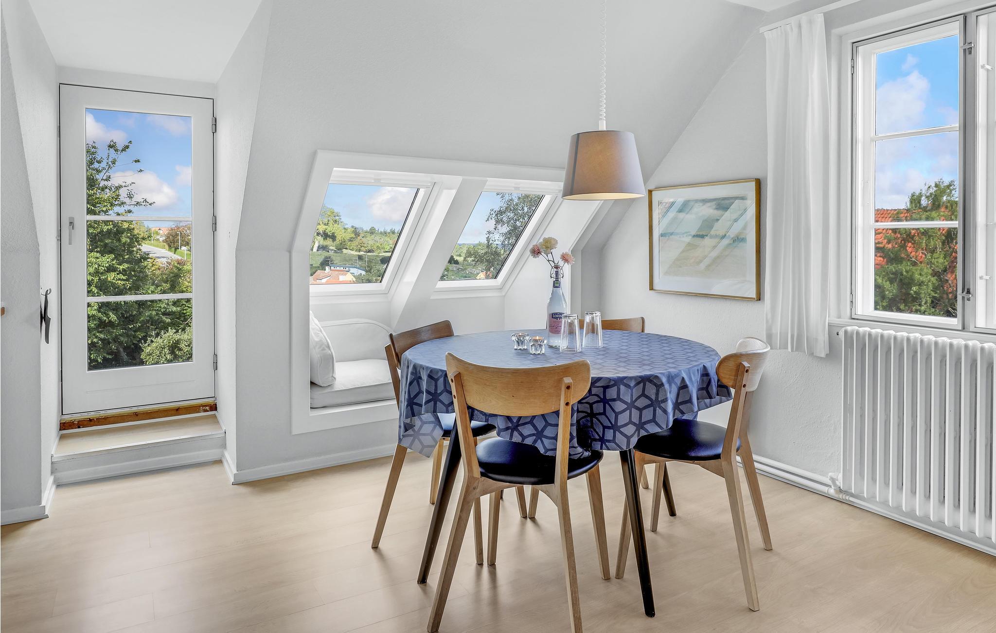 Freuen Sie sich auf diese schöne Wohnung, die zentral im beliebten Svaneke, nahe des Hafens und des Stadtplatzes liegt. Sie wohnen in einem gepflegten gutbürgerlichen Haus mit insgesamt vier Ferienwohnungen und einem großen Gemeinschaftsgarten mit Grill. Die Ferienwohnung bietet Platz für vier Gäste, die sich auf die beiden Schlafzimmer verteilen können. Der Rest der Wohnung besteht aus einem Wohnzimmer und einer offenen Küche mit allen Geräten, die Sie zum gelungenen Zubereiten Ihrer Urlaubsgerichte benötigen. Sie haben ebenfalls Zugang zu einer gemeinsamen Waschmaschine und einem Trockner im Keller, ebenso zu einer Garage für Fahrräder.