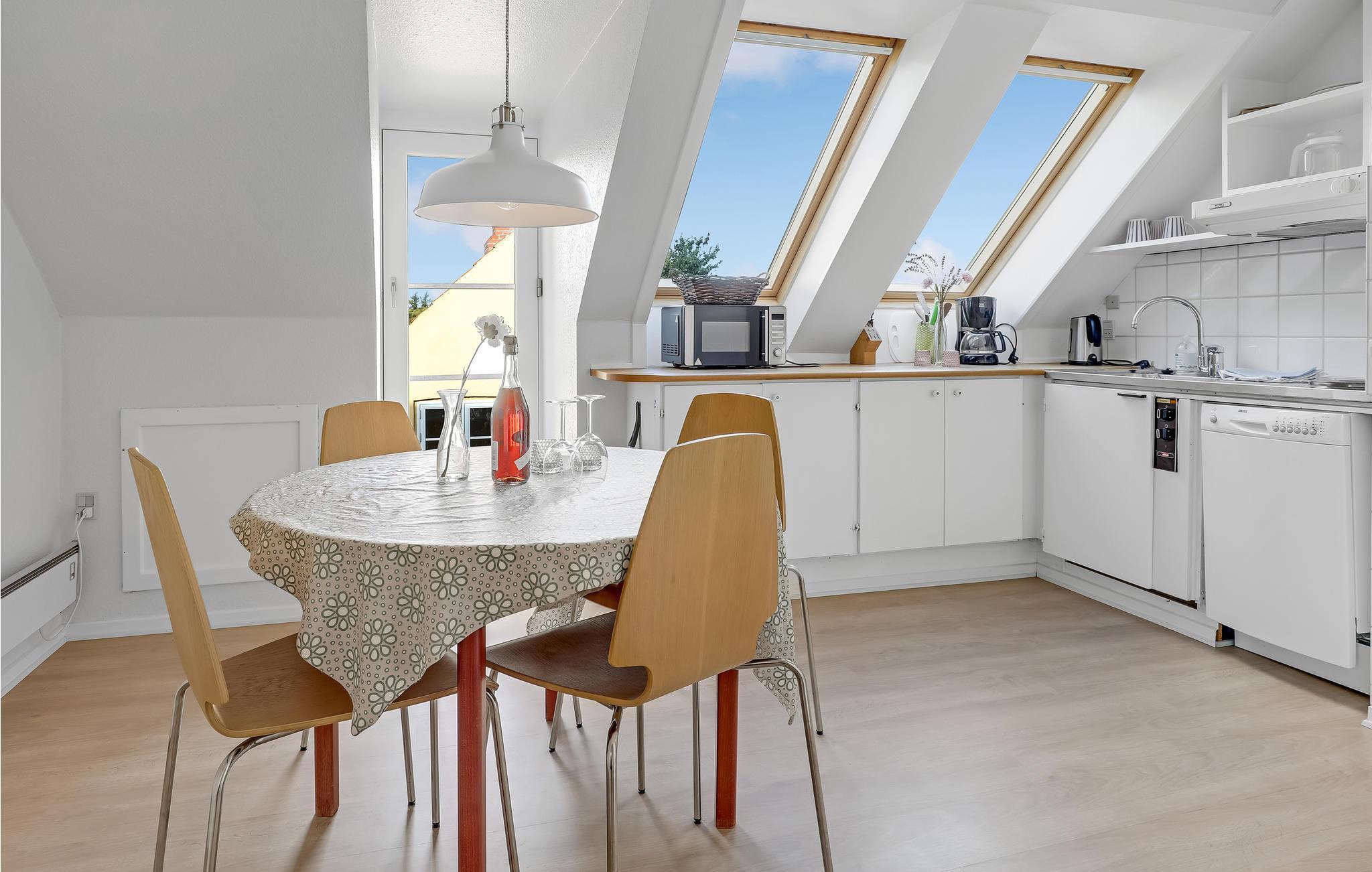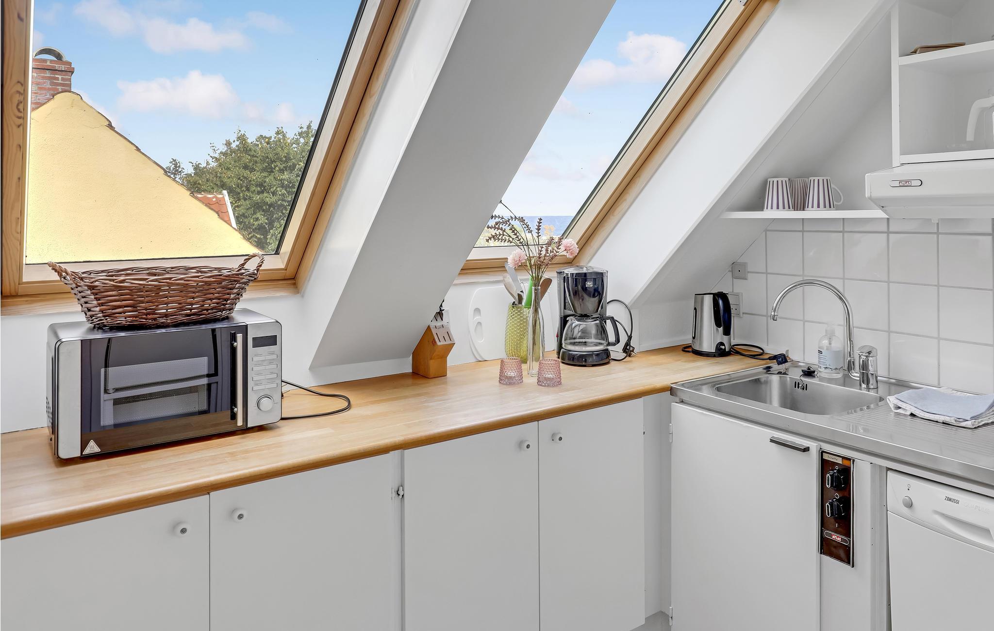 Freuen Sie sich auf diese schöne Wohnung, die zentral im beliebten Svaneke, nahe des Hafens und des Stadtplatzes liegt. Sie wohnen in einem gepflegten gutbürgerlichen Haus mit insgesamt vier Ferienwohnungen und einem großen Gemeinschaftsgarten mit Grill. Die Ferienwohnung bietet Platz für vier Gäste, die sich auf die beiden Schlafzimmer verteilen können. Der Rest der Wohnung besteht aus einem Wohnzimmer und einer offenen Küche mit allen Geräten, die Sie zum gelungenen Zubereiten Ihrer Urlaubsgerichte benötigen. Sie haben ebenfalls Zugang zu einer gemeinsamen Waschmaschine und einem Trockner im Keller, ebenso zu einer Garage für Fahrräder.