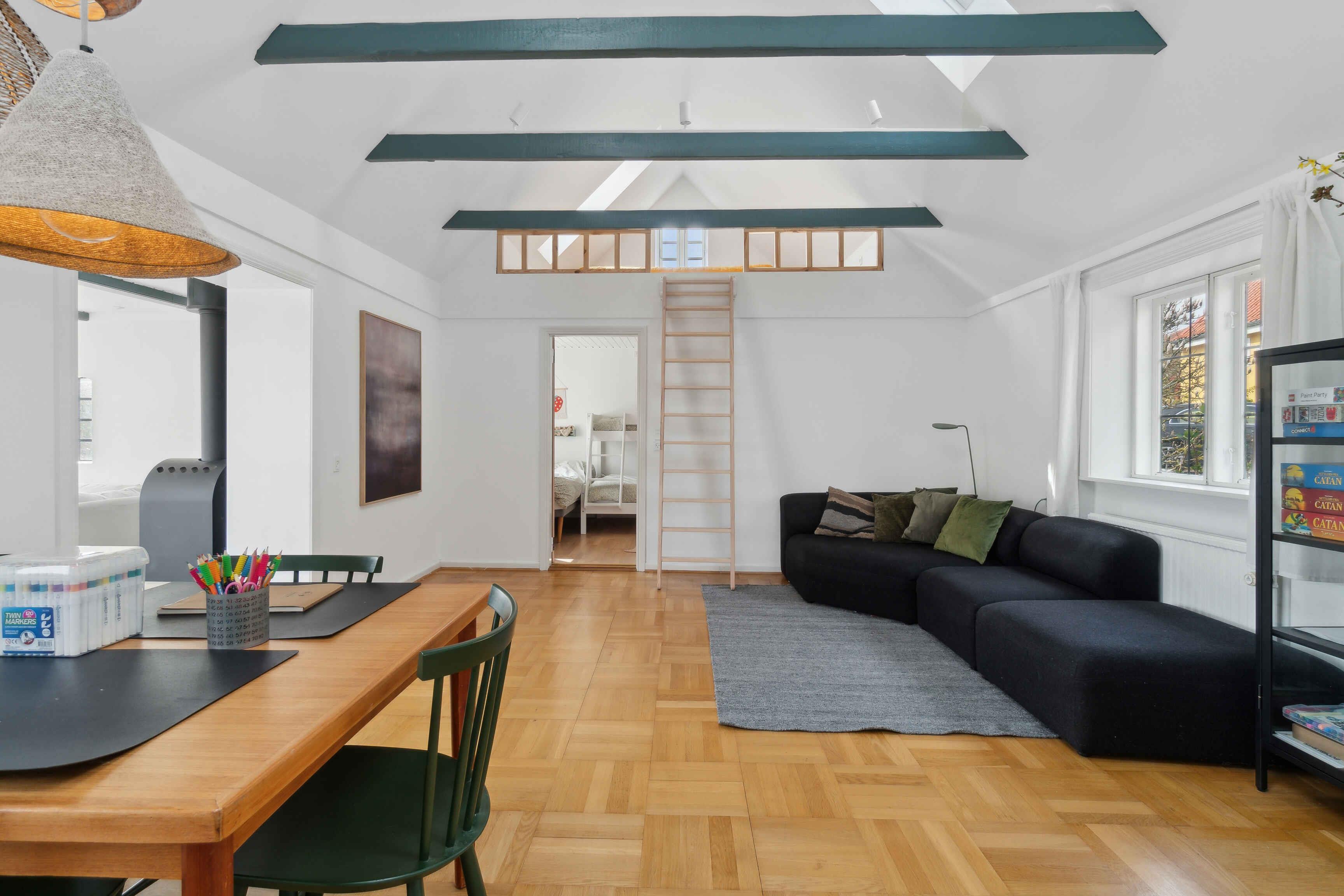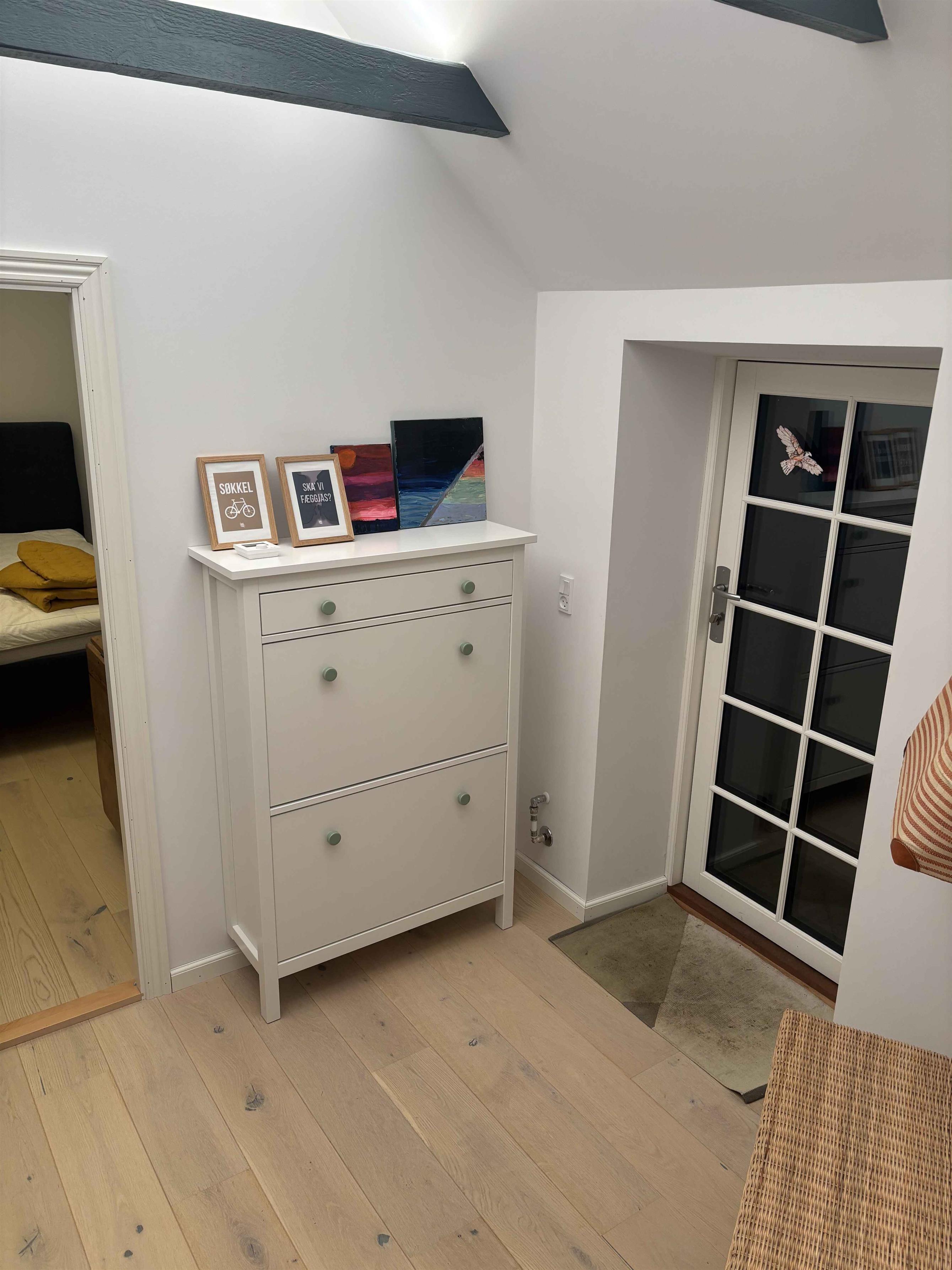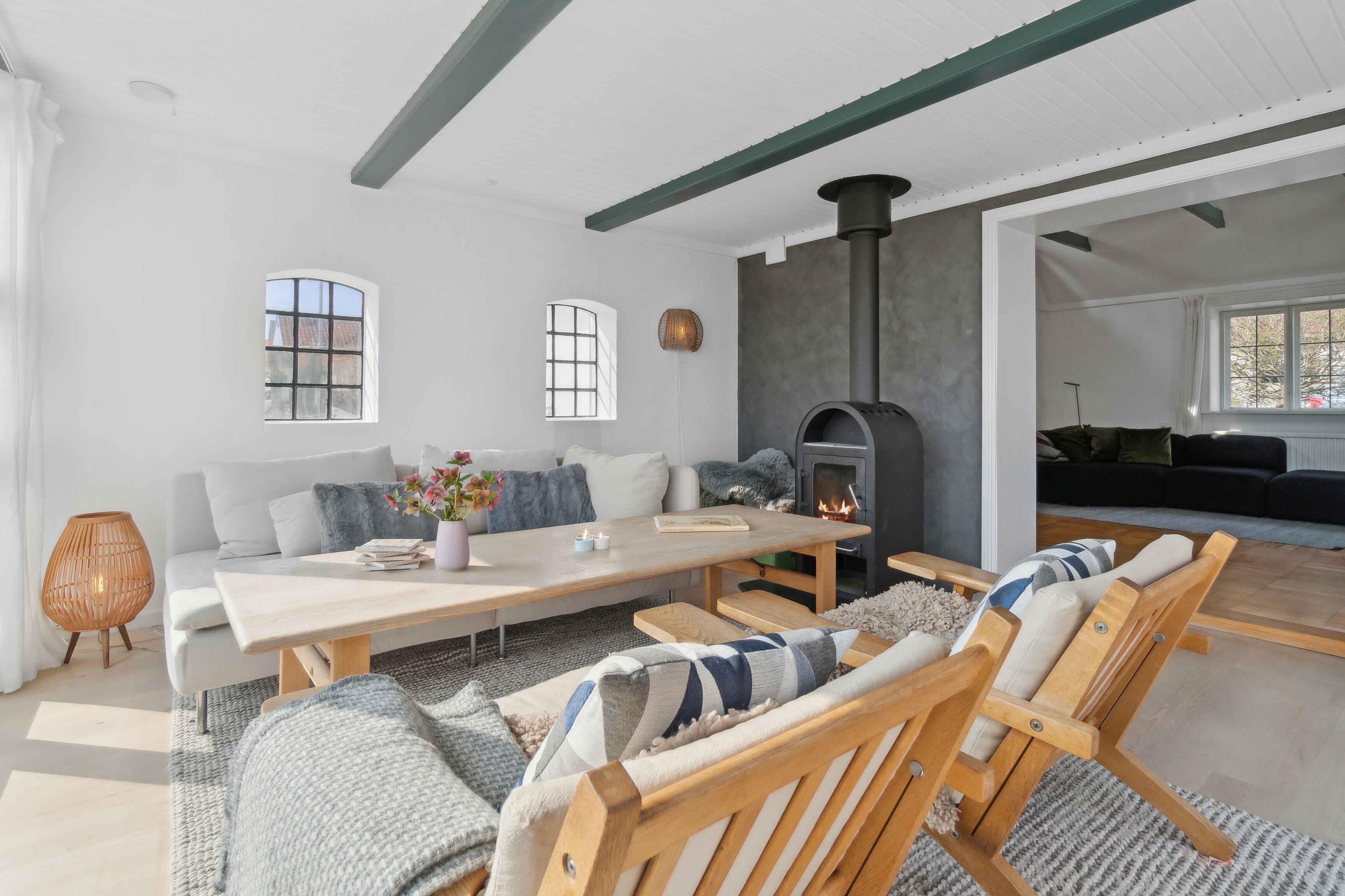 This holiday home of 99 m² offers a unique combination of comfort and breathtaking views. With two bedrooms, it accommodates up to seven people, making it ideal for family vacations. The house is just 50 meters from the coast, where you can enjoy the rugged beauty of the cliffs, take a refreshing swim, or relax to the sound of the waves. The living room with a fireplace offers stunning views of the sea, coastline, and forest. It’s a perfect place to gather and enjoy nature, even on cooler days. The house is equipped with modern amenities, including internet and a wood-burning stove, providing a warm and cozy atmosphere year-round. The kitchen is well-equipped and opens into the dining area, where you can prepare meals and enjoy them while taking in the beautiful natural surroundings. There are two bedrooms, one with a double bed, the other with a bunk bed and a single bed. In addition, there are two mattresses in the loft. The area around the holiday home offers a wealth of experiences. There are excellent hiking trails, cycling routes, and opportunities to explore the local cliffs and coastal areas. The nearby town is known for its maritime charm, cozy cafés, and restaurants. In summer, it comes alive with markets and cultural events. This holiday home is the perfect choice for those seeking a vacation in scenic surroundings, close to water, forests, and exciting activities. Note: Not for commercial rental.