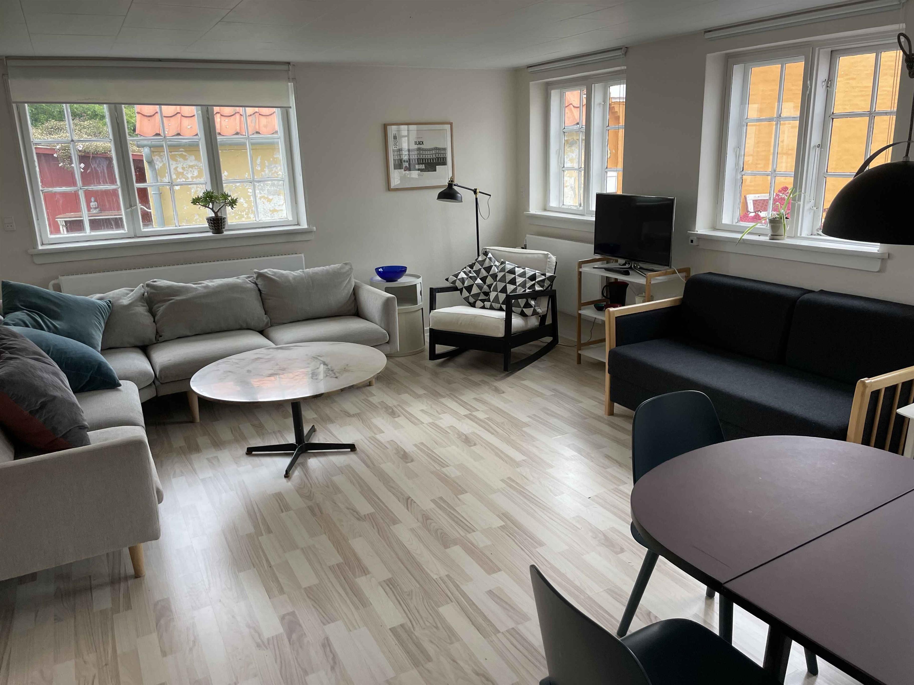The apartment is located in the heart of the coastal village of Årsdale, offering a relaxed vibe and everything within walking distance. It’s set in a peaceful courtyard with a sunny garden and communal seating. Inside, a bright living space combines an open kitchen, dining area, and lounge. There are two separate bedrooms and extra sleeping options, making it ideal for couples or families. The décor is simple and practical. Just 250 meters from the coast lies the beach, fishing harbor, and a scenic waterside stroll. Årsdale offers both tranquility and vibrancy. Walk to the Mikkeller bar or local grocer. On either side, a lovely coastal trail leads to Svaneke and Nexø—two towns with shops, galleries, smokehouses, and a summer atmosphere. Svaneke is a few kilometers away, known for its historic center and charming harbor. In Nexø, you'll find a more local feel and good shopping. Both are easily reached on foot, by bike, or by car. The home is a great fit for those who want to be close to nature, town, and beach—without sacrificing peace and privacy. The courtyard and garden provide space for both socialising and relaxation. A solid base for beach days, walks, and local culinary experiences—and a natural gateway to explore Bornholm’s east coast up close.