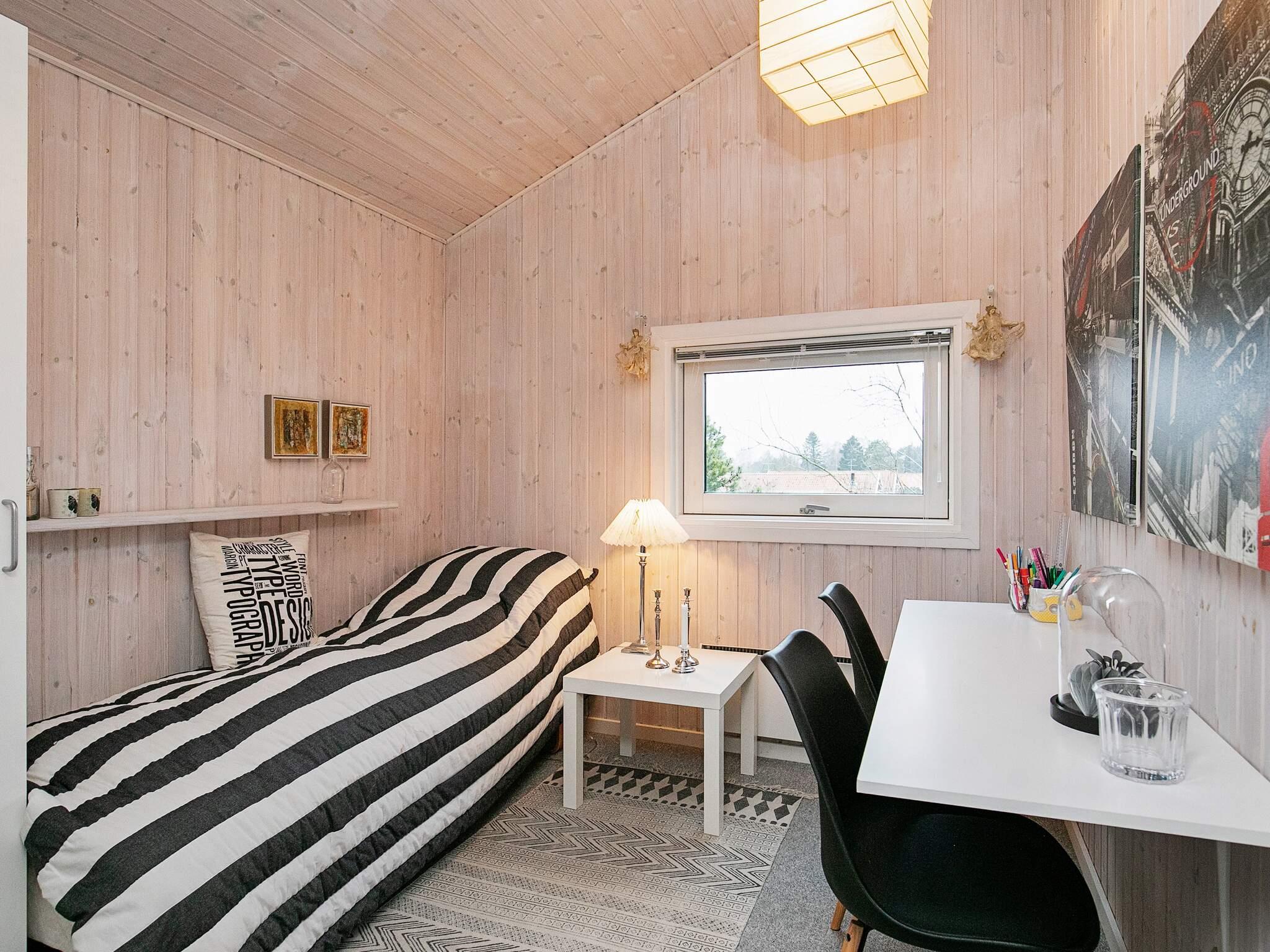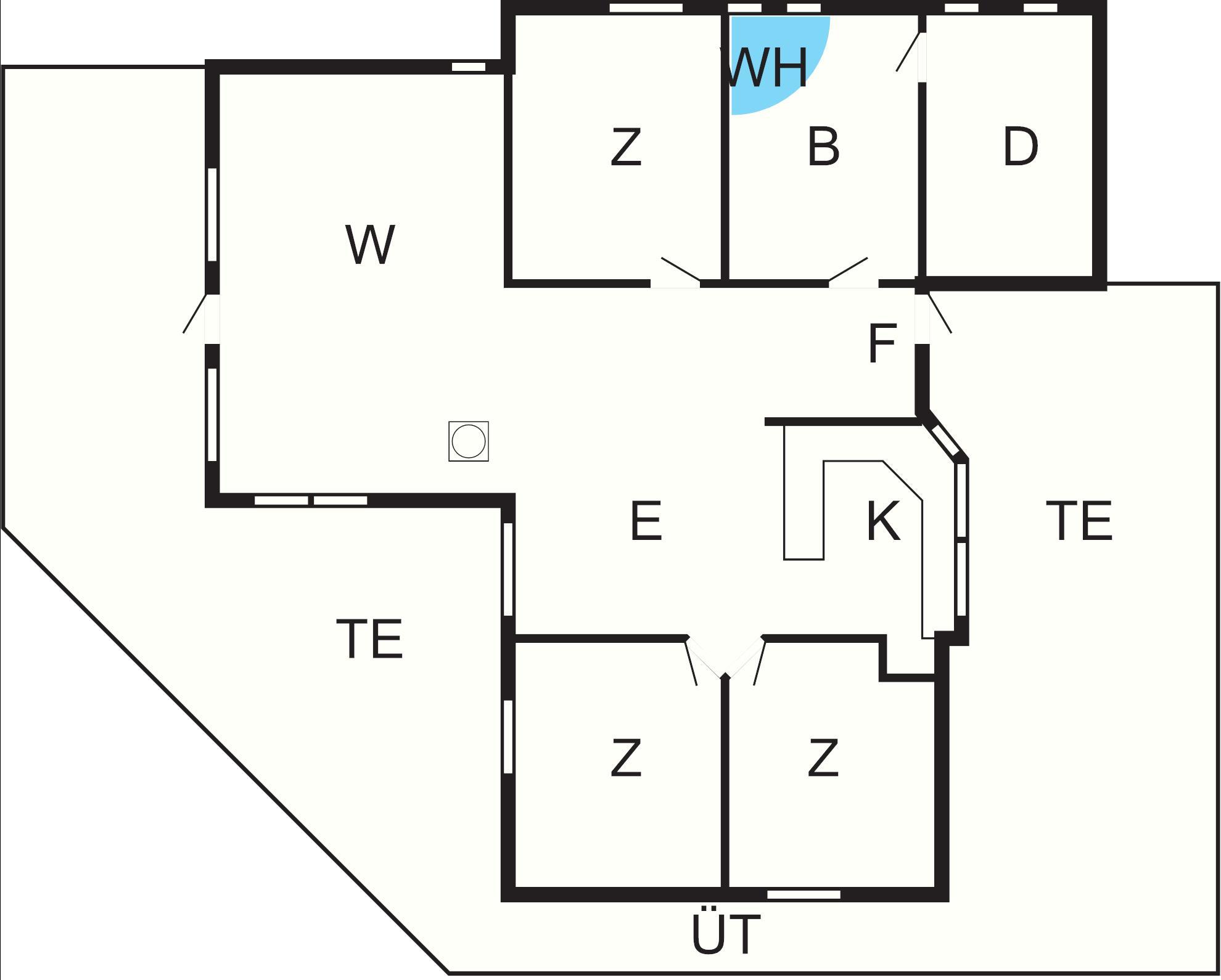 Vom Aufenthaltsbereich hat man direkten Zugang zur teilweise überdachten Terrassenfläche. Der Wohnbereich ist u.a. mit Holzofen ausgestattet. Es stehen nur dänische Sender zur Auswahl im TV. Zur Kücheneinrichtung gehören z.B. Ceranfeld, Mikrowelle und Geschirrspüler. Es gibt drei Schlafzimmer im Haus sowie einen Hems oben unter der Dachschräge. Im Bad Whirlpool für 2 Personen und Dusche.