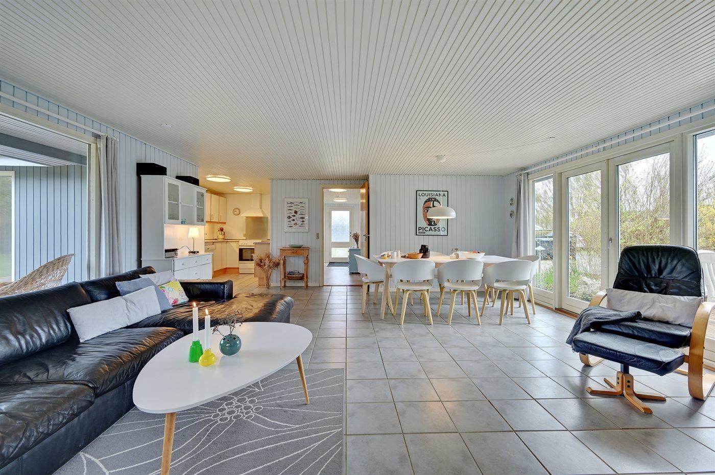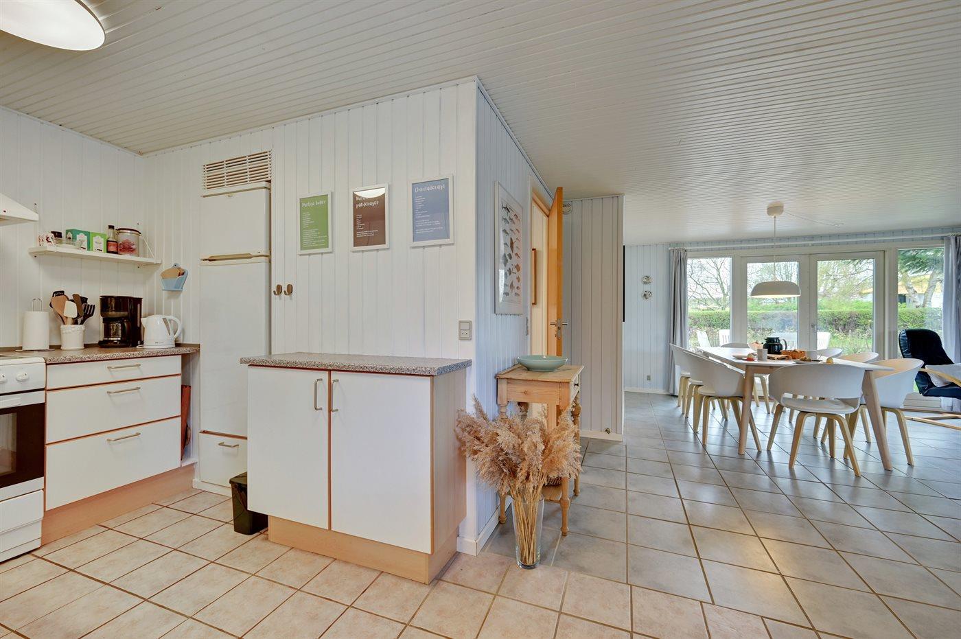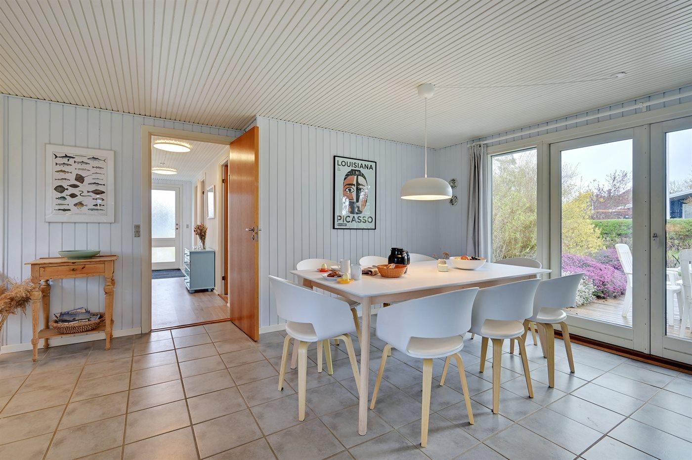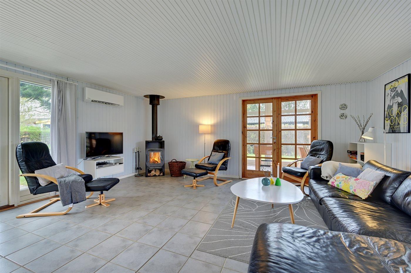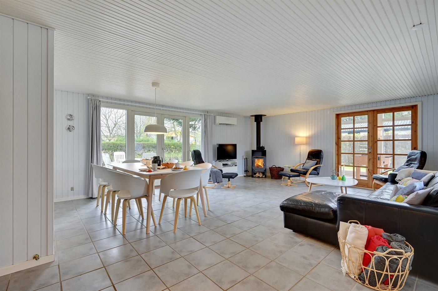 Holiday home suitable for 10 persons as well as 1 child up to 3 years. 2 of the beds is only suitable for older children (4-11 years). The holiday home is 108 m² and is build in 1974. In 1990 the holiday home was renovated. In 2021 the holiday home was partial renovated. No pets allowed. The holiday home is equipped with energy-saving heat pump. The holiday home has washing machine. Tumble dryer. Freezer capacity of 100 litres. Further more there is 1 wood-burning stove. For the youngest ones there is 1 high chair.
