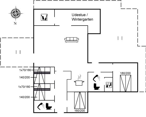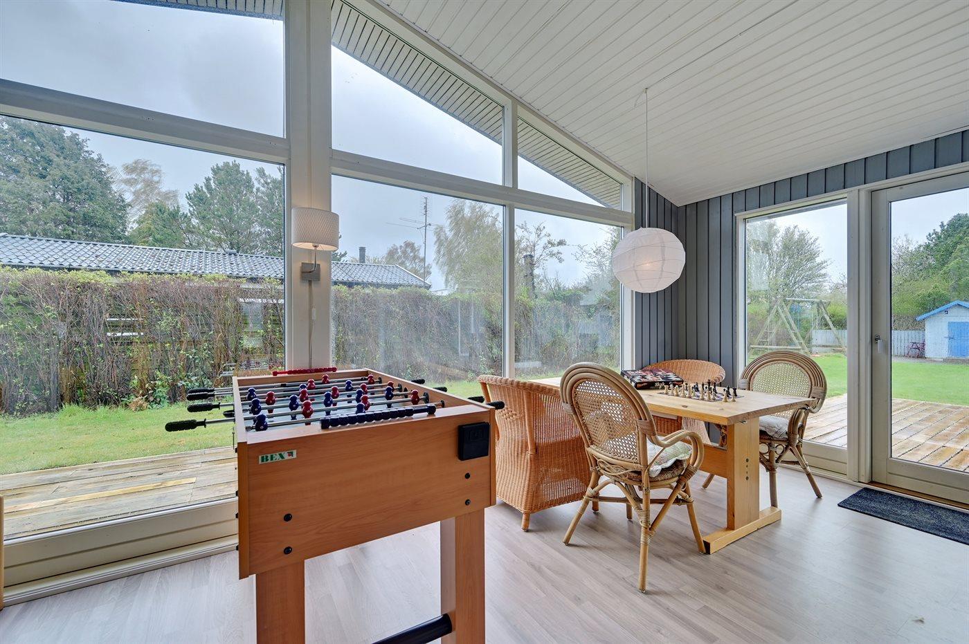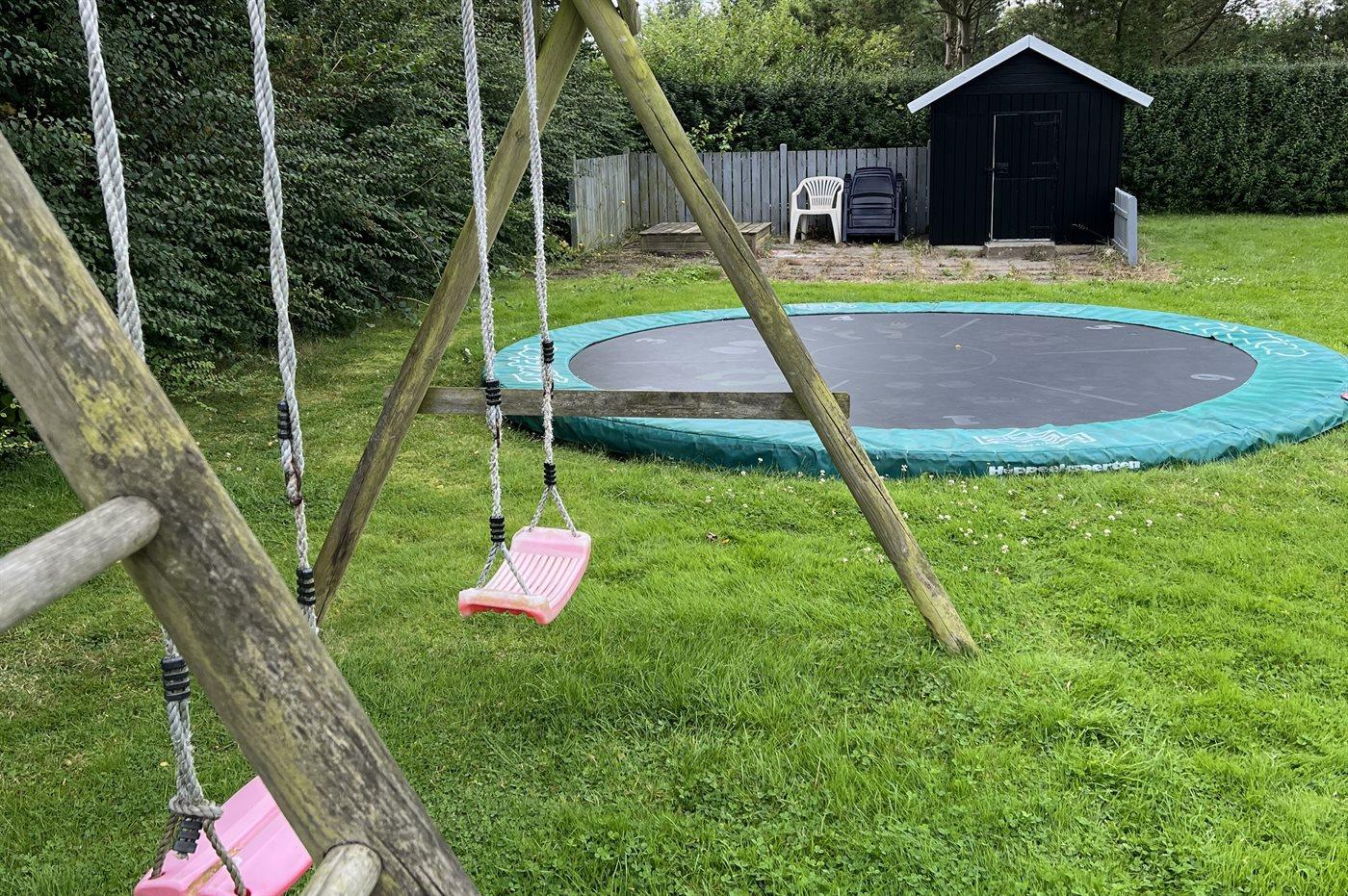 The holiday home is situated on a 973 m² garden site. Situated 500 m from the sea. Nearest shop is 6000 m away. A 80 m² terrace belong to the holiday home. Equally, you have access to a sunroom. You find a tool shed. Swing. Sandbox. Playhouse. Trampoline. Football goal. Barbecue at your disposal. Parking place by the holiday home.