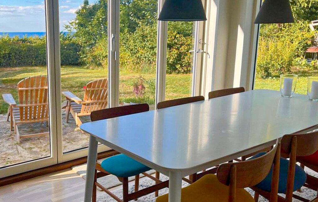 Dieses Haus heißt Sie mit einer freundlichen Wohnatmosphäre willkommen. Große Fensterfronten lassen viel Tageslicht herein und öffnen den Blick ins Grüne bis hin zum Meer. Machen Sie es sich am Kaminofen bequem, spielen Sie gemütlich Karten oder genießen Sie verträumte Stunden bei Kaffee und Kuchen. Verbringen Sie einen gemeinsamen Kochabend in der Küche und lassen Sie den Tag bei einem guten Essen ausklingen.