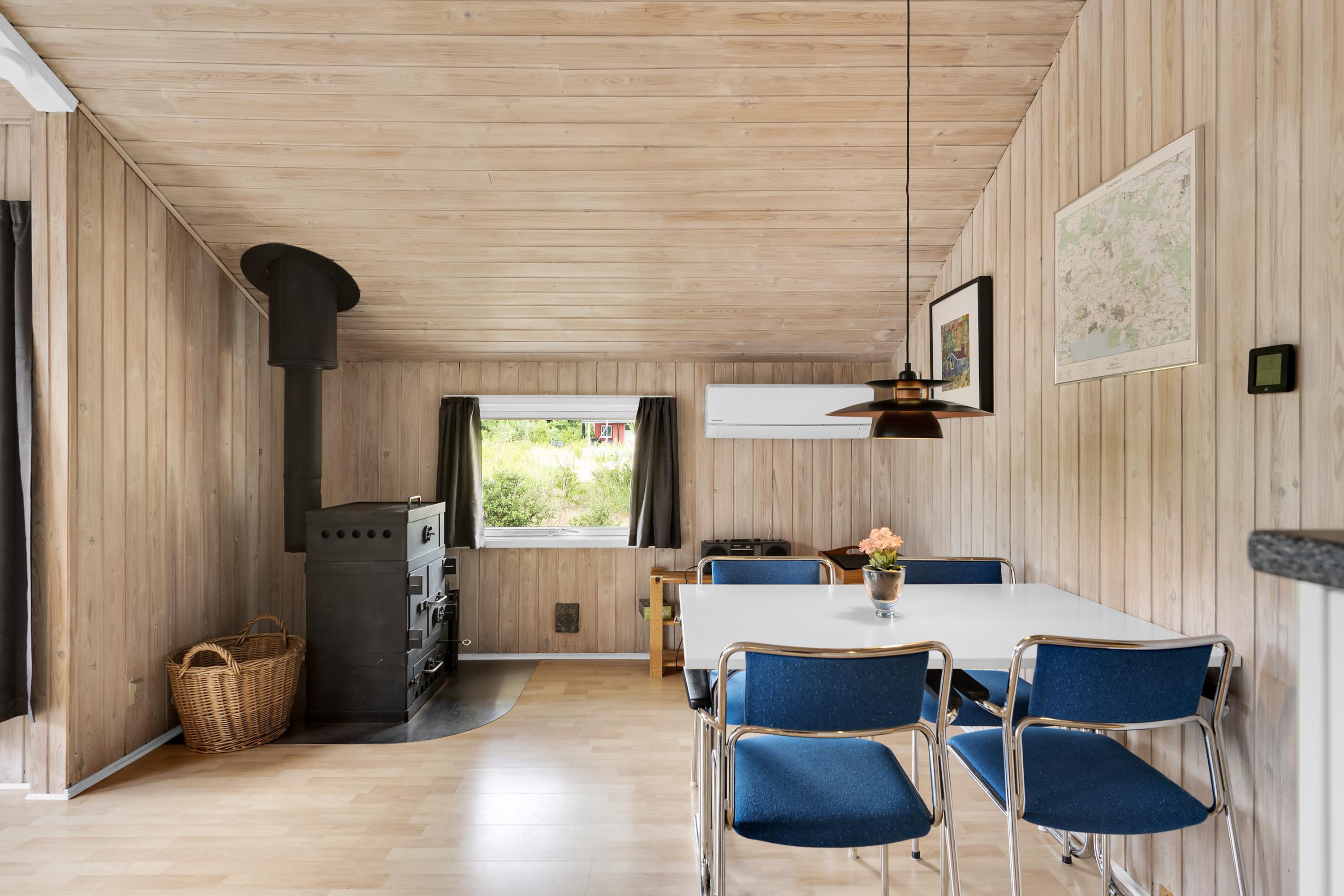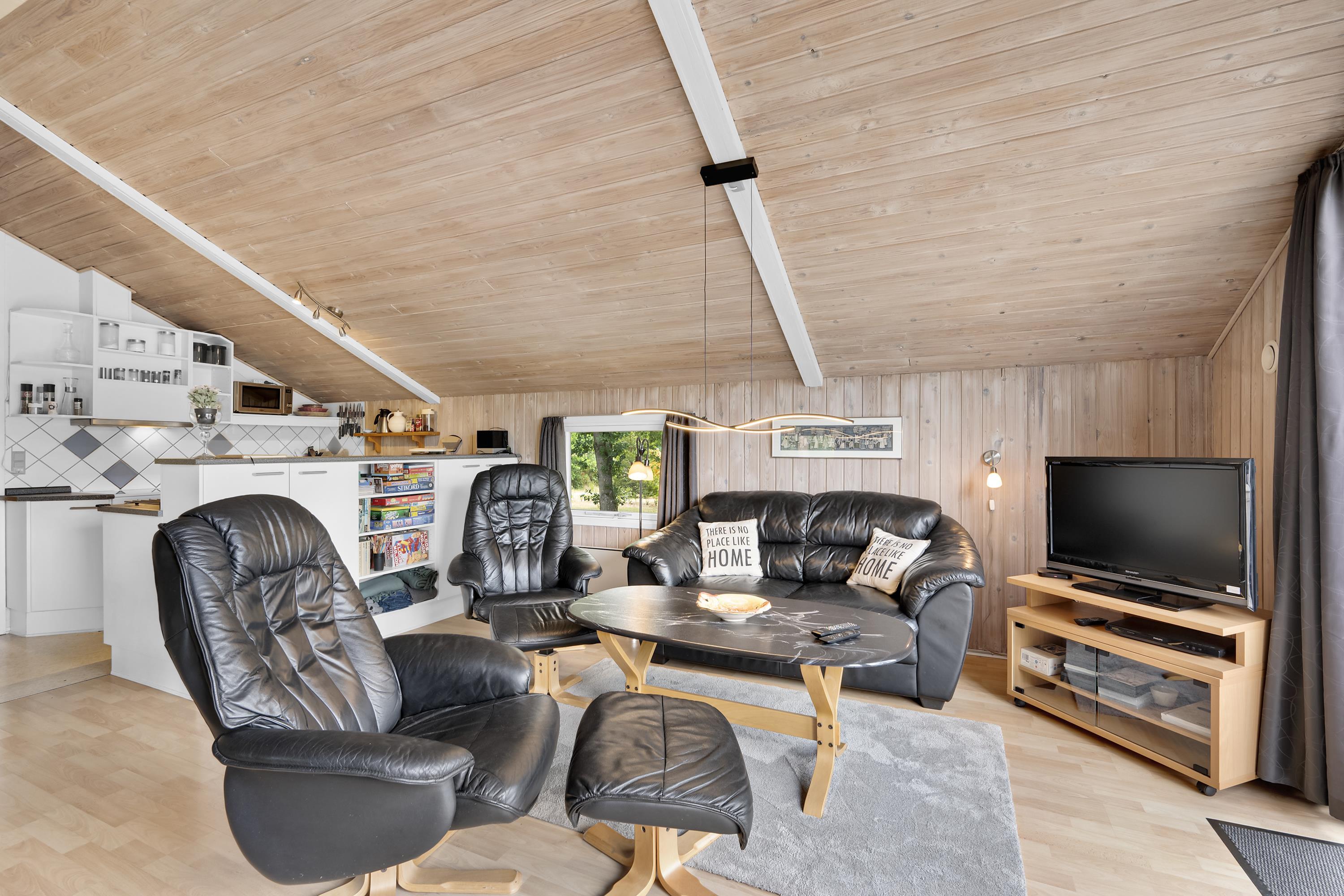 In the beautiful nature of central Djursland, you will find this smaller, but cozy holiday home. Inside, there is a lovely living room with a fireplace and heat pump, and connected to the living room is a functional kitchen. Two good bedrooms with double beds. A nice bathroom with a shower. The house has internet access and a TV with channels from Germany, Norway, and Sweden.