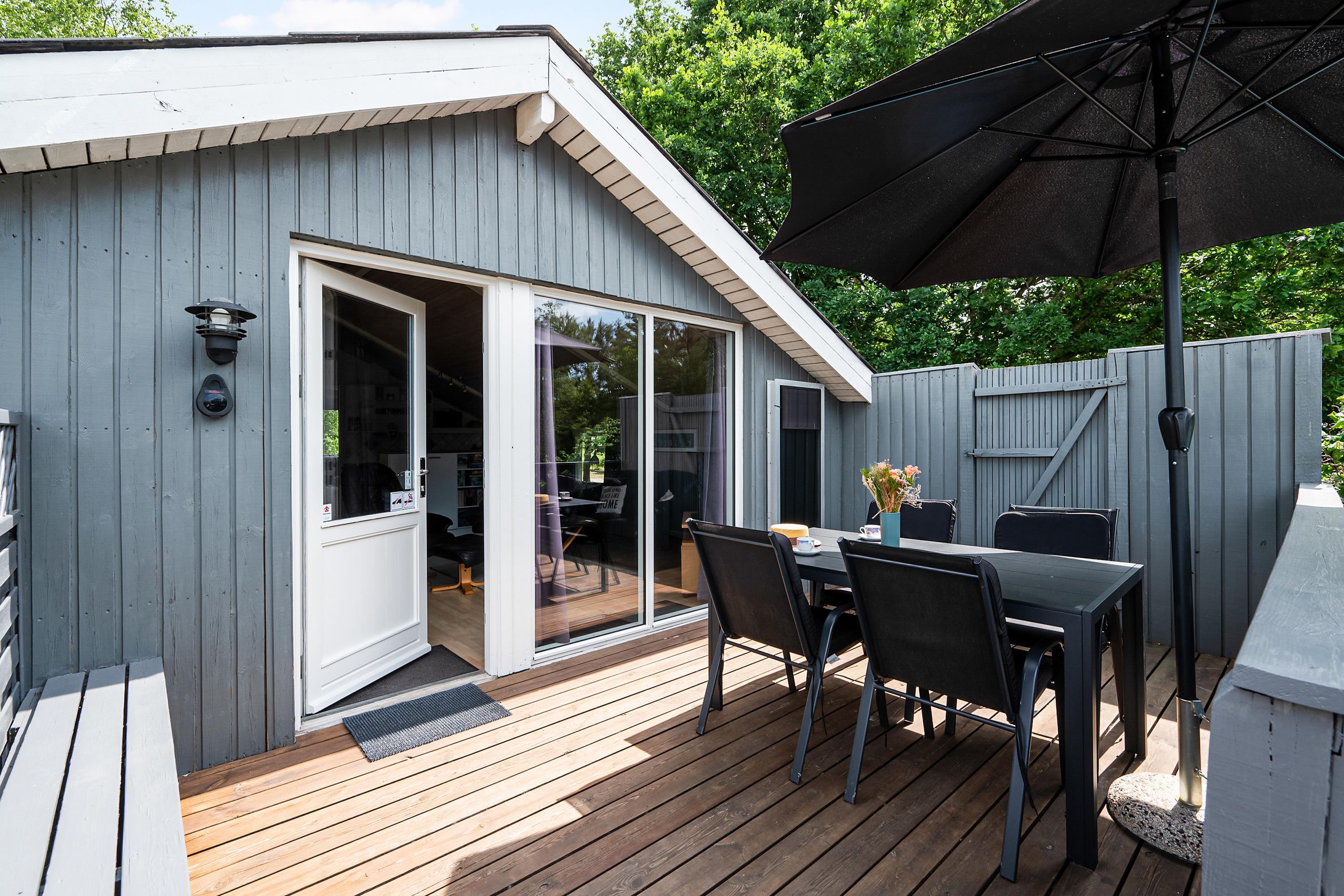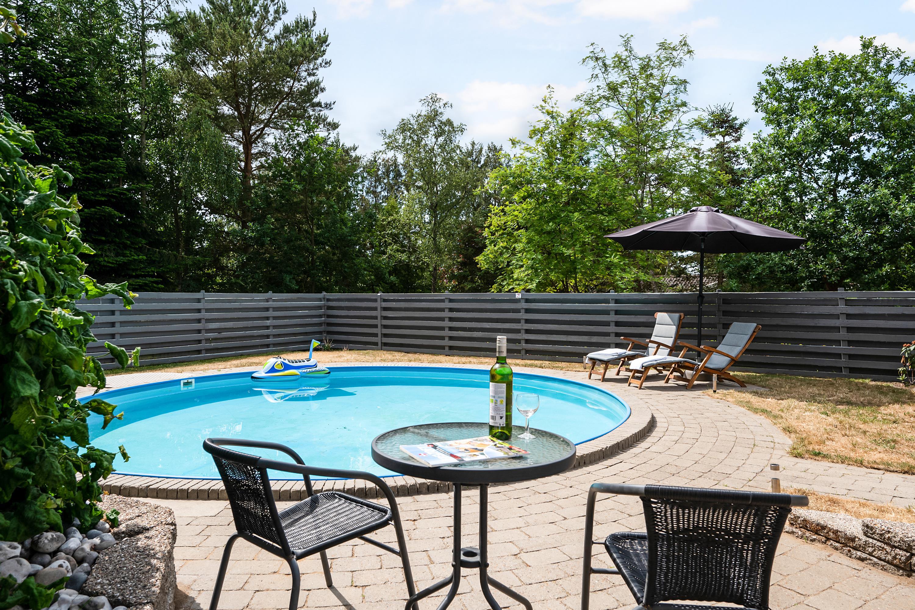 Outside, there is a lovely terrace with garden furniture, and in the garden, you will find a delightful outdoor swimming pool, which can be used from June to September, as it is heated by the sun's rays. There is a great area by the pool with sun loungers and space for outdoor activities. There is also an electric car charger, and the house is located on a well-maintained plot with space for play and outdoor activities. The house is about 35 meters from house 45010, if you are a group who would like to vacation together.