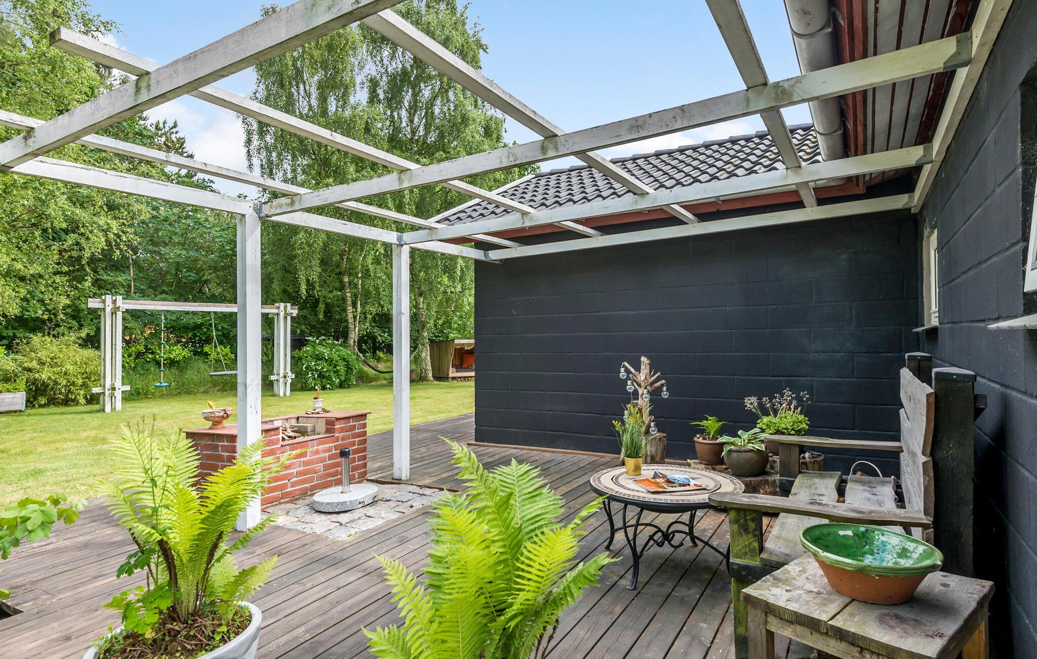 Das Herzstück des Hauses ist die weitläufige, teilweise überdachte Terrasse, perfekt für entspannte Stunden an der frischen Luft. Der Garten ist ein Paradies für Kinder mit Spielgeräten und einem Shelter, wo Sie aufregende Nächte im Freien verbringen können.
