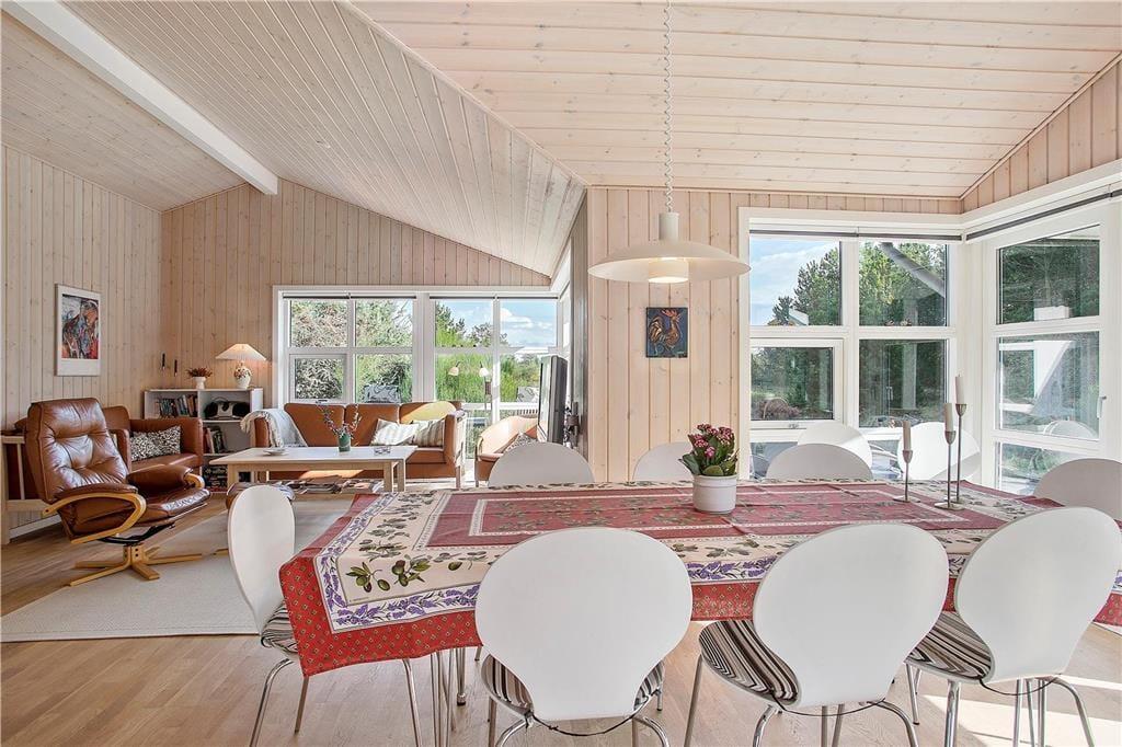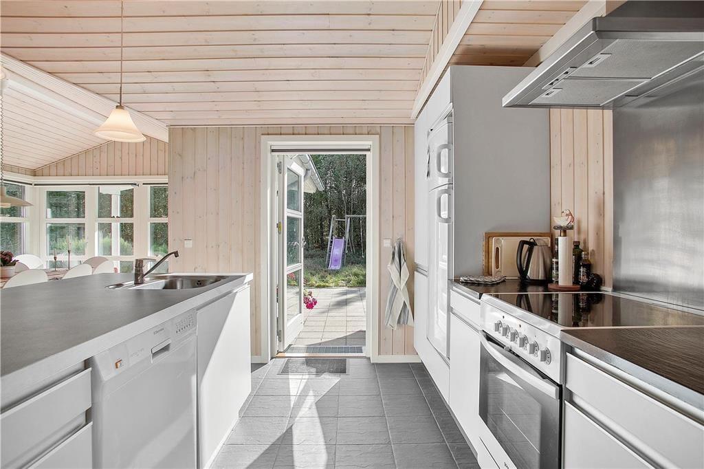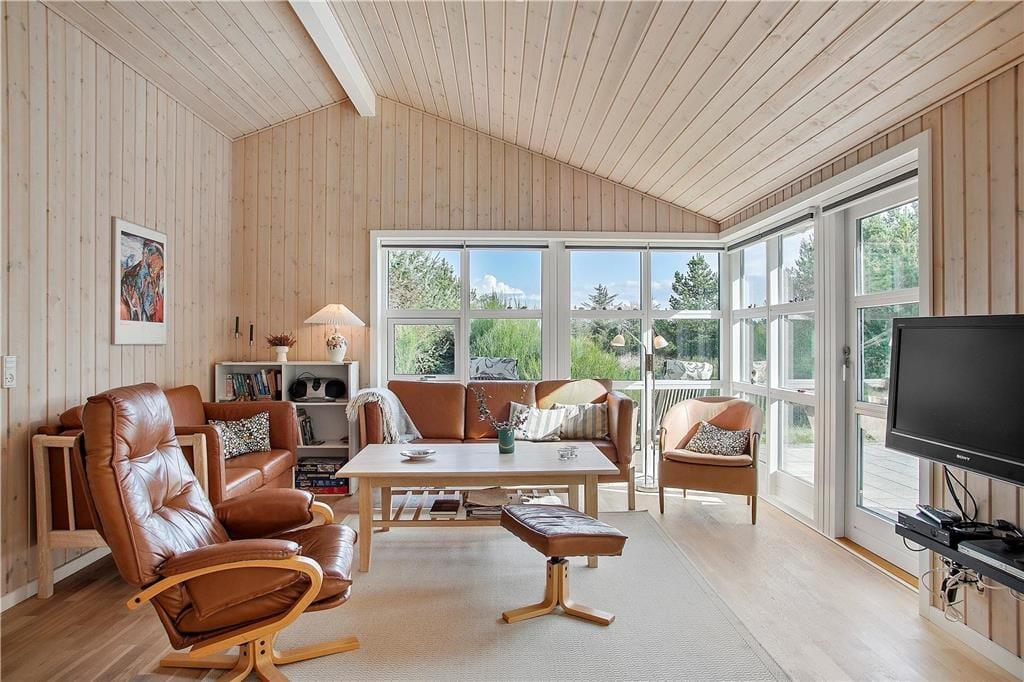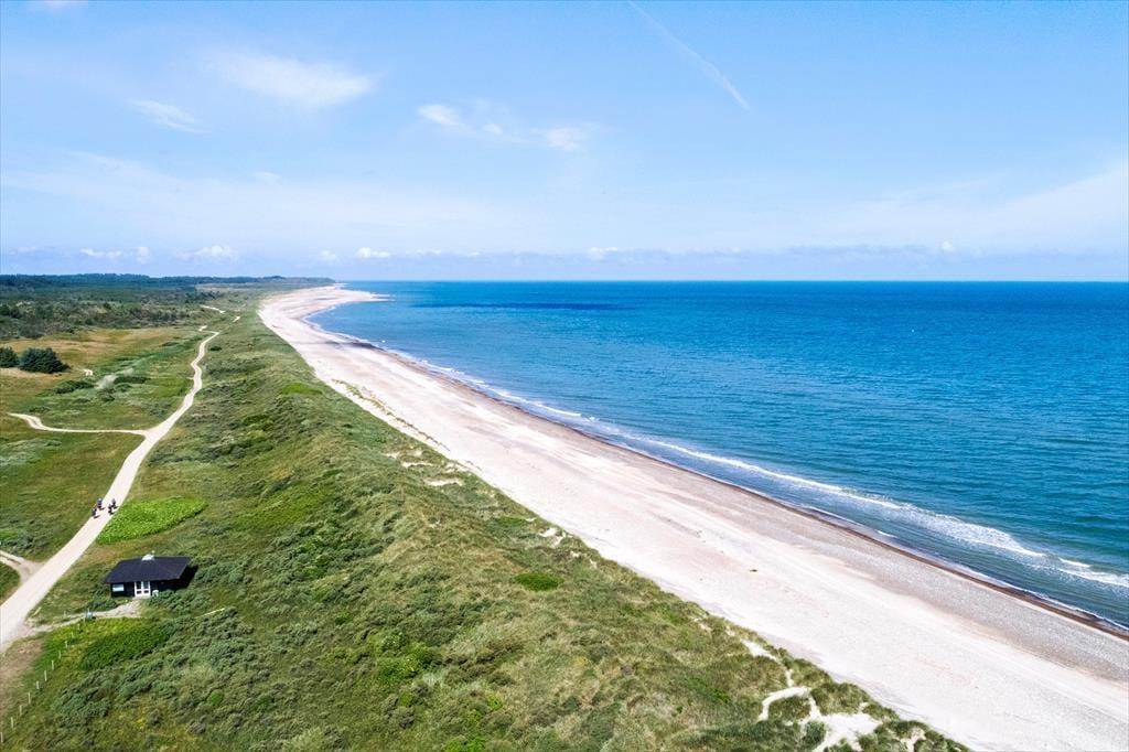 Das durchweg herrliche Mietobjekt befindet sich am Ende eines kleinen Stichweges in einem geschlossenen Ferienhausgebiet. Wunderschöne Naturerlebnisse verspricht Ihnen das nahe gelegene Waldgebiet Vester Thorup Klitplantage, in dem Sie mehrere markierte Wanderwege erwarten. Alternativ können Sie auch dem Nordsøstien folgen, der Sie unter anderem an schönen Aussichtspunkten wie dem Vogelfelsen Bulbjerg und dem Naturgebiet Svinklovene vorbeiführt. Zu den größten Attraktionen der Gegend zählt zweifelsohne die imposante, faszinierende Nordsee, die Sie bereits nach 800 Metern erreichen. Einen Strandspaziergang können Sie beispielsweise sehr schön mit einem Zwischenstopp an Thorupstrands Kutteranlandeplatz, verbinden, an dem bis in heutige Zeit der traditionellen Küstenfischerei nachgegangen wird. Von April bis Oktober freut sich hier auch das örtliche Fischgeschäft auf Ihren Besuch und lockt mit frisch gebratenem Fischfilet, Krebsscheren und anderen frisch gefangenen Leckereien aus dem Meer.