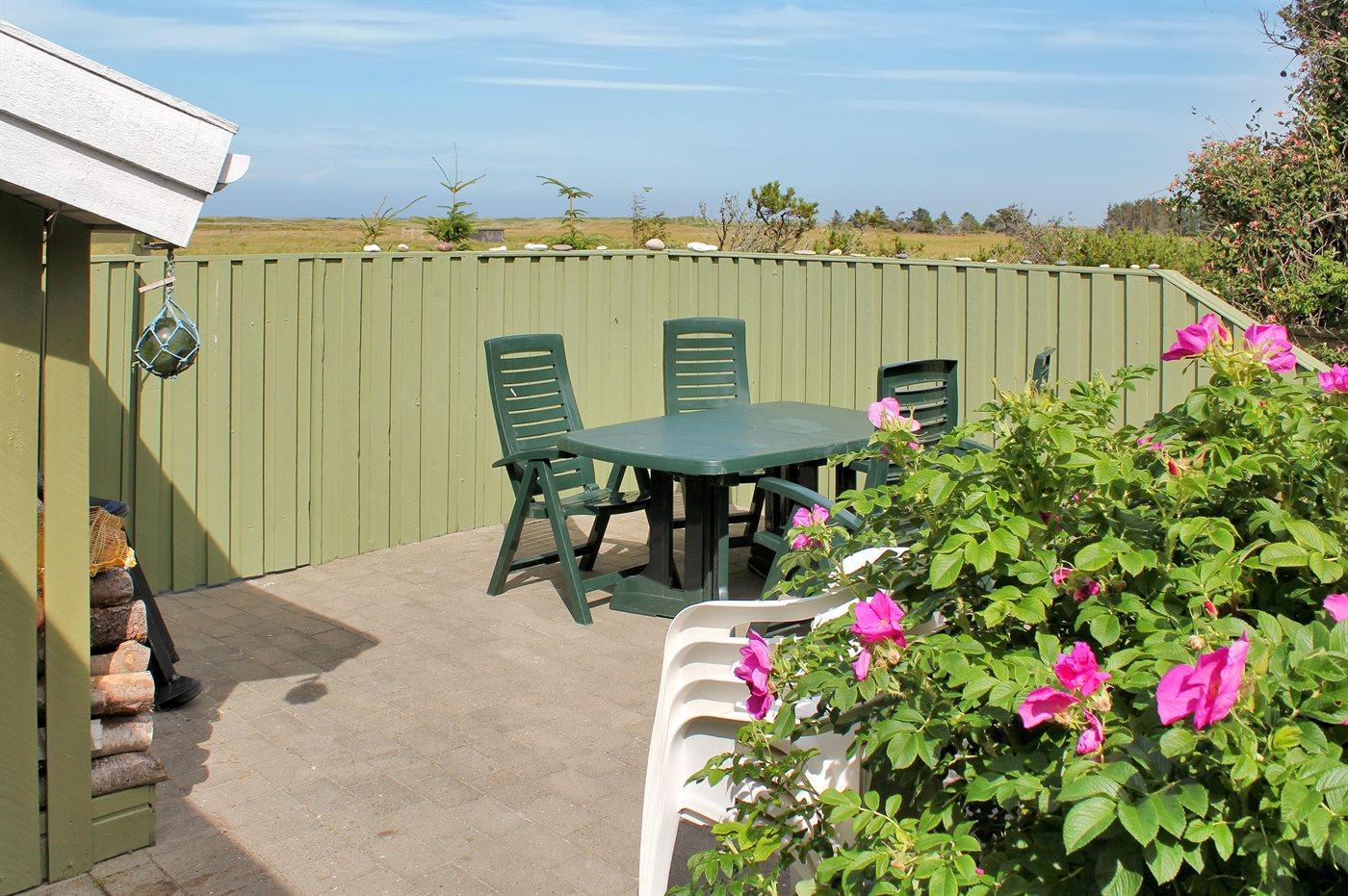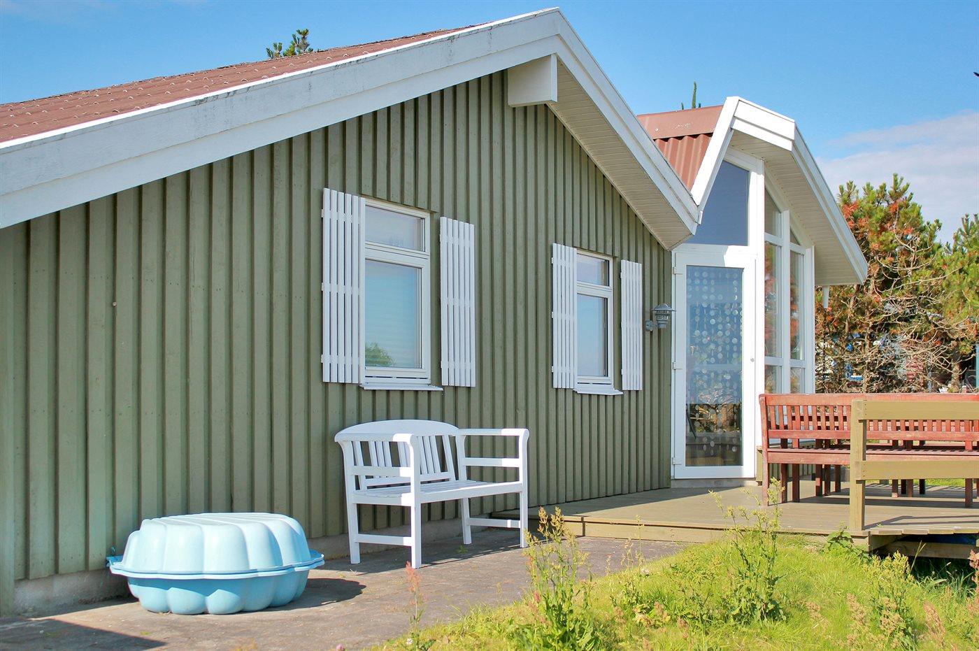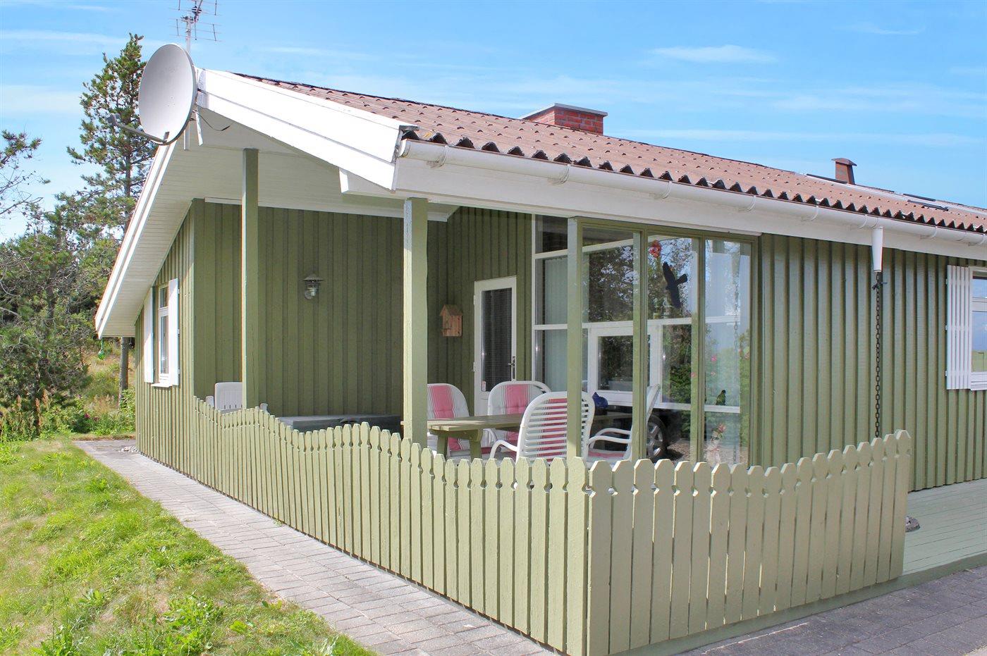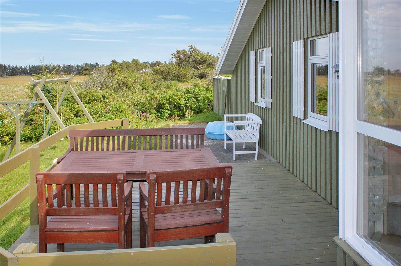 The holiday home is situated on a 1250 m² natural site. Situated 300 m from the sea. Nearest shop is 2500 m away. A 35 m² terrace belong to the holiday home. Furthermore the house has a 10 m² covered terrace. Equally, you have access to a sunroom. You find a tool shed. Swing. Sandbox. Parking place by the holiday home.