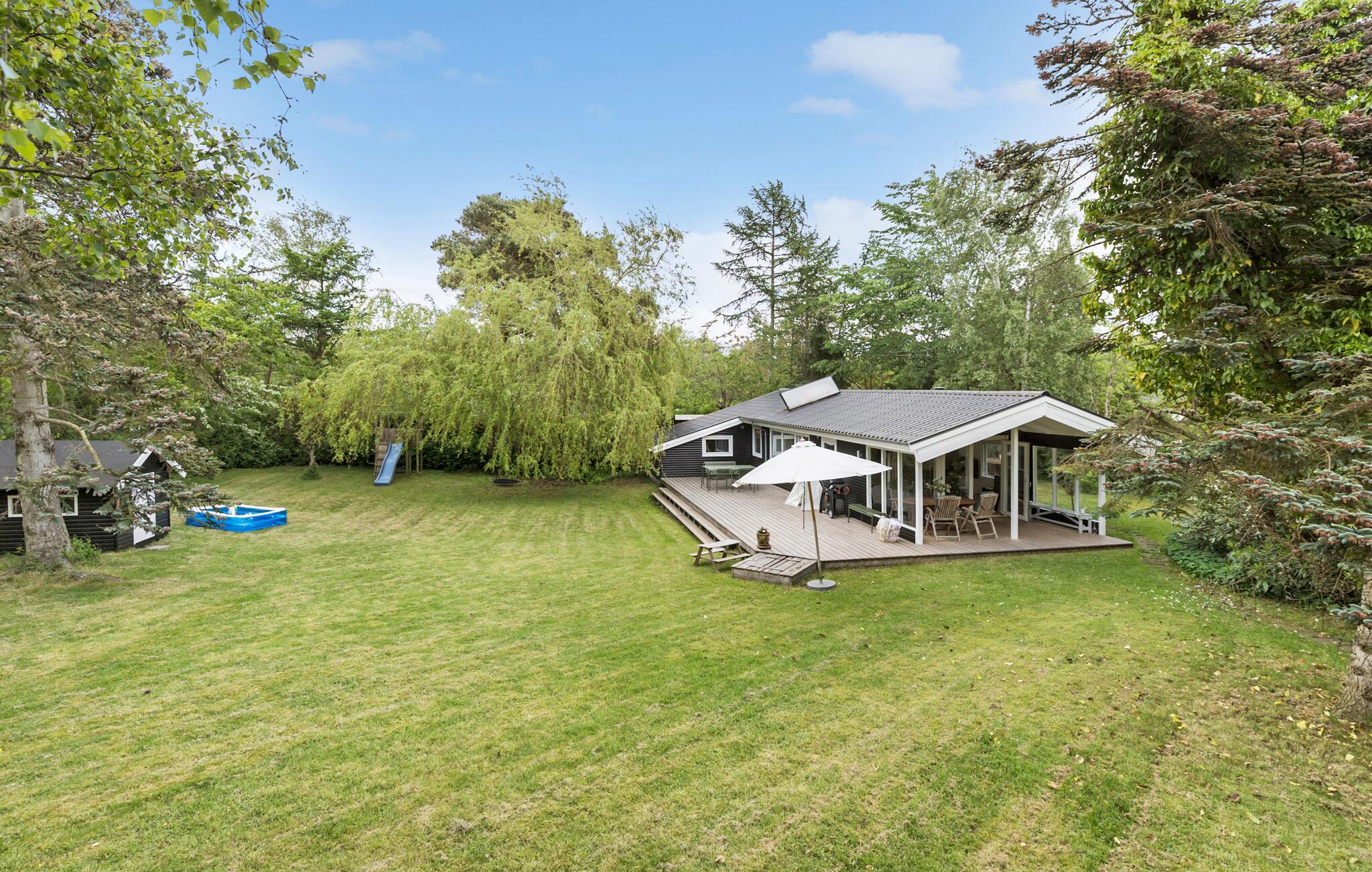 Willkommen in Ihrem gemütlichen Ferienhaus auf einem von schönen Bäumen umkränzten Grundstück, gelegen in einem der schönsten Urlaubsziele Dänemarks. Ihr Haus bietet Platz für die ganze Familie und verspricht einen Aufenthalt mit ganz viel Ruhe in einer attraktiven Lage. Beginnen Sie Ihren Tag mit einem Familienfrühstück am Esstisch neben der praktisch eingerichteten Küche. Genießen Sie anschließend die freie Urlaubszeit, indem Sie auf dem gemütlichen Sofa die Beine hochlegen, einen guten Film schauen oder in aller Ruhe ein spannendes Buch lesen.