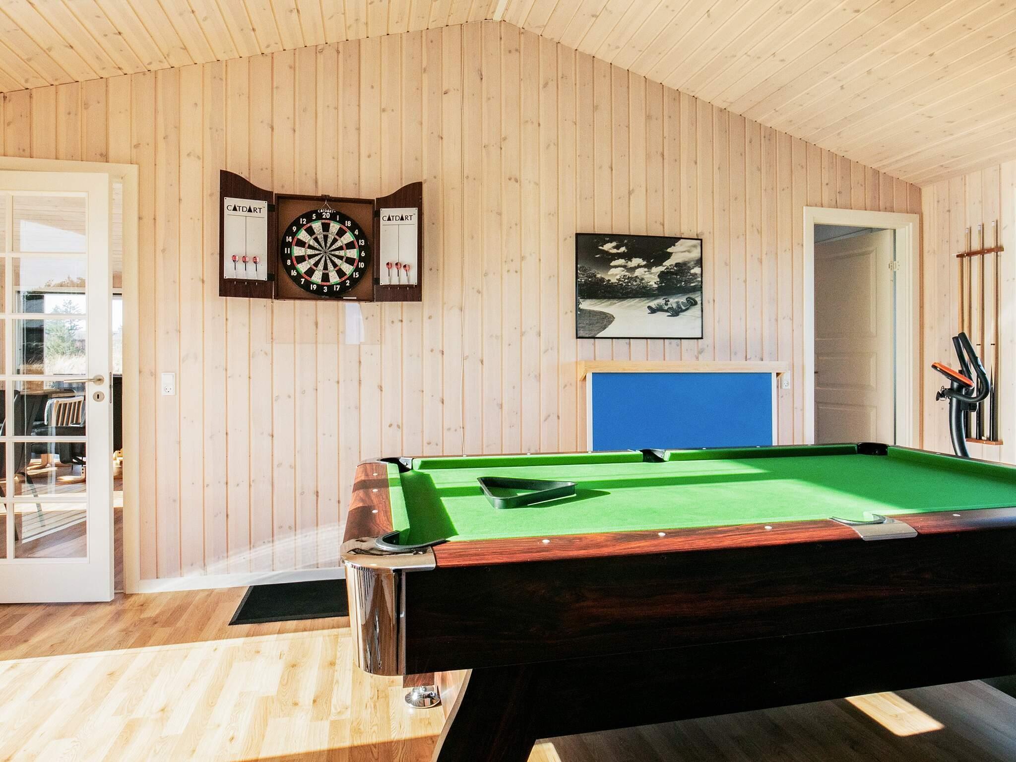Das Haus ist geschmackvoll eingerichtet sowie umfassend ausgestattet. Im Aktivitätsraum stehen für den Freizeitspaß sowohl ein Spieltisch für Billard als auch Darts bereit, zudem gibt es eine kleine Bartheke mit Weinkühlschrank. Deckt man den Spieltisch (Maße: 195x110 cm) mit der großen Platte ab, kann zudem Tischtennis gespielt werden.