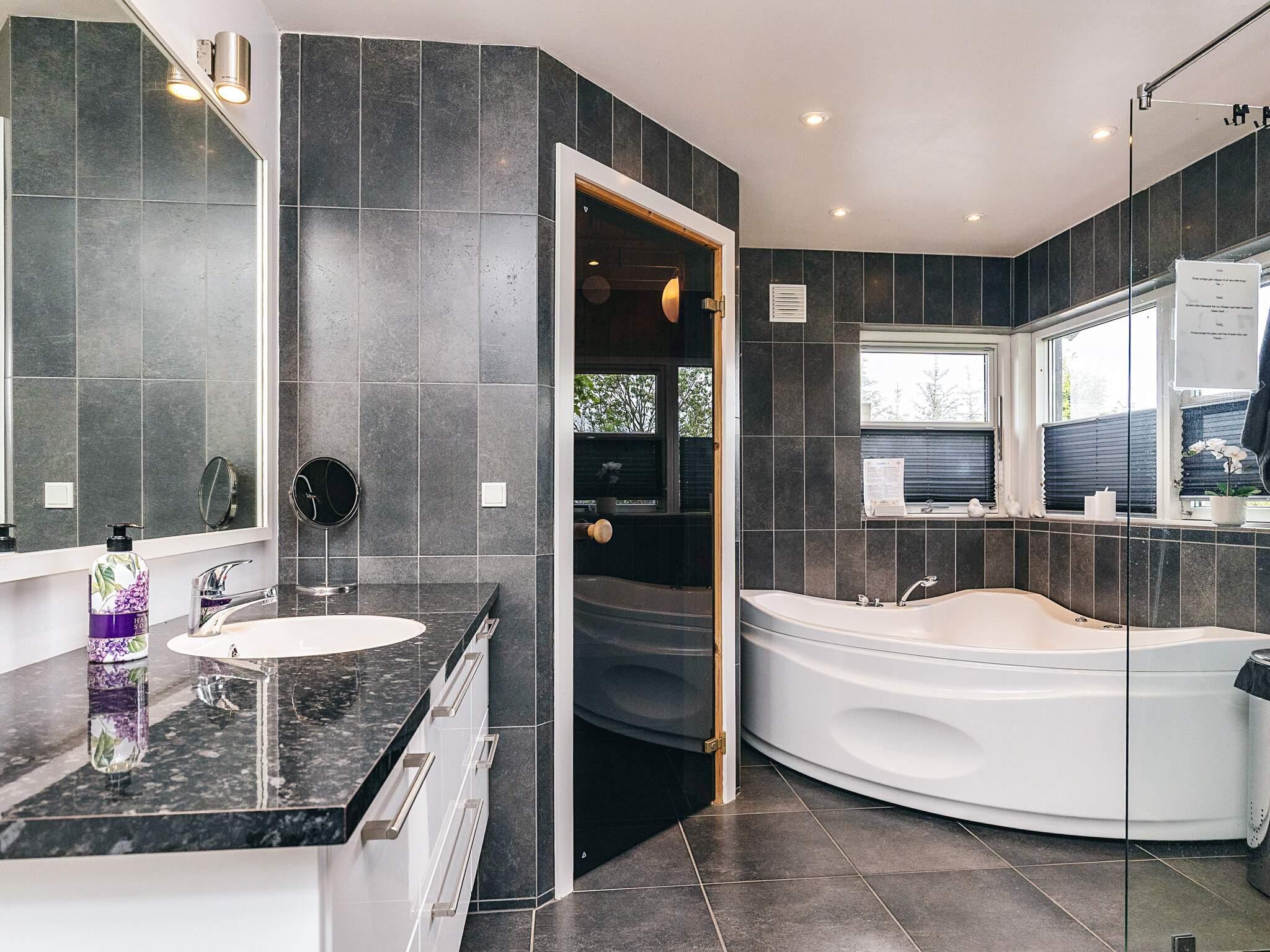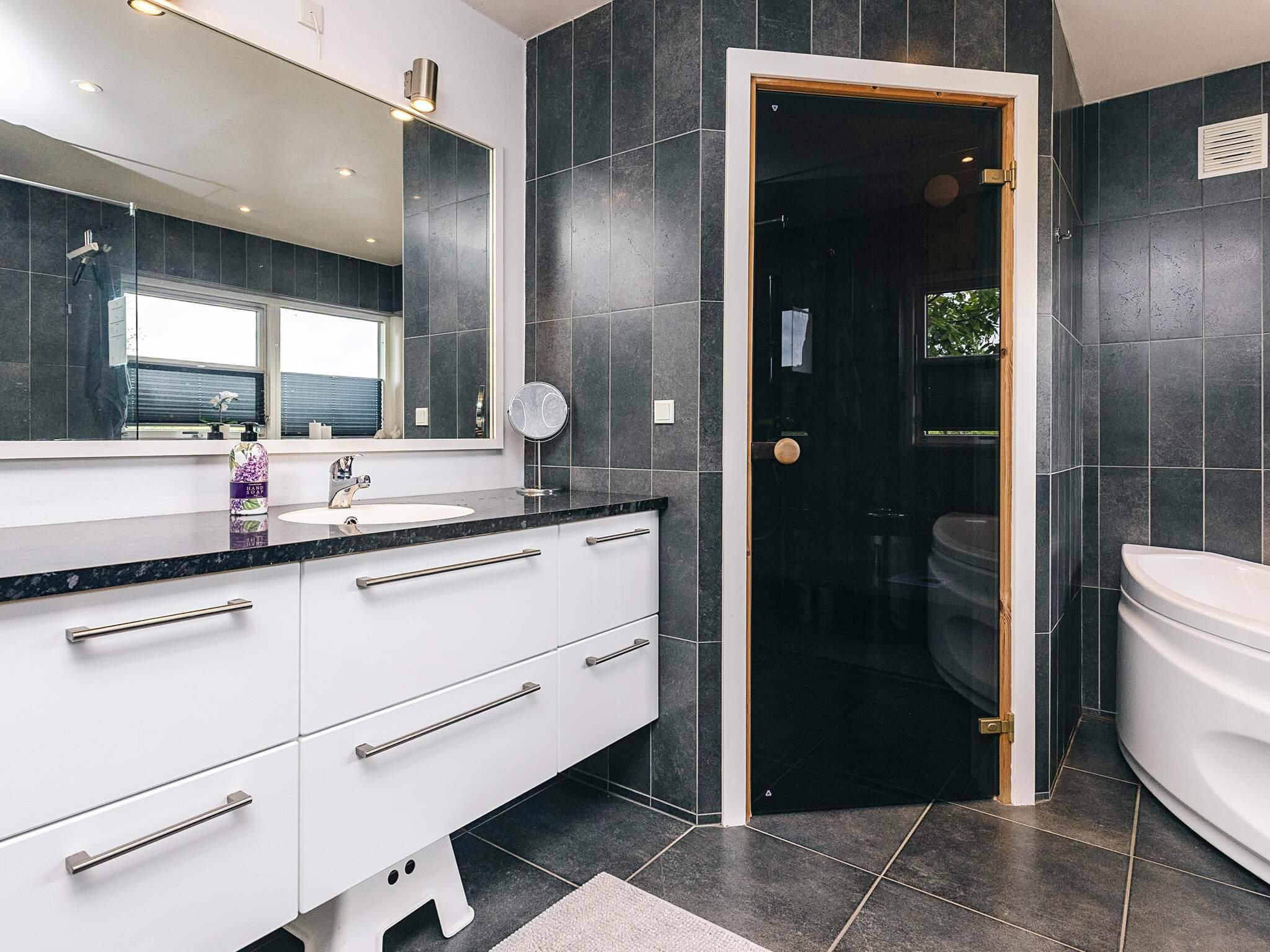 Ferienhaus mit persönlicher, hochwertiger Einrichtung, guter Ausstattung und sonniger Glasveranda. Es gibt zwei Badezimmer, von denen eines über einen Whirlpool und eine Sauna verfügt. Im Aktivitätsraum können Sie Tischtennis, Billard, Nintendo Wii, Shuffleboard und PS3 spielen sowie die Fitnessgeräte nutzen. Das Wohnzimmer ist offen mit der Küche verbunden, in der es u.a. einen amerikanischen Kühlschrank mit Eiswürfelbereiter gibt. Vom großen, hellen Wohnzimmer geht es hinaus auf die Terrasse und zum Rasengrundstück. Eines der Schlafzimmer verfügt über ein höhenverstellbares Bett, alle Schlafzimmer haben einen eigenen Fernseher. Außenküche mit Kühlschrank, Wasseranschluss und Gasflamme vorhanden. Für Kinder stehen Schaukel, Sandkasten und Spielhaus bereit. Außerdem gibt es einen Shelter, eine Feuerstelle und einen gemauerten Grill sowie einen Gas-Wok auf dem Grundstück.