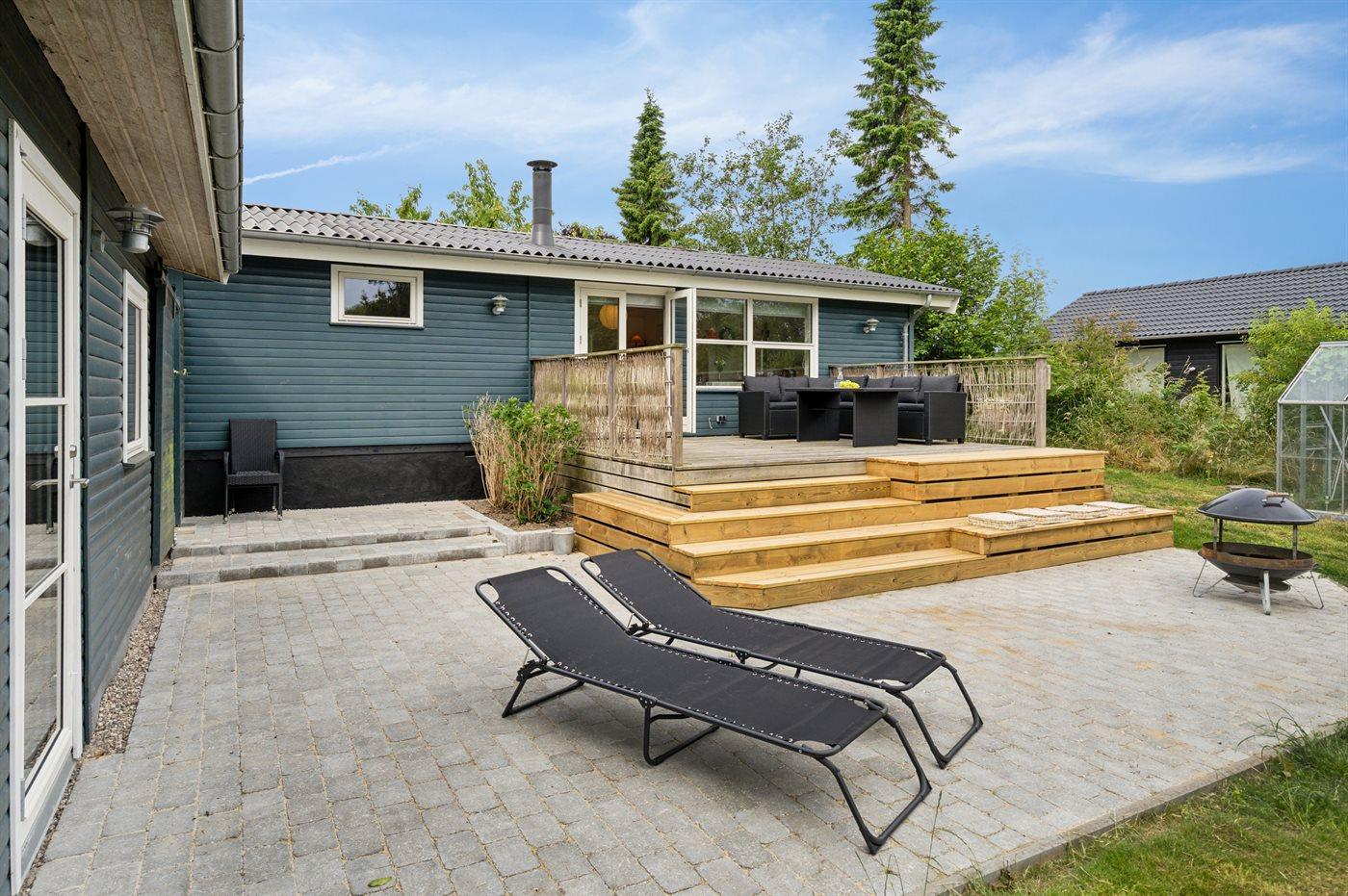 The holiday home is situated on a 1204 m² garden site. Situated 225 m from inlet. Nearest shop is 3900 m away. You will find a golf course in a distance of 18900 m. A 50 m² terrace belong to the holiday home. It is possible to prepare the food in the outdoor kitchen. Barbecue at your disposal. Carport is at your disposal. Parking place by the holiday home.