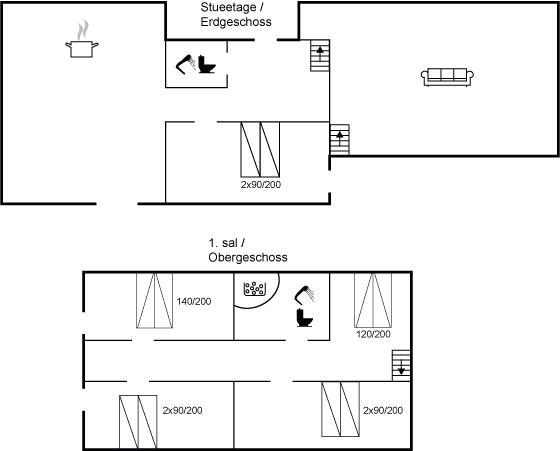 All together there are 4 bedrooms. The beds are divided on: 6 sleeping places in double beds. 4 sleeping places in single beds. 2 of these sleeping accommmodations are located on the platform of the house.