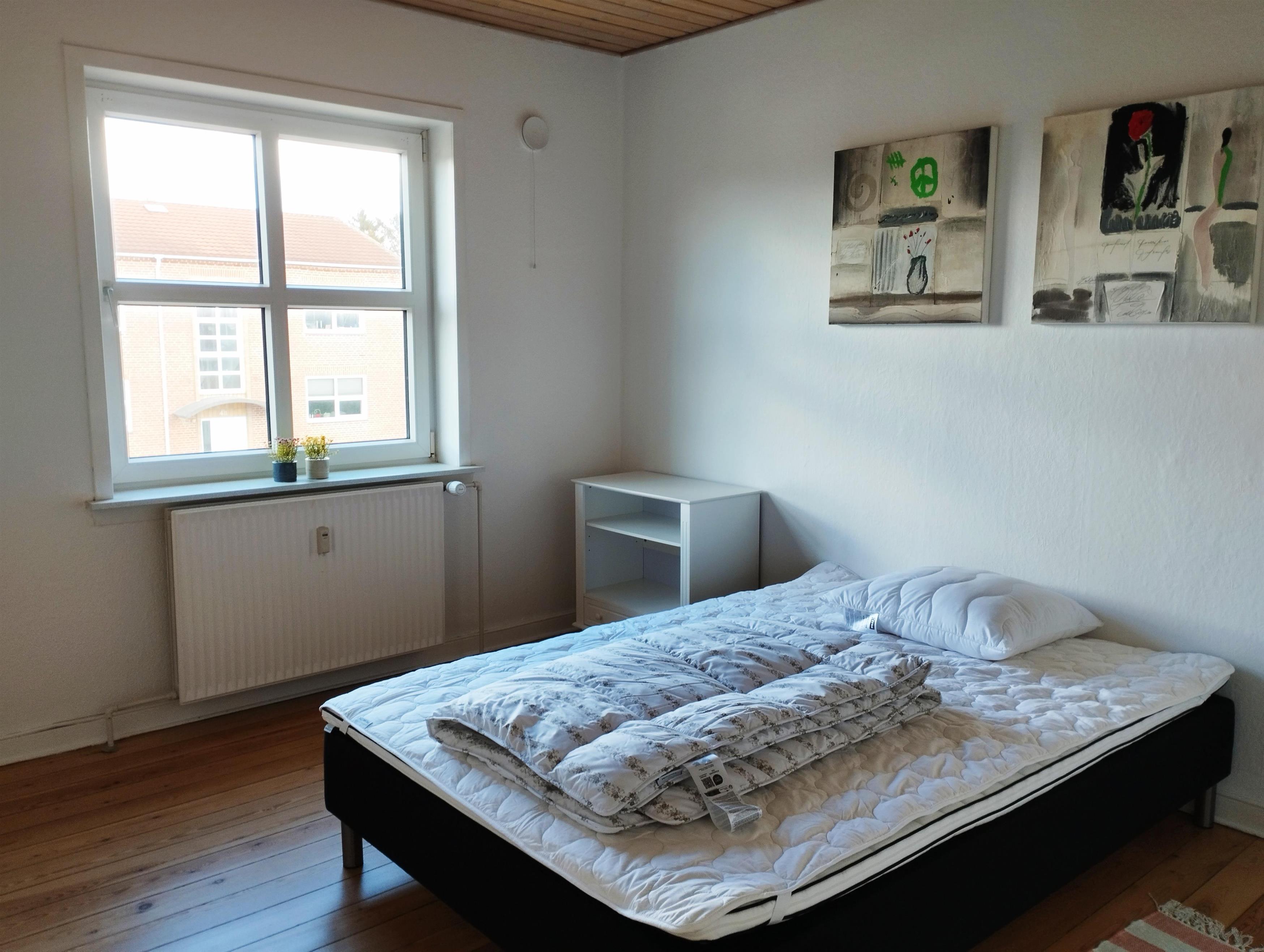 1 værelse med dobbeltseng, 1 værelse med enkelt seng, sovesofa i stuen.