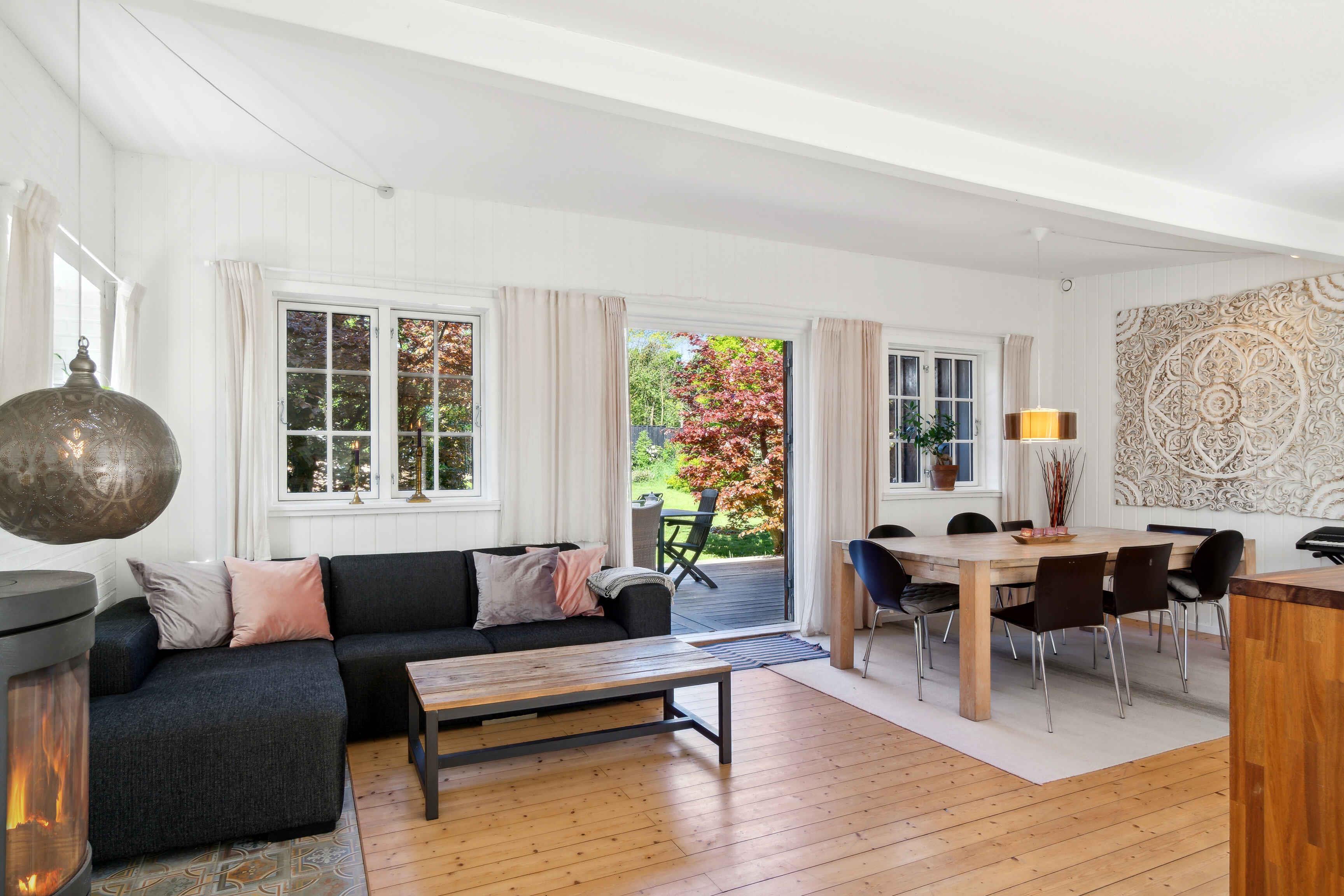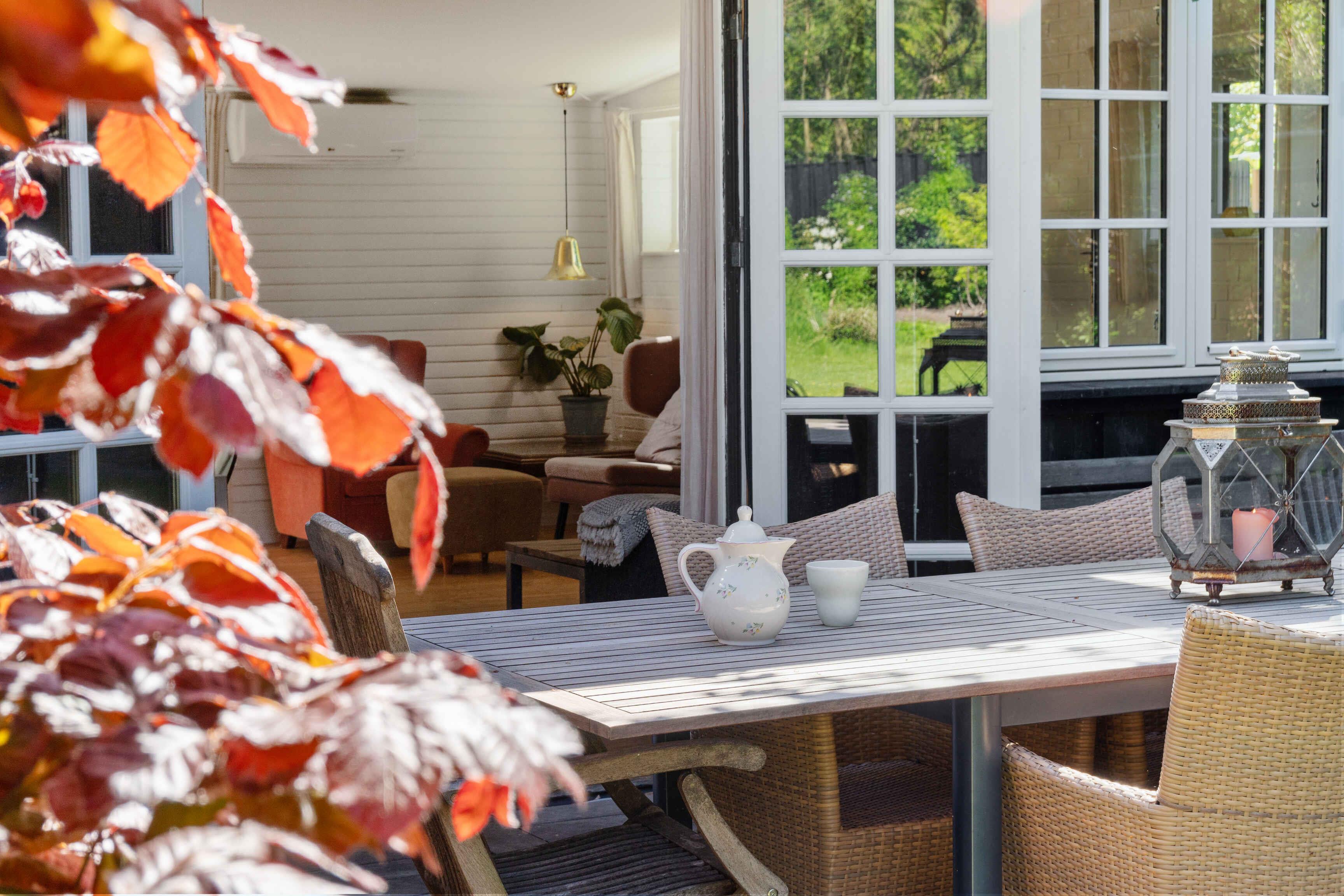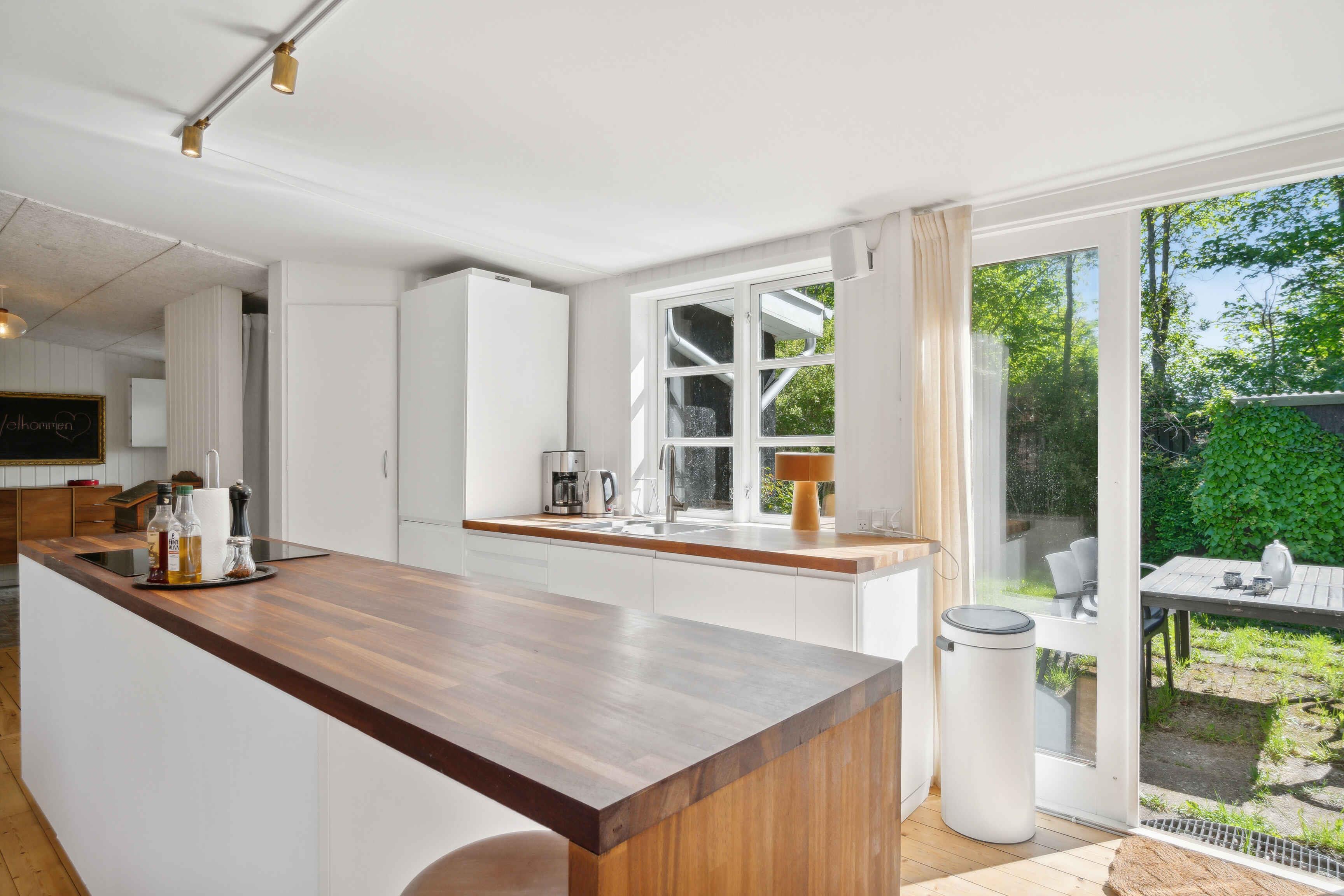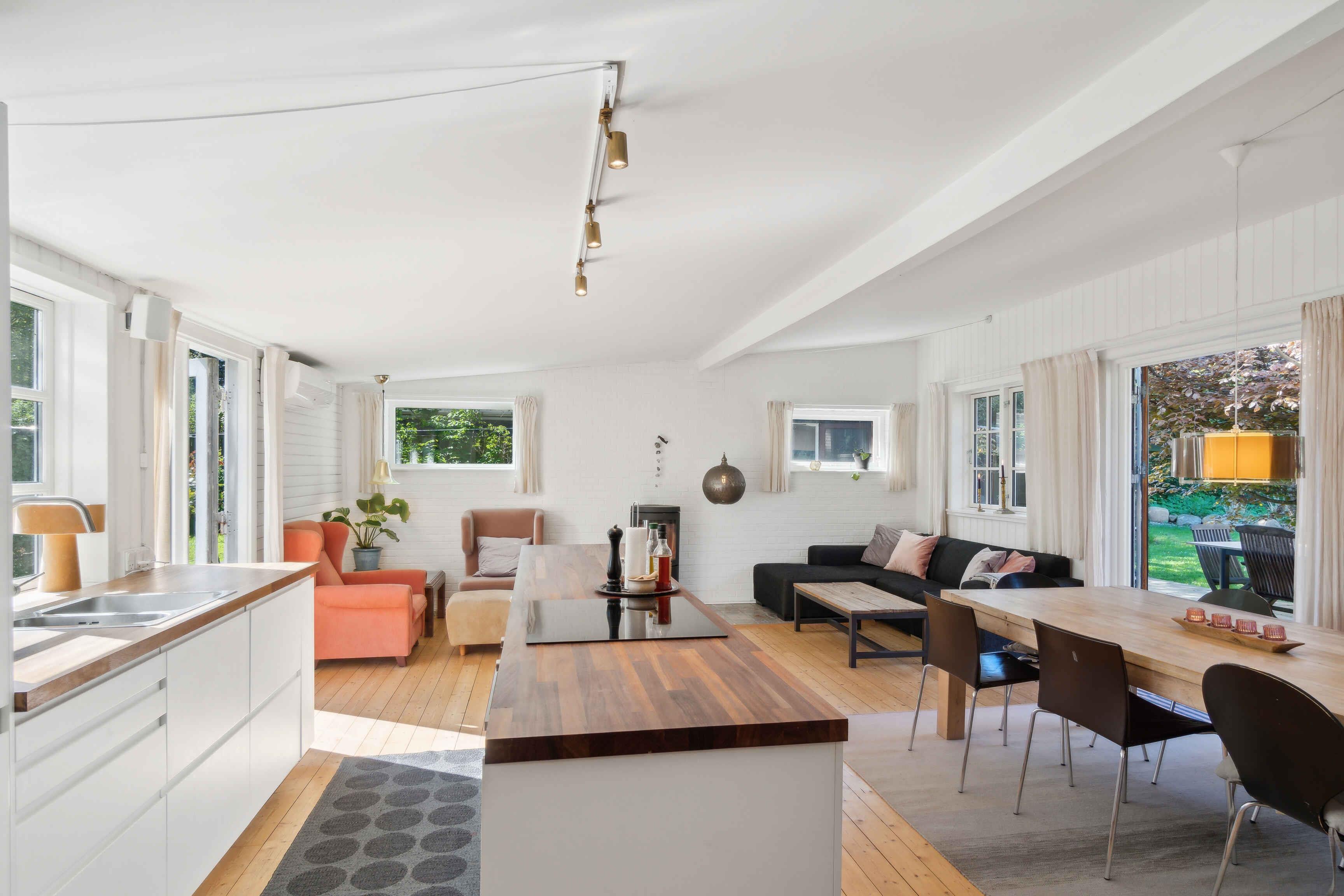 This enchanting summer house is more than just a residence - it's a retreat where memories are made and moments are shared. With its impressive 125 square meters, there's ample space to spread out and feel at home while still enjoying the special feeling of being away from the daily hustle and bustle. The large, airy kitchen-dining area is the heart of the house, a place where family and friends naturally gather to cook together, dine, and share stories of the day. The modern kitchen is equipped with everything you need to prepare delicious meals, while the open layout allows for free movement around the space. As the evening falls and the temperature drops a bit, there's nothing cozier than lighting up the fireplace and watching the flames dance hypnotically while relaxing with a good book or simply enjoying the company of loved ones. The large terrace stretching out from the house is the perfect spot to enjoy the long summer evenings, perhaps with a glass of cool drink in hand and the sound of waves in the distance. Outside awaits a large garden, inviting to play and outdoor activities. Children can frolic freely while adults stroll around and enjoy the beauty of nature. And if the sun gets too intense, there's always the option to retreat to the shade of the trees and take a well-deserved break. With its ideal location just 1 kilometer from the beach and local shops, this summer house combines the best of both worlds: convenience and tranquility. And with the outdoor pool as an extra touch, there are even more opportunities for relaxation and well-being. Whether you're a large family seeking a retreat to reunite and create memories together, or two families wanting to share experiences, this summer house is the perfect choice. However, to maintain the peaceful atmosphere for which this place is known, we do not allow young groups for festivals or parties. Welcome to your home away from home, where comfort, beauty, and tranquility go hand in hand to create the perfect holiday experience.