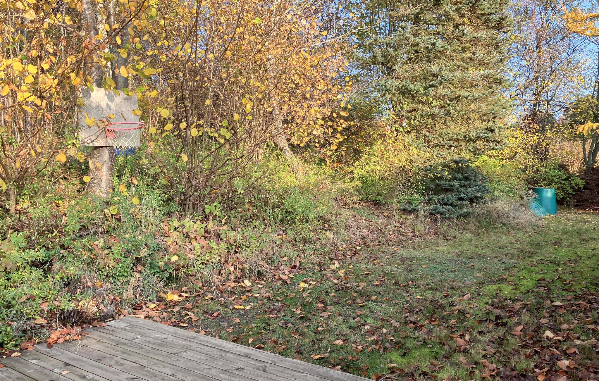 Treten Sie hinaus auf die sonnige Terrasse. Entspannen Sie sich inmitten von hohen Bäumen und Sträuchern, die Privatsphäre und Geborgenheit schenken. Genießen Sie Ihr Frühstück in der Morgensonne oder eine Mahlzeit im Freien. Nutzen Sie die Außendusche nach einem Tag am Wasser und spüren Sie das Gefühl von Freiheit und Natur.