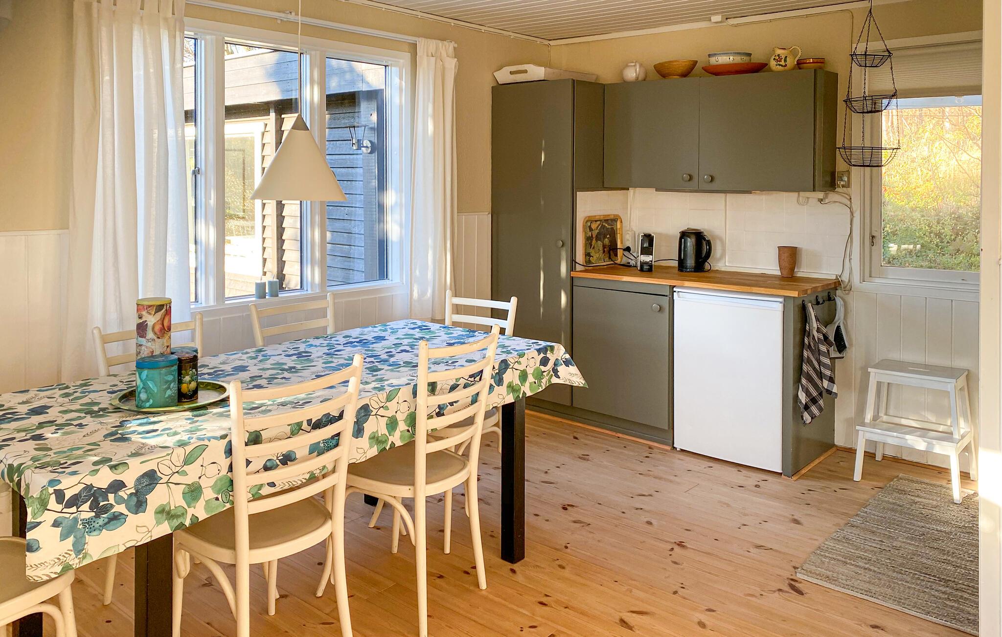 Hier finden Sie den idealen Ort, um Abstand vom Alltag zu gewinnen und neue Energie zu tanken. In Ihrem hellen und liebevoll eingerichteten Haus spüren Sie sofort die warme Atmosphäre. Machen Sie es sich im Wohnzimmer auf dem Sofa bequem und genießen Sie den Blick durch die großen Fenster in den grünen Garten. Nutzen Sie den Fernseher für einen gemütlichen Filmabend oder lesen Sie in Ruhe ein Buch. In der offenen Küche bereiten Sie Ihre Mahlzeiten ganz nach Ihrem Geschmack zu. Der Essbereich bietet Platz für gemeinsame Stunden am großen Tisch, während die hellen Holzböden und natürlichen Farben für ein harmonisches Wohngefühl sorgen.