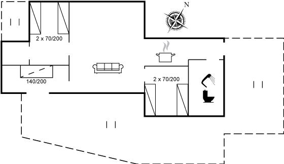 Holiday home suitable for 5 persons as well as 1 child up to 3 years. The holiday home is 70 m² and is build in 1966. You can bring along 1 pet. The holiday home is equipped with energy-saving heat pump. The holiday home has washing machine. Freezer capacity of 10 litres. Furthermore 1 wood pellet oven (6 mm pellets). For the youngest ones there is 1 high chair.