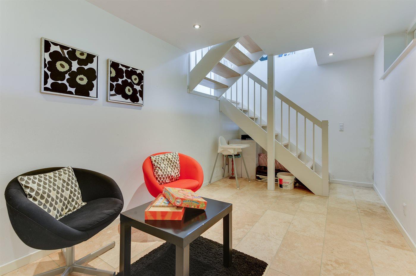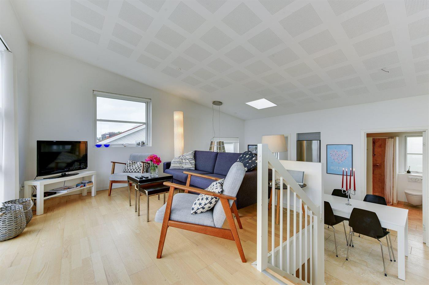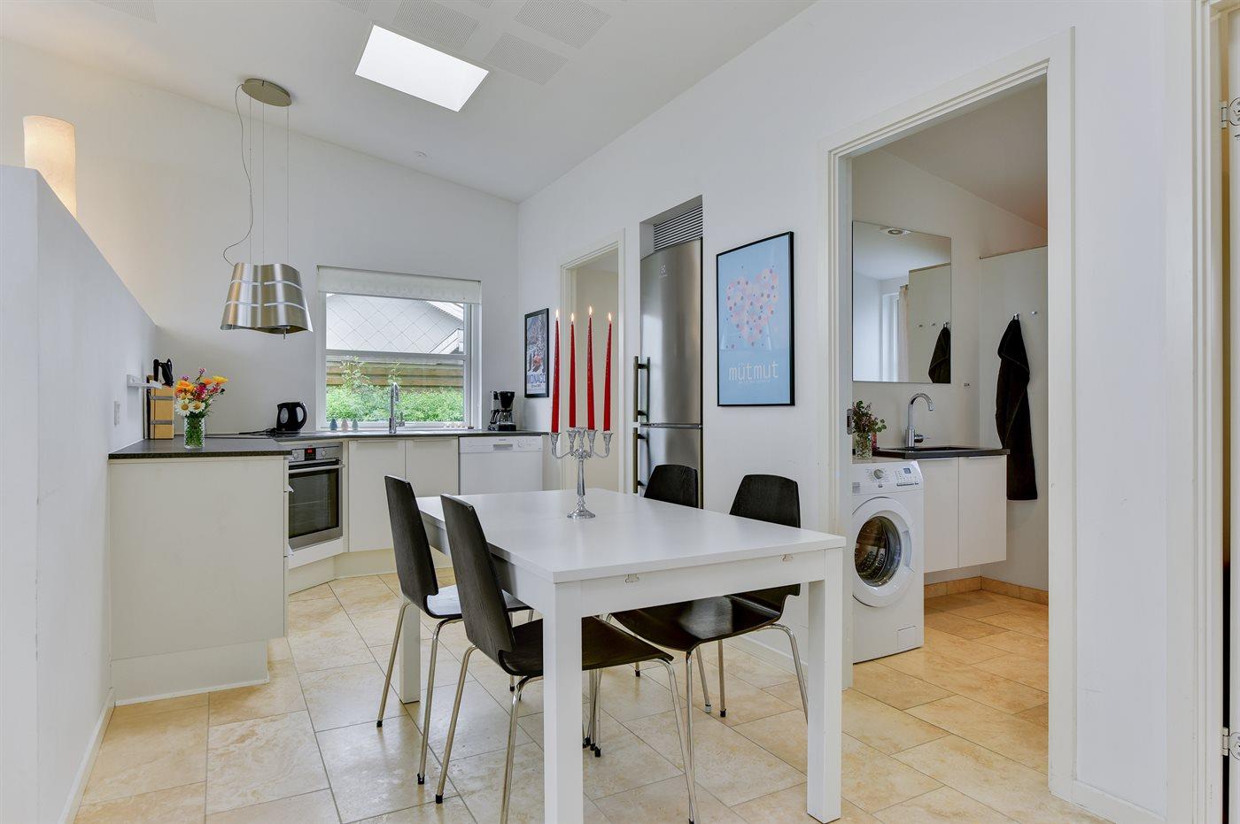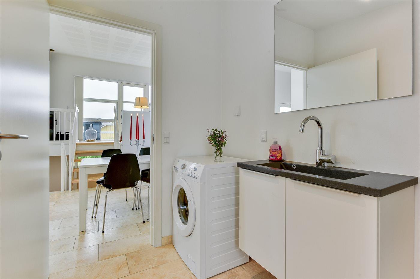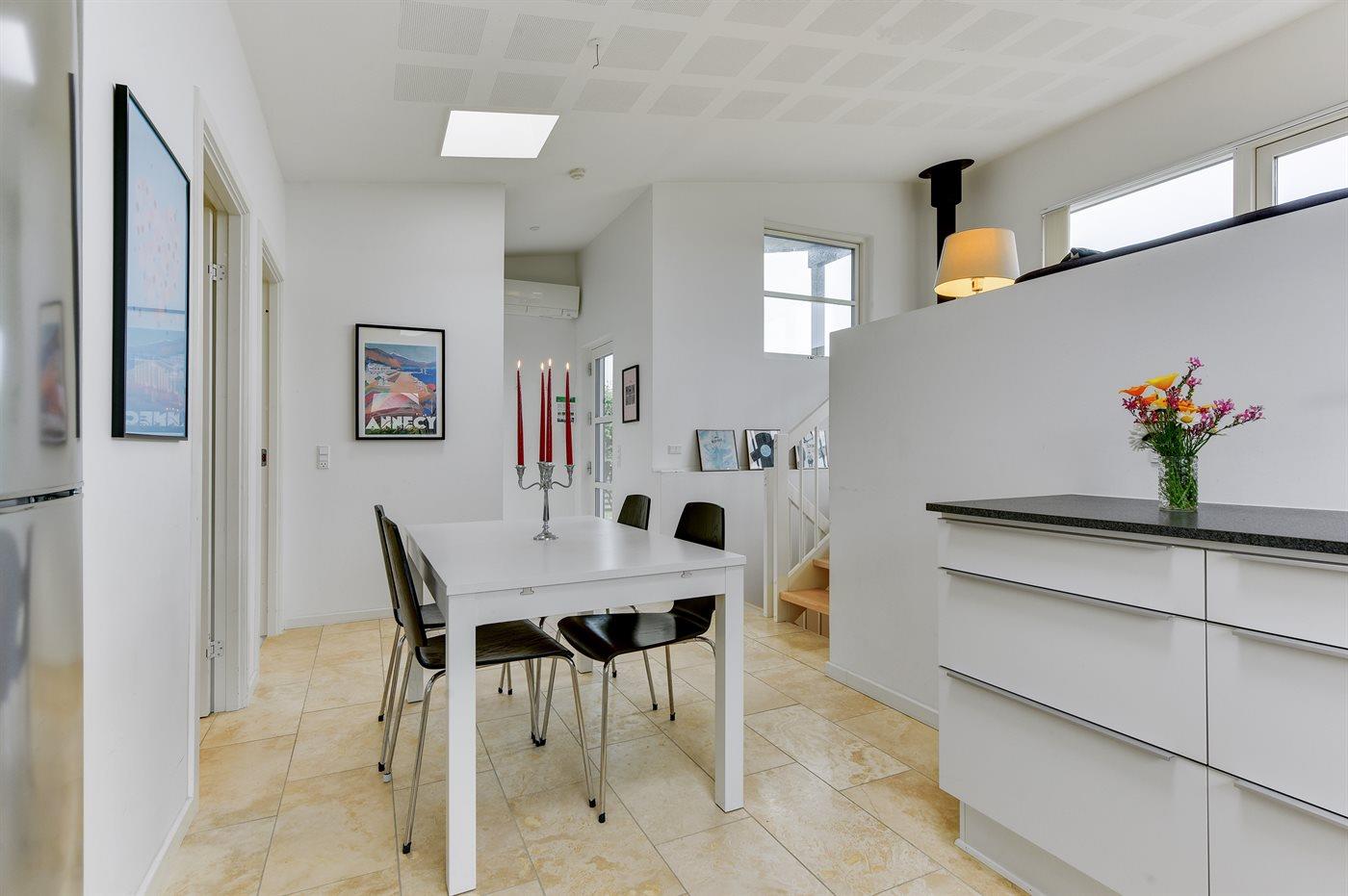 Holiday home suitable for 4 persons . The holiday home is 76 m², in 2 levels, and is build in 2014. No pets allowed. The holiday home is equipped with energy-saving heat pump. Floor heating in all tiled floors. The holiday home has washing machine. Freezer capacity of 60 litres. Further more there is 1 wood-burning stove. For the youngest ones there is 1 high chair.