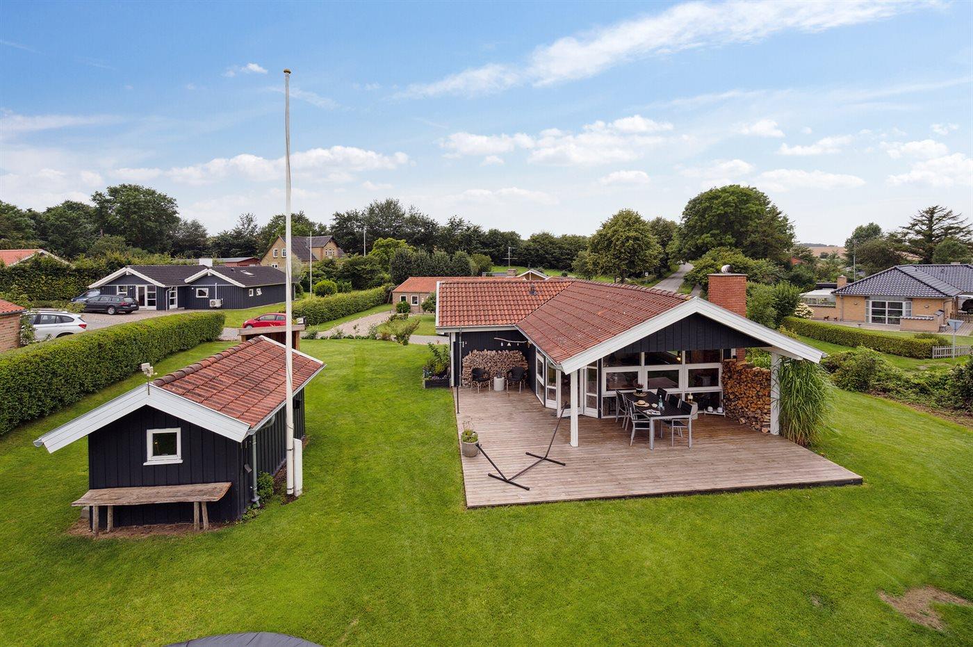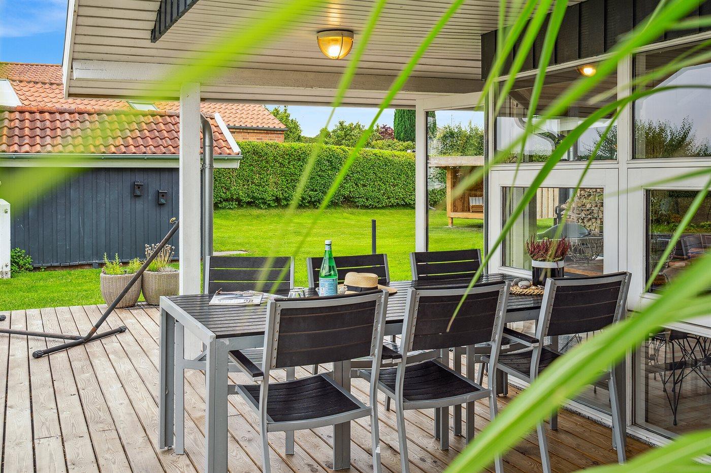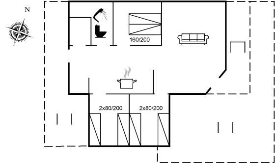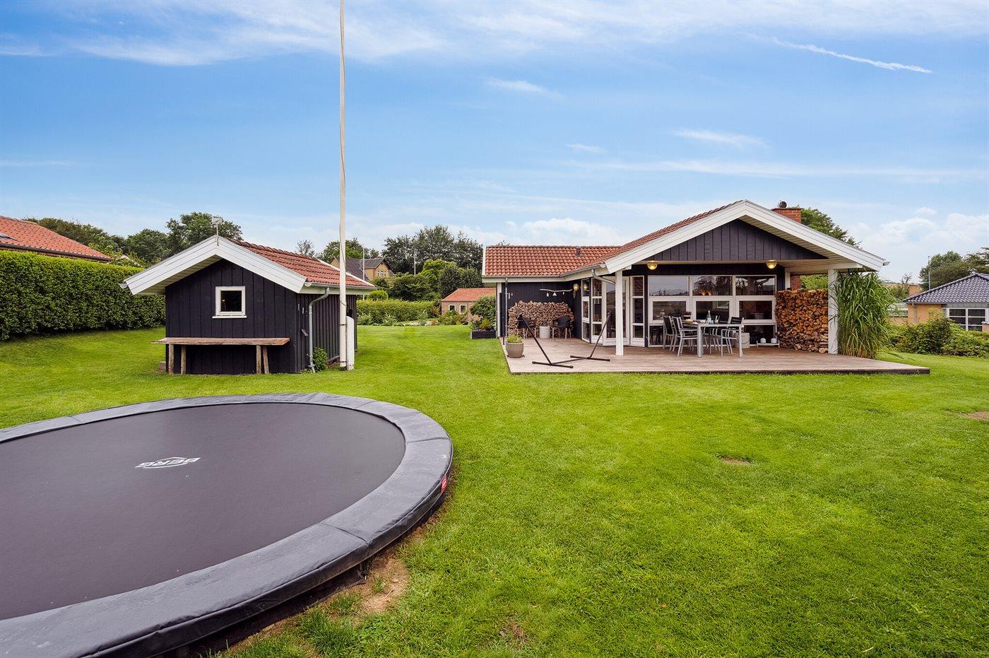 The holiday home is situated on a 874 m² garden site. Situated 300 m from the sea. Nearest shop is 3000 m away. You will find a golf course in a distance of 12000 m. A terrace belong to the holiday home. Furthermore the house has a covered terrace. Trampoline. Situated 500 m from a playground. Shelter. Barbecue at your disposal. Parking place by the holiday home.