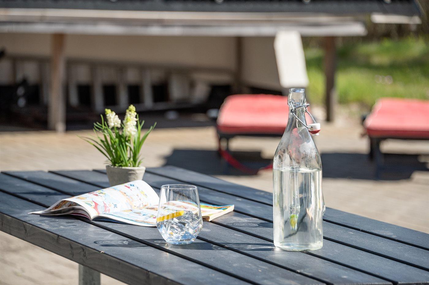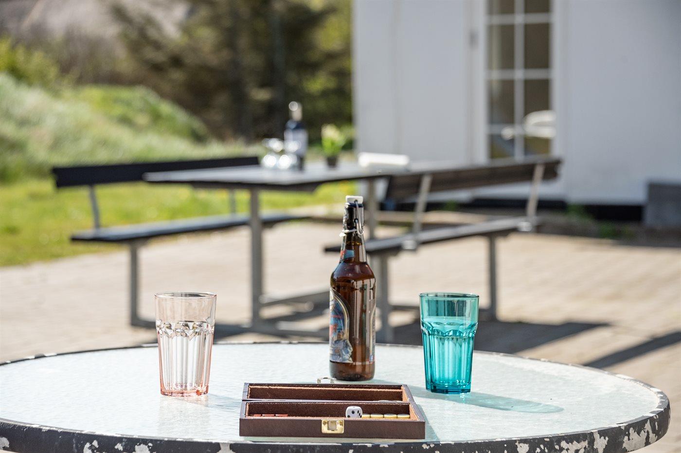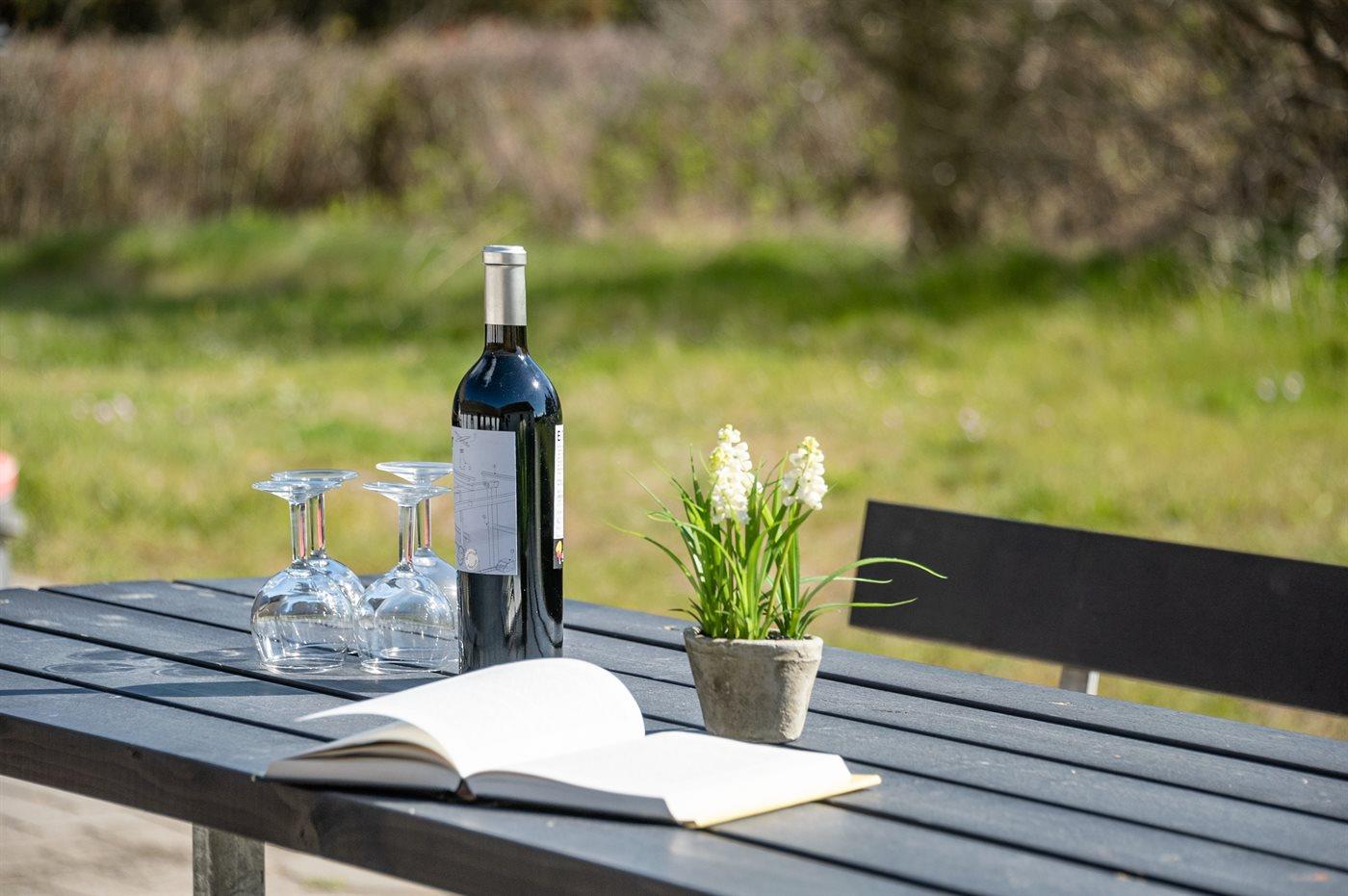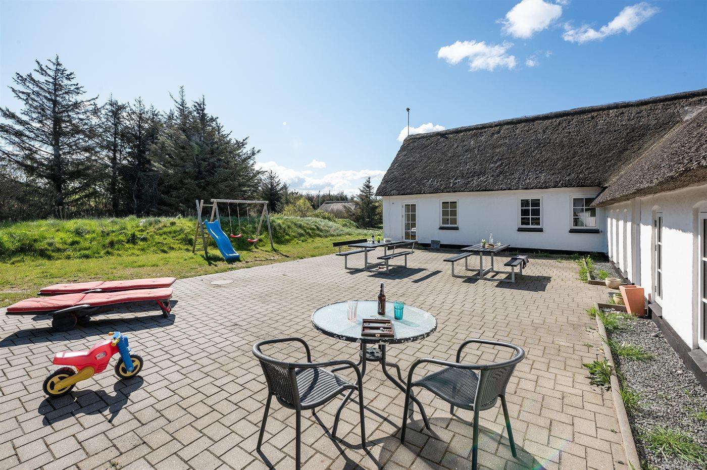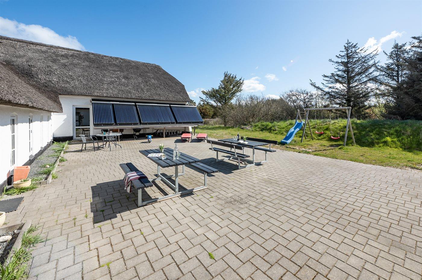 The holiday home is situated on a 5500 m² natural site. Situated 900 m from the sea. Nearest shop is 1500 m away. You will find a golf course in a distance of 15000 m. A 100 m² terrace belong to the holiday home. Swing. Plug for charging electric car is available. Parking place by the holiday home.
