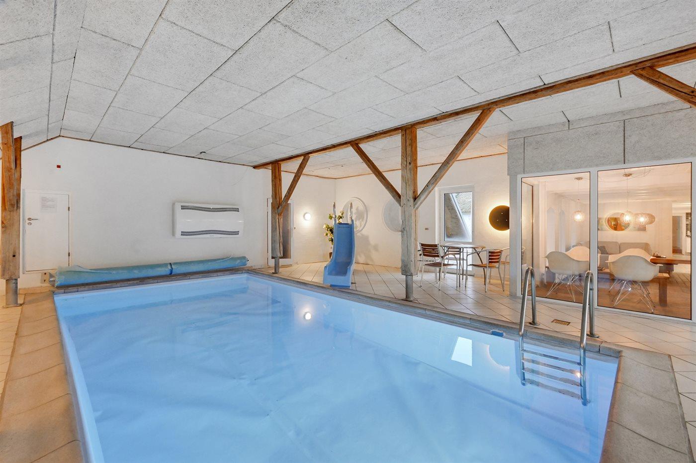 You can play and have a great time together in the indoor swimming pool. The swimming pool is 3,5 m wide, 7 m long and it is up to 1,55 m deep. The water temperature is between 24 and 28 ° C hot. There is floor heating in the swimmingpool area.