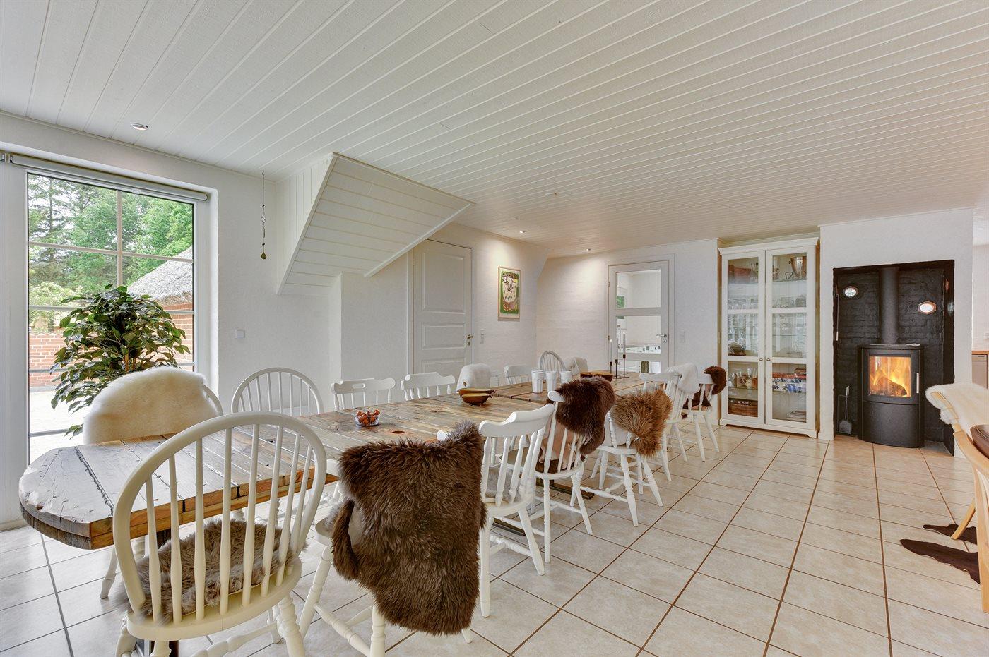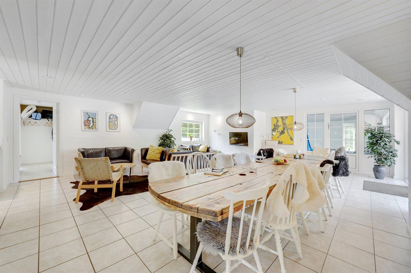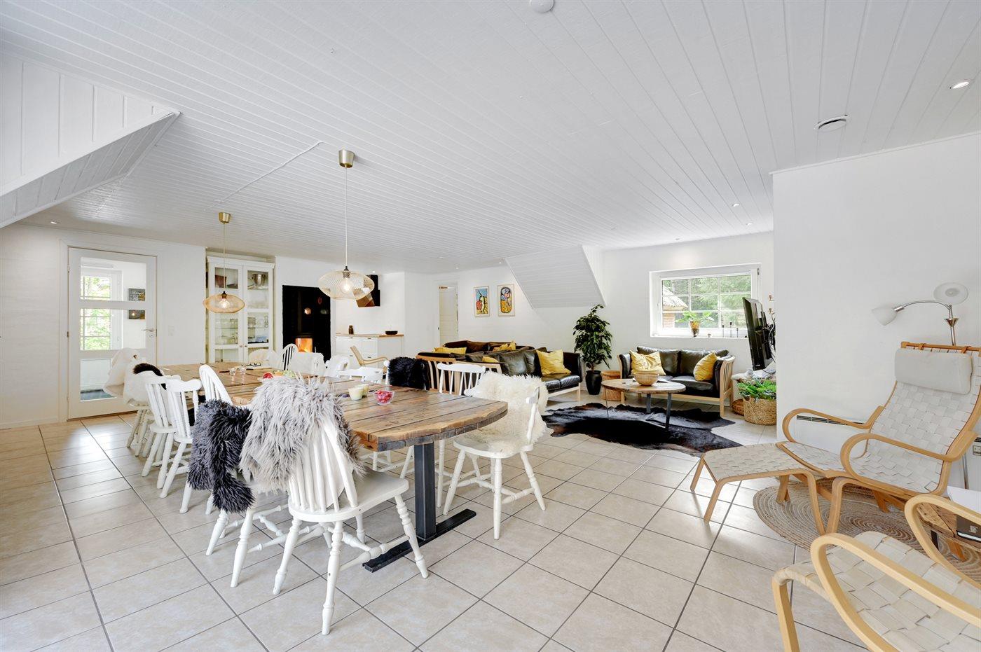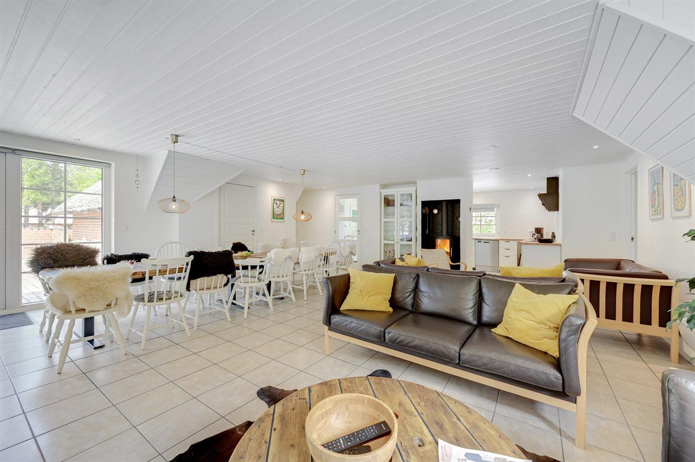 Holiday home suitable for 16 persons as well as 2 children up to 3 years. The holiday home is 243 m², in 2 levels, and is build in 1992. In 2021 the holiday home was renovated. You can bring along 2 pets. The holiday home is equipped with energy-saving heat pump. The holiday home is equipped with a energy-saving heat recycling system. Floor heating in the hall. The holiday home has washing machine. Tumble dryer. Freezer capacity of 120 litres. Further more there is 1 wood-burning stove. For the youngest ones there are 2 high chairs.