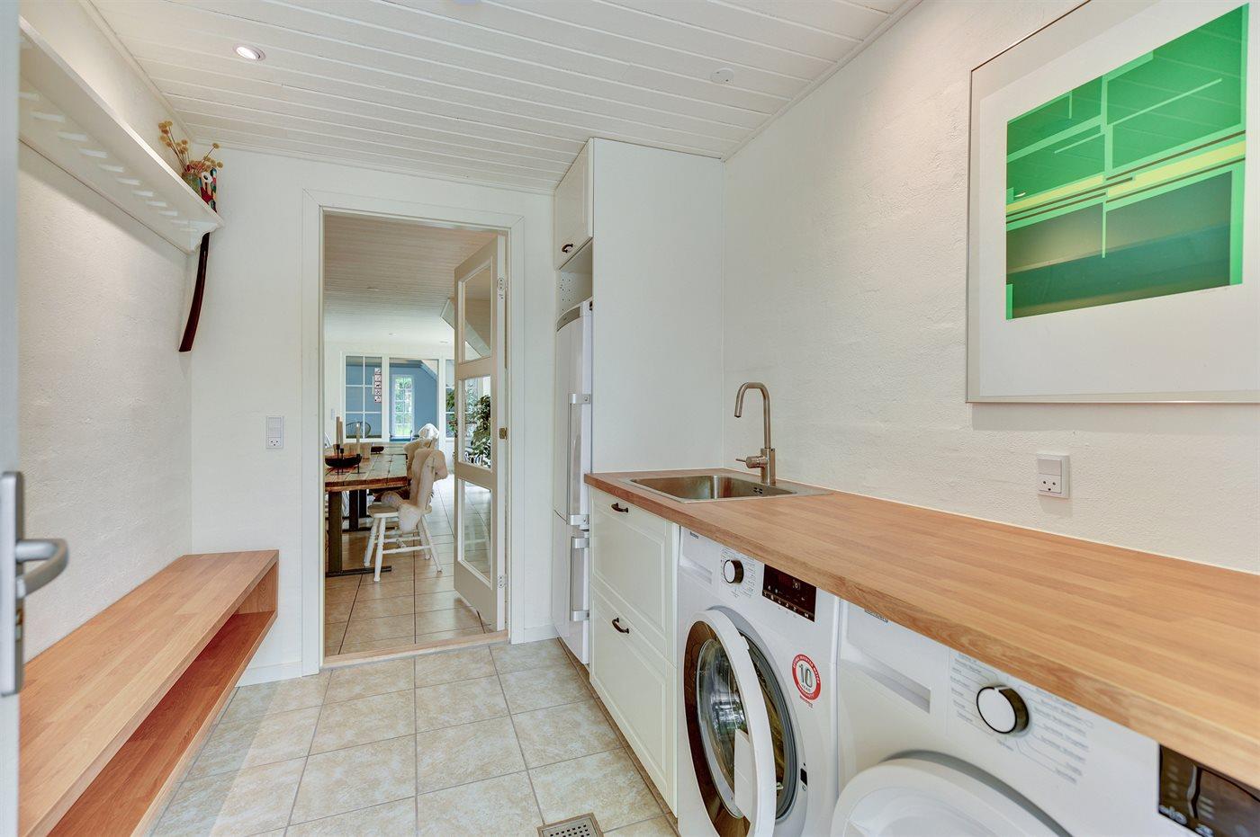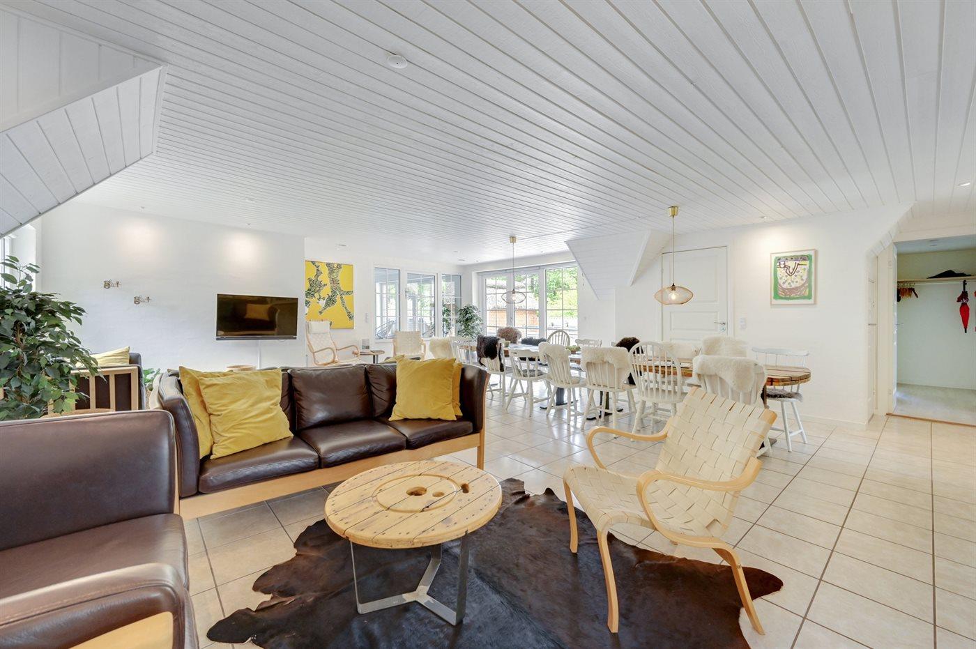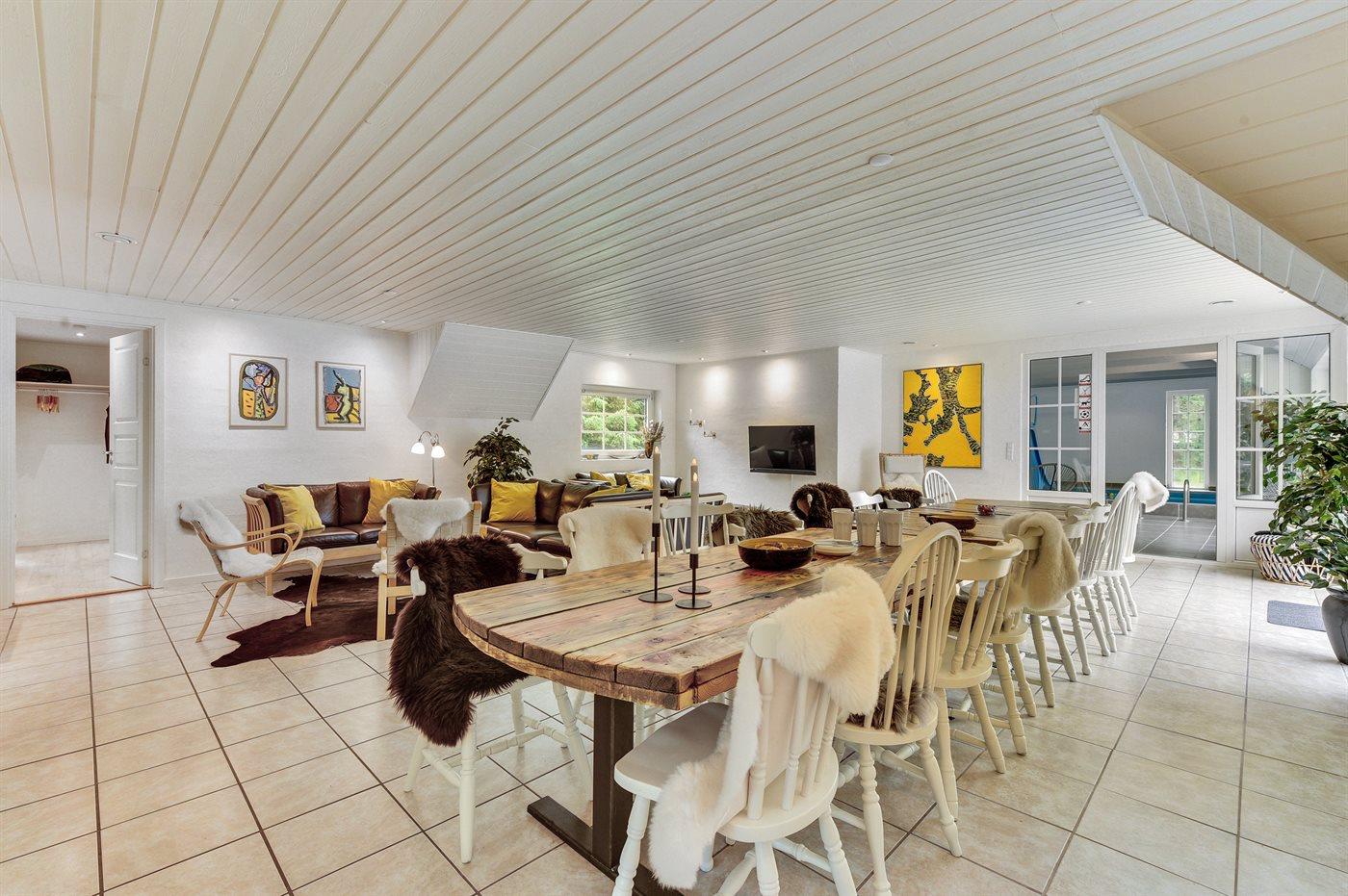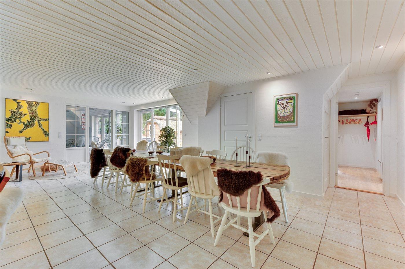 Holiday home suitable for 16 persons as well as 2 children up to 3 years. The holiday home is 243 m², in 2 levels, and is build in 1992. In 2021 the holiday home was renovated. You can bring along 2 pets. The holiday home is equipped with energy-saving heat pump. The holiday home is equipped with a energy-saving heat recycling system. Floor heating in the hall. The holiday home has washing machine. Tumble dryer. Freezer capacity of 120 litres. Further more there is 1 wood-burning stove. For the youngest ones there are 2 high chairs.