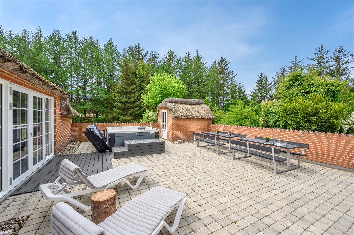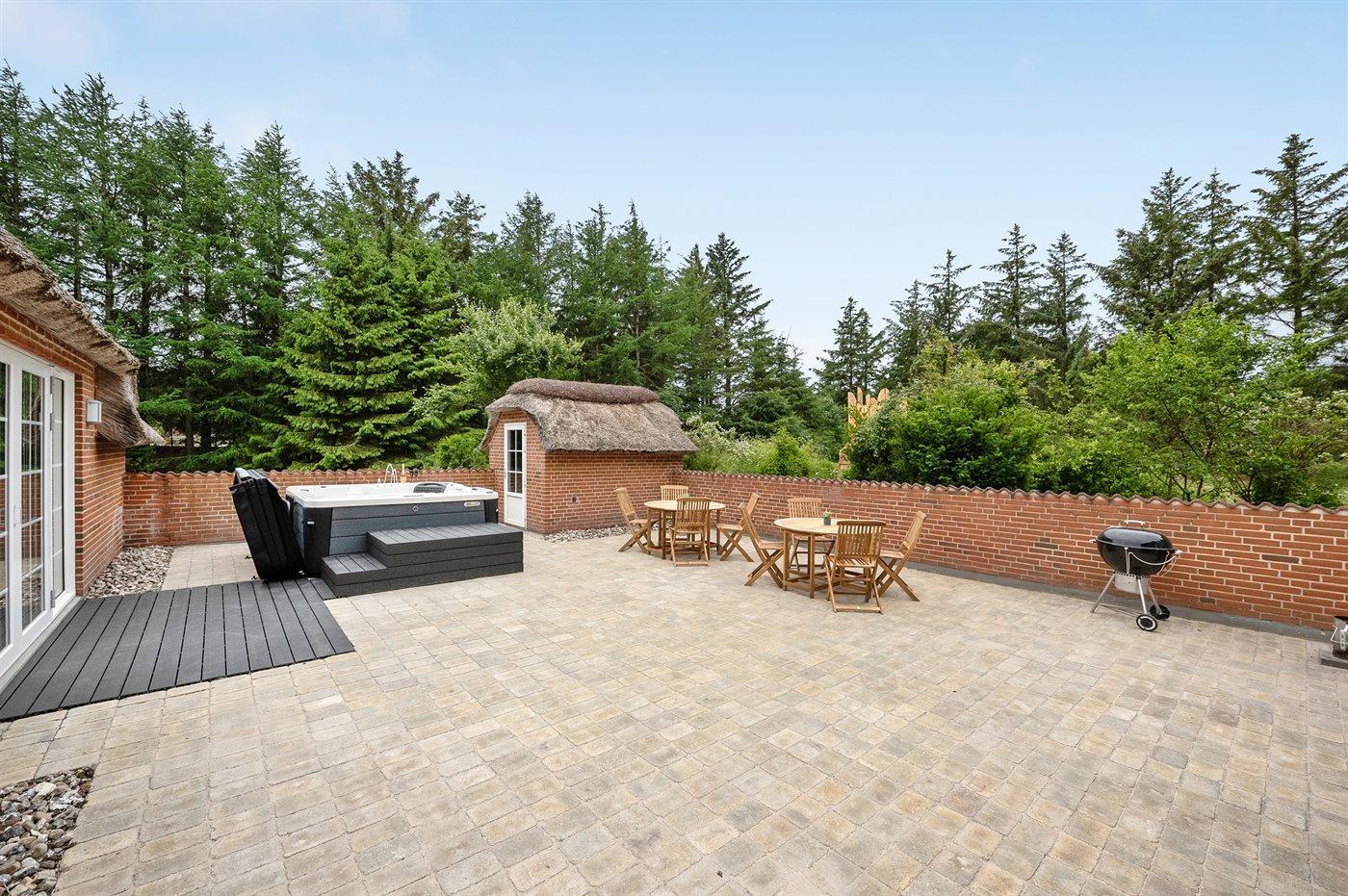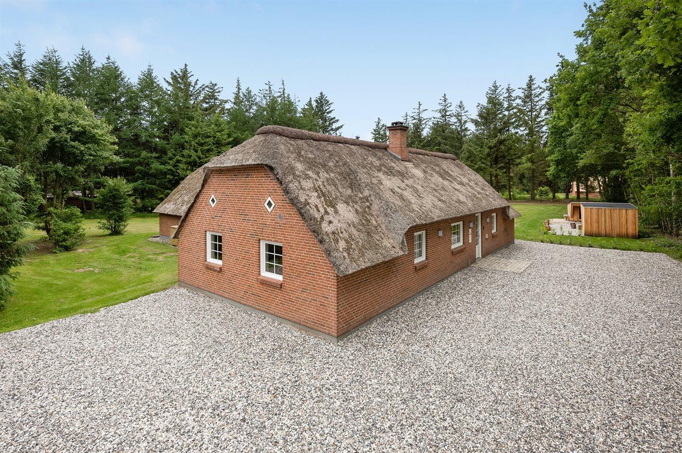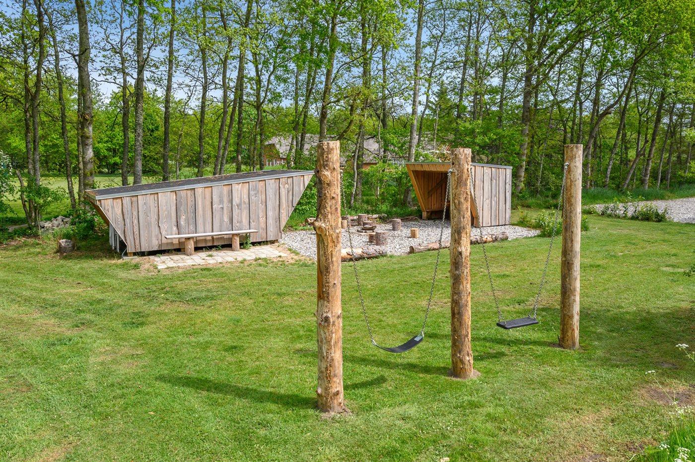 The holiday home is situated on a 5583 m² natural site. Situated 2300 m from the sea. Nearest shop is 4000 m away. You will find a golf course in a distance of 17000 m. A 85 m² terrace belong to the holiday home. Hereof a total of 85 m² enclosed terrace. You find a tool shed. Swing. Sandbox. Play tower. Football goal. Situated 200 m from a playground.Fire place. Shelter. Plug for charging electric car is available. Parking place by the holiday home.