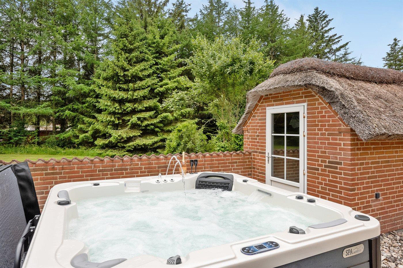 You can relax in the outdoor prefilled whirlpool for 7 persons.