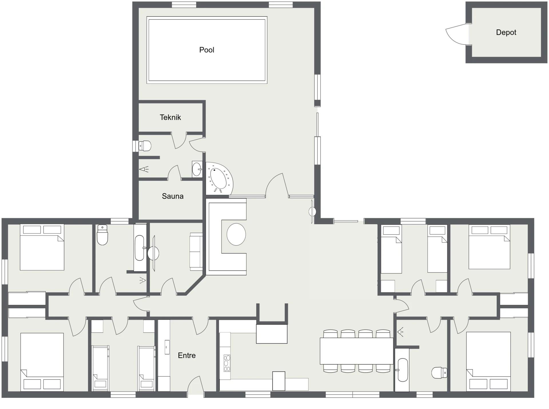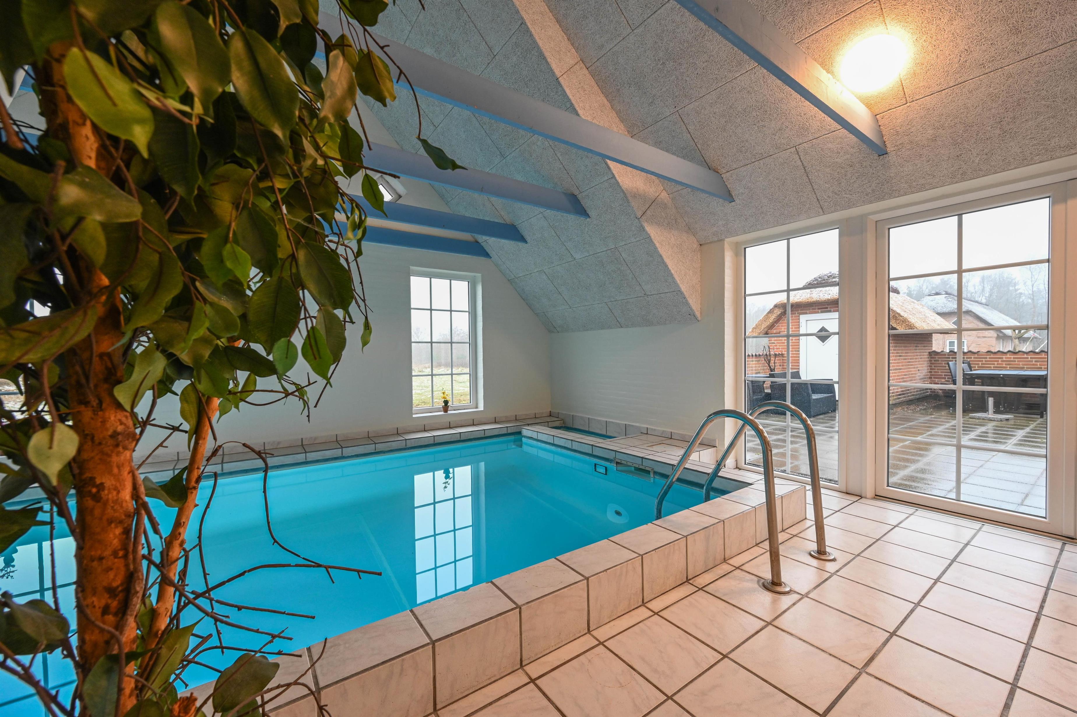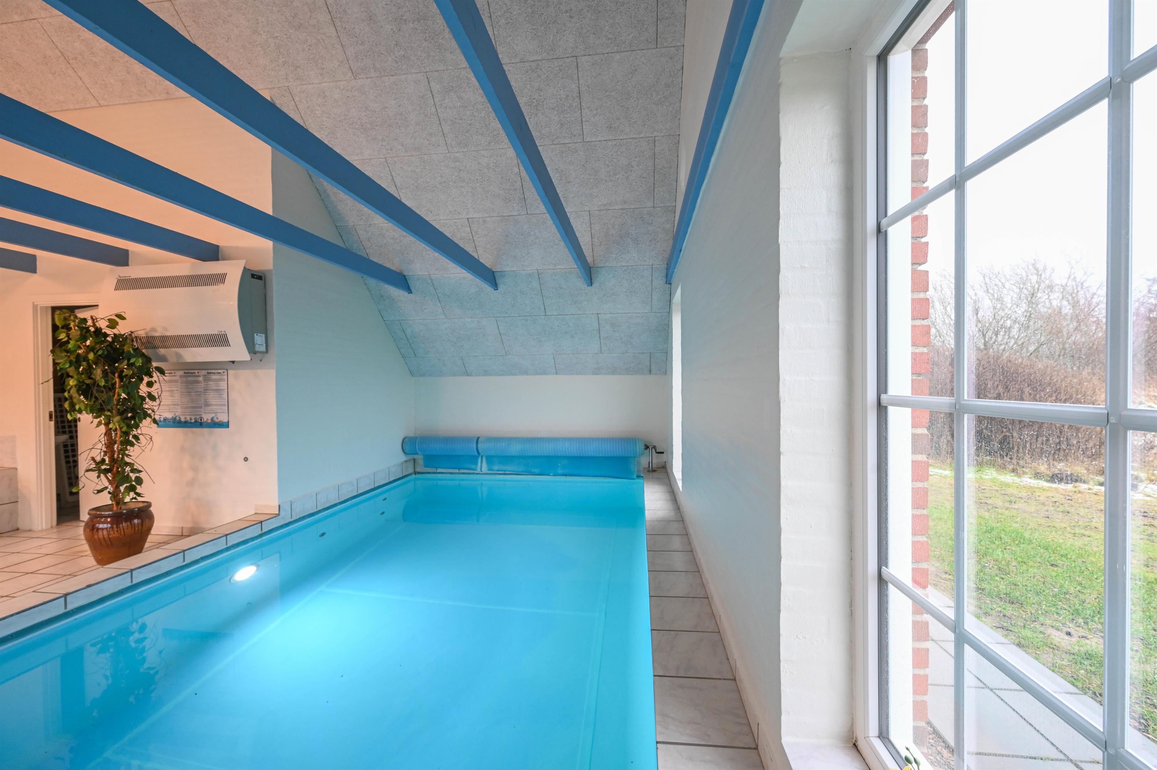 If you want to make your dream vacation a reality, this pool house is for you. In the swimming pool and also outside on the large property, children and adults can be active to their heart's content. You can really relax in the whirlpool and sauna or take a walk in the beautiful nature. The holiday home is wonderfully quiet on a 5,000 square metre nature plot in beautiful Vester Husby. Here you will find the sea, the forest and good shopping nearby.