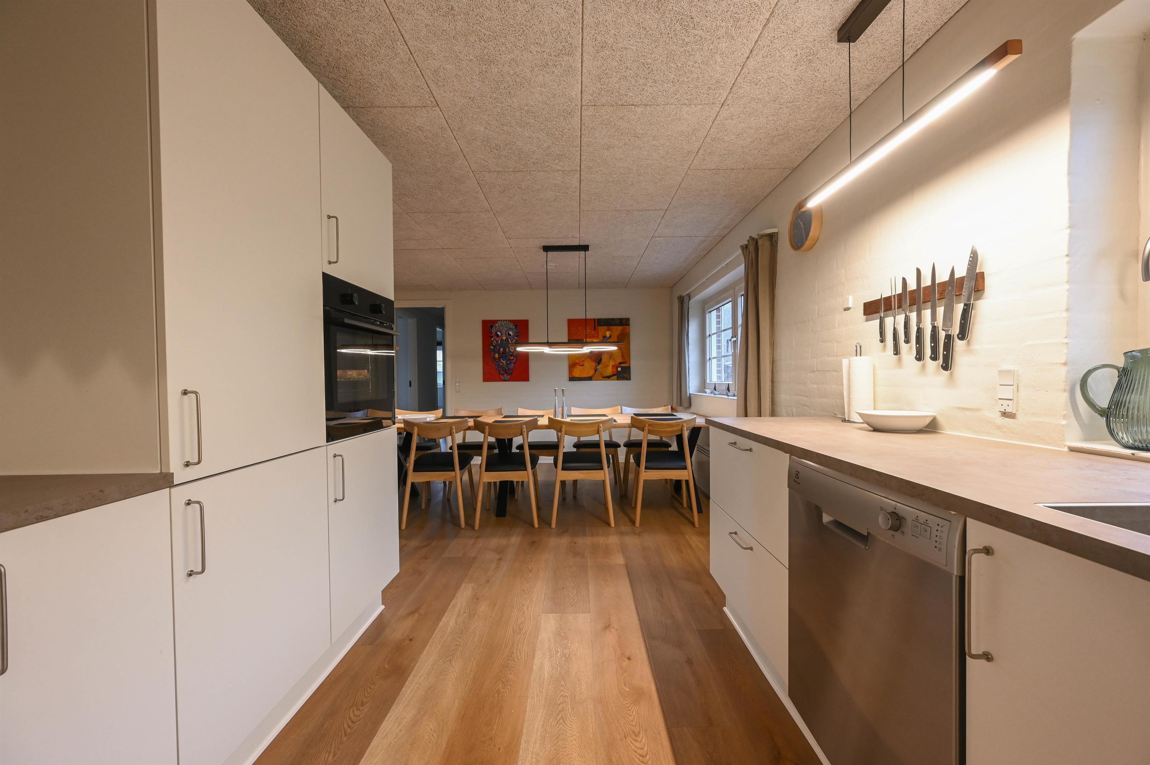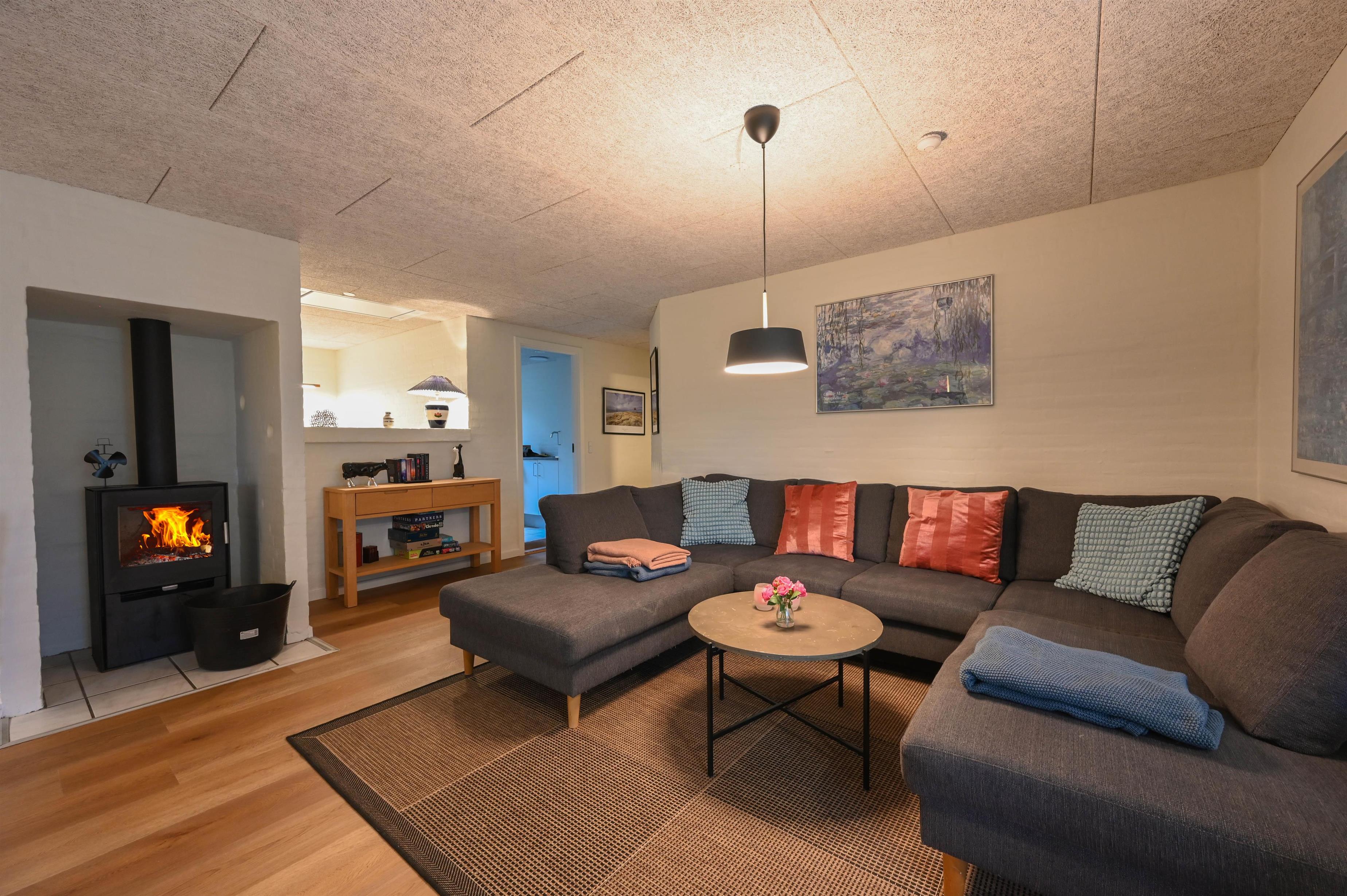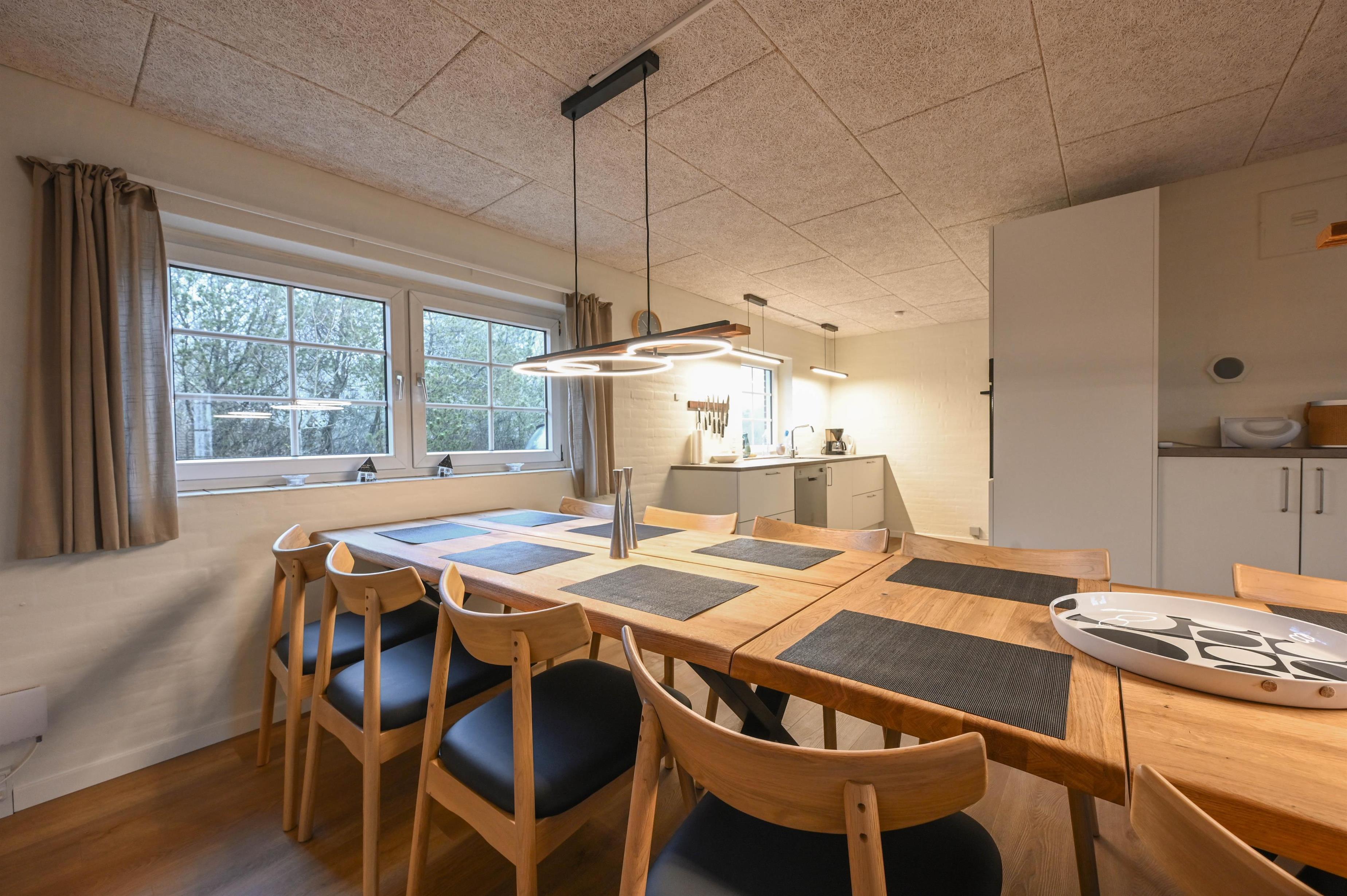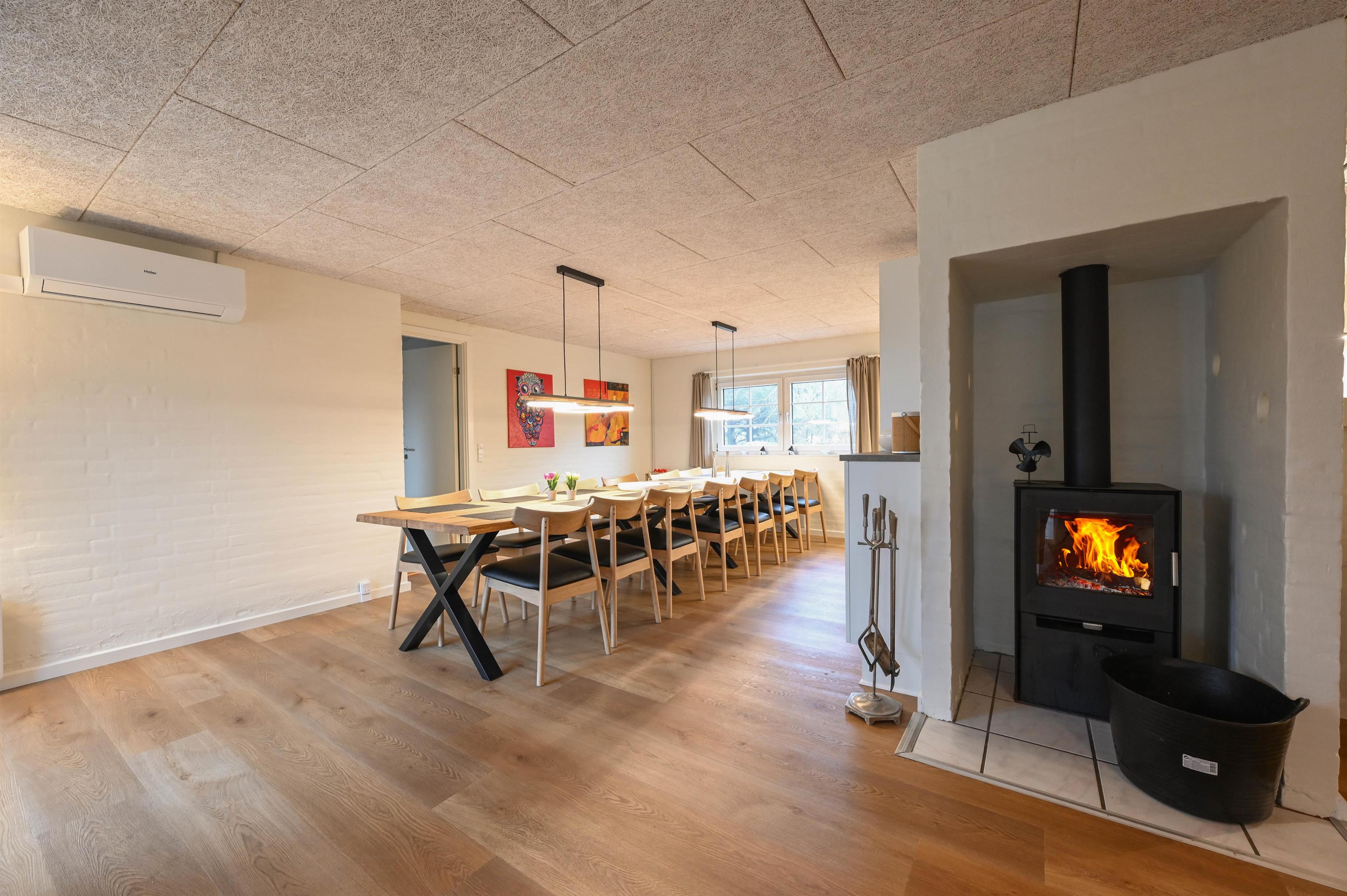 Layout: The beautifully furnished holiday home is very suitable for 2 families. Here you have 2 separate sleeping compartments, each with its own bathroom and 3 bedrooms each. There is a well-equipped kitchen and living room, which is cosy and personal with quality furniture, a lovely large dining table and a wood-burning stove.