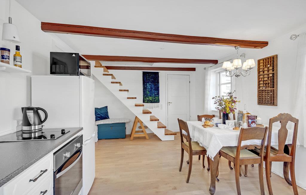 Erleben Sie entspannte Ferientage in Ihrer liebevoll eingerichteten Wohnung mit ländlicher Atmosphäre. Auf der Insel Falster erwartet Sie eine gemütliche Unterkunft in einem traditionellen dänischen Fachwerkhaus, nur einen kurzen Spaziergang von der Küste entfernt. Treten Sie ein durch Ihren eigenen Eingang und machen Sie es sich auf zwei Etagen bequem. Entspannen Sie im hellen Wohnbereich mit Sofa, Sessel und Fernseher. Nutzen Sie die kleine Leseecke oder genießen Sie gemeinsame Mahlzeiten am einladenden Esstisch. Die sichtbaren Deckenbalken verleihen den Räumen eine besondere Stimmung. In der offenen Küche macht gemeinsames Kochen richtig Spaß. Bereiten Sie hier Ihre Lieblingsgerichte zu.