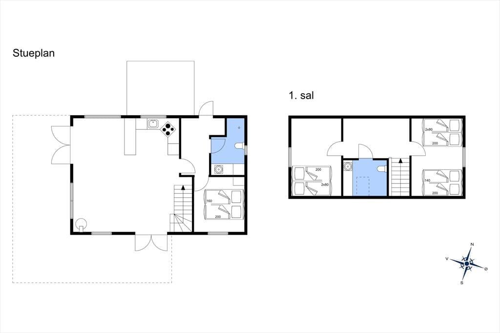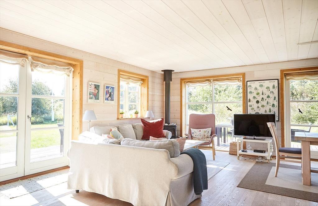 Det velindrettede og rummelige familie- og børnevenlige bjælkehus i to plan har plads til den store familie eller endog to familier. I kan endda fordele jer på stueplan og 1. salen, hvorfra I også kan se til havet fra balkonen. Det ene soveværelse ligger i stueplan, så hvis du har svært ved at gå på trapper, er det muligt at sove der. Fra den lyse stue kan du fra de store franske terrassedøre og de store vinduer følge med i det udendørs liv dagen igennem. Fra det åbne køkken kan du følge med i samtalen i stuen, mens du har stegen i ovnen eller bager pandekager til eftermiddagskaffen. På førstesalen med de to soveværelser er der også plads til, at børnene kan lege.
