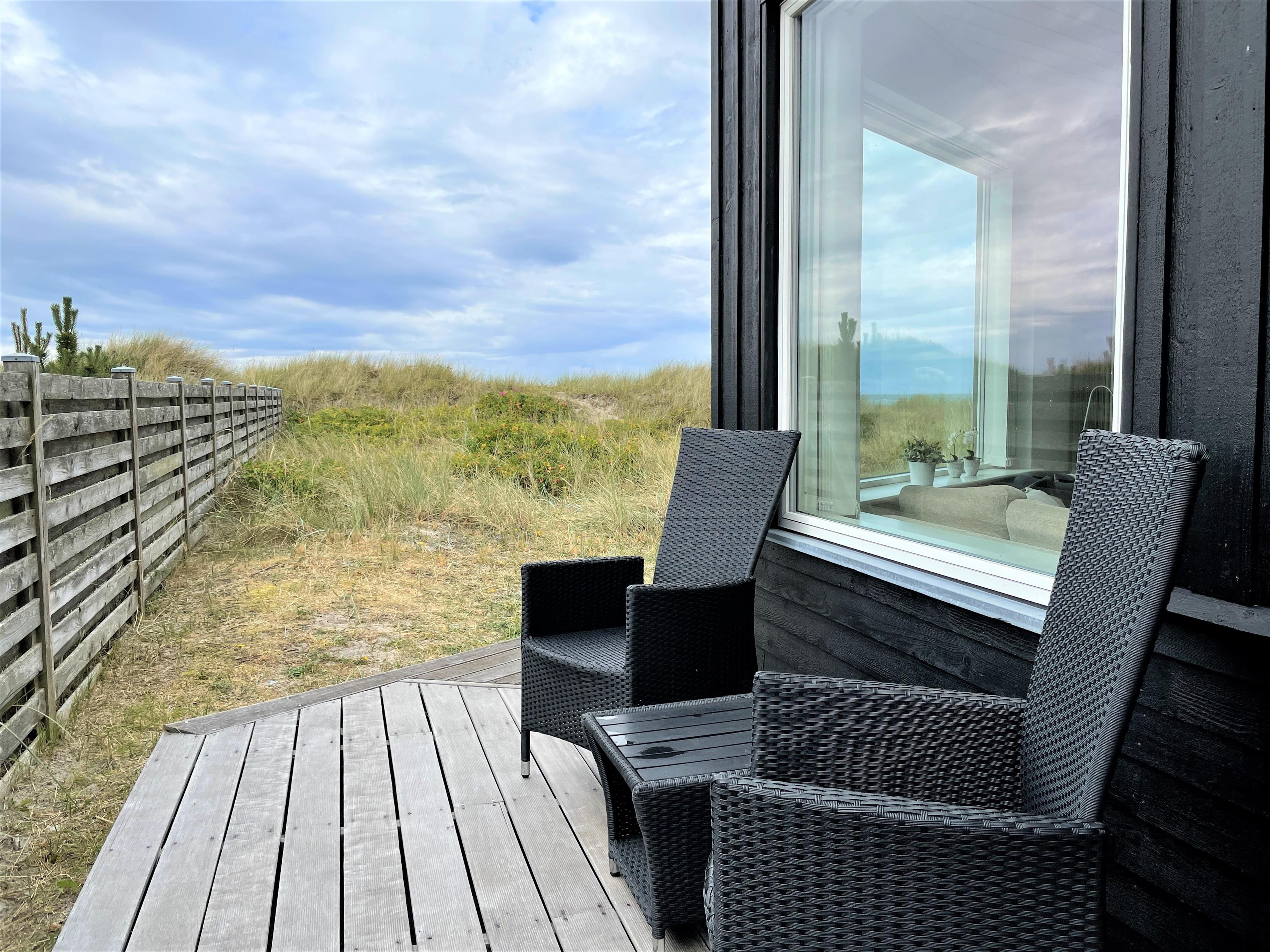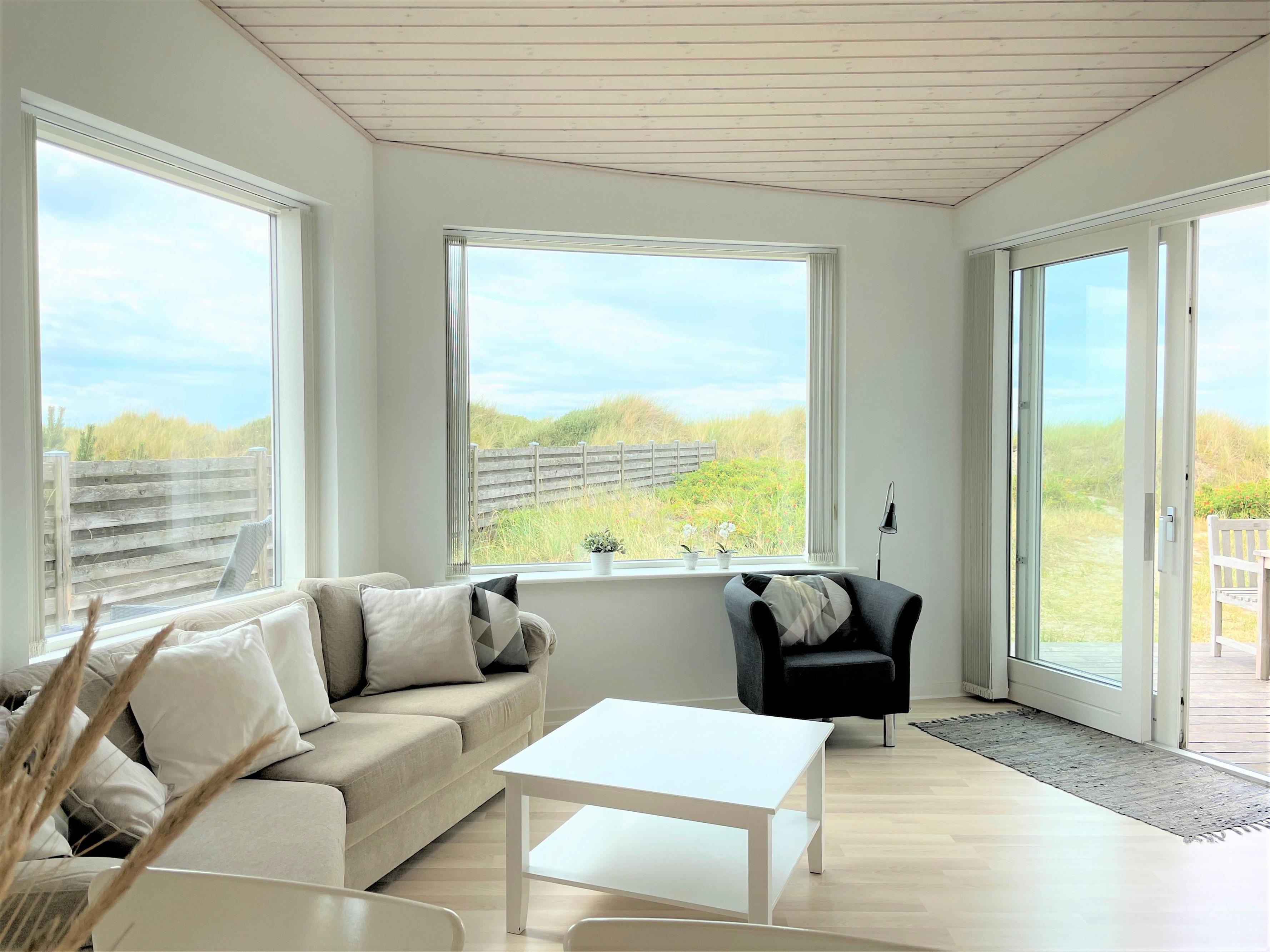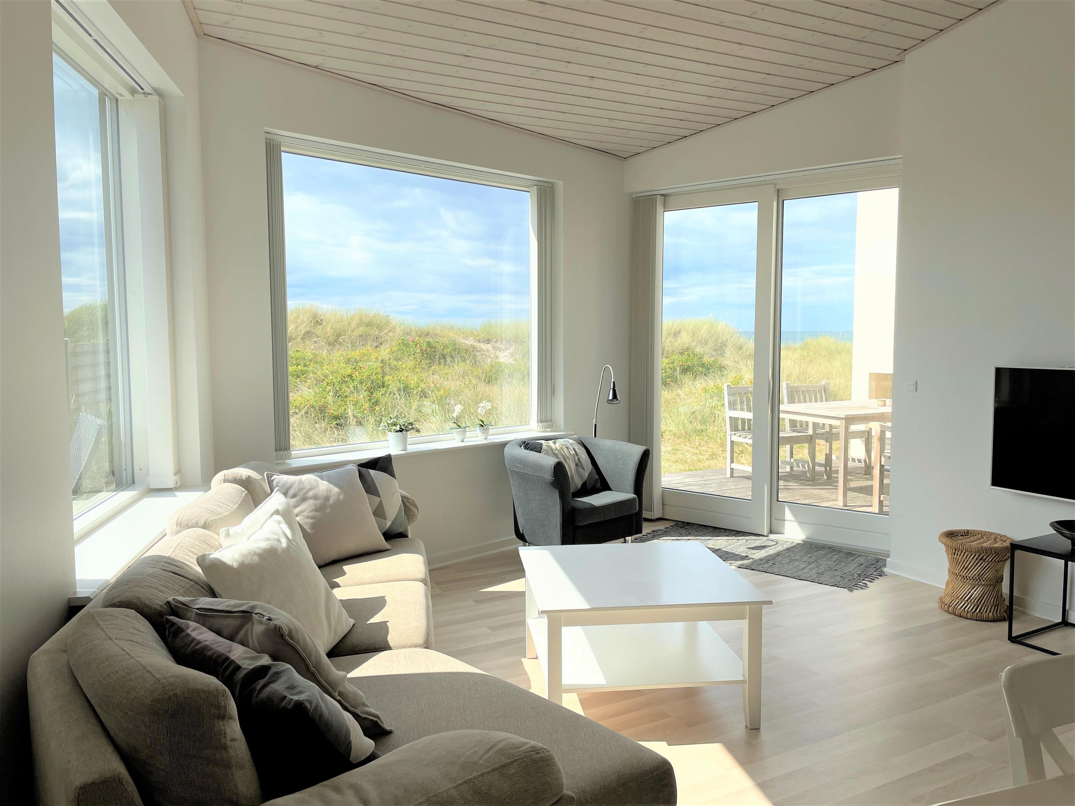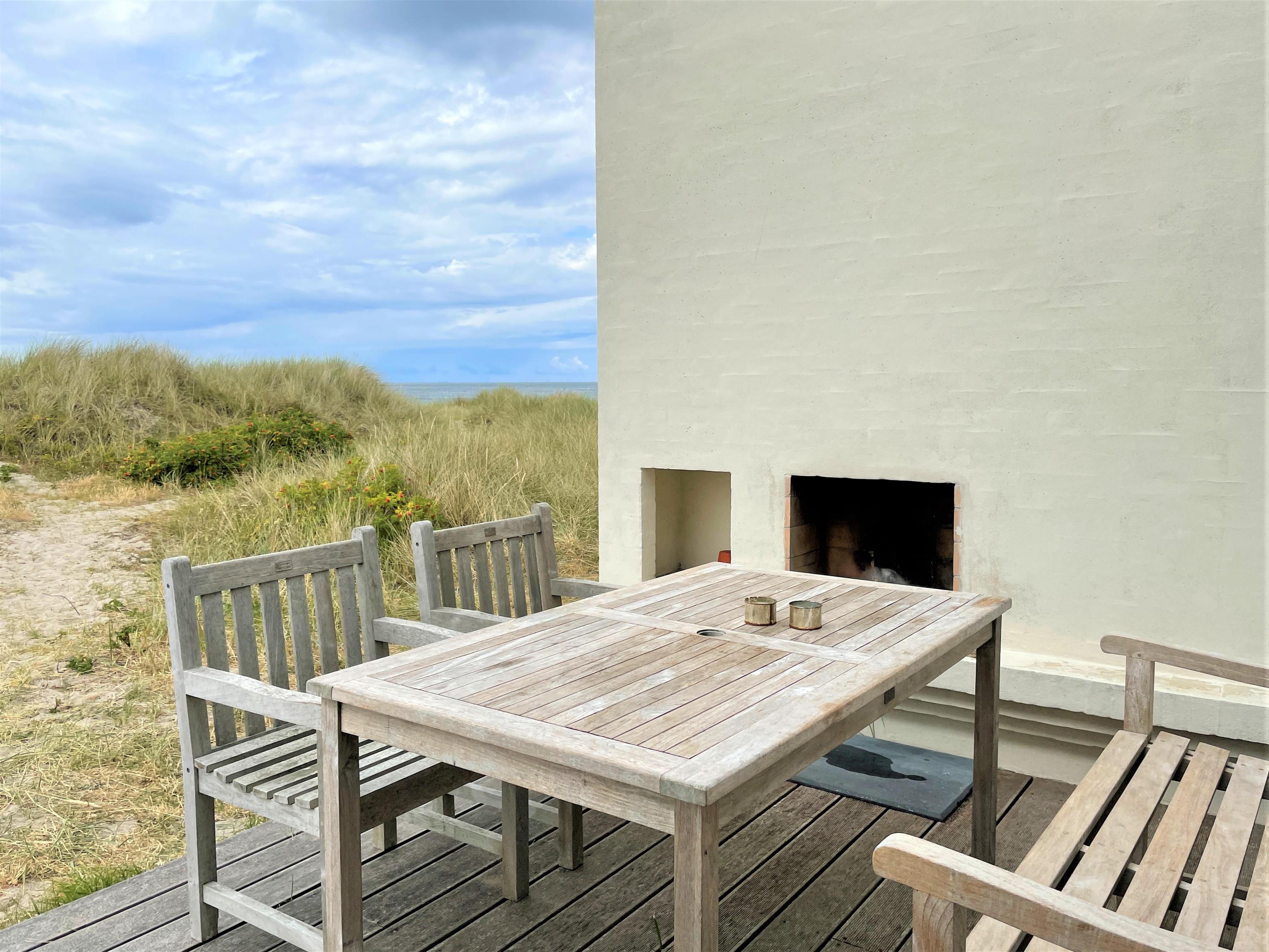 Inmitten der Dünen mit voller Meersicht, liegt dieses fantastische Strandhaus. Dies ist eines der besten Lage auf Læsø, zudem an einem der besten Sandstränden auf Læsø. Wo man wirklich den Strand und die Natur geniessen kann, und gleichzeitig nahe beim gemütlichem Hafenviertel ist. Selbst das Strandhaus beinhaltet einen schönen Eingang, grosse helle und Moderne Küche/Waschküche mit Essplatz und Sofaecke mit einem eingebautem Kamin in der Wand. Das Haus hat 3 Schlafzimmer , zwei mit Doppel und eines mit 2 Einzelbetten. Vom Schlafzimmer mit Doppelbett und vom Wohnzimmer, gibt es einen Ausgang zur Terasse mit Panoram-Meersicht. Via Ausgang steht man direkt inmitten von Strandgräser und Heckenrosen.