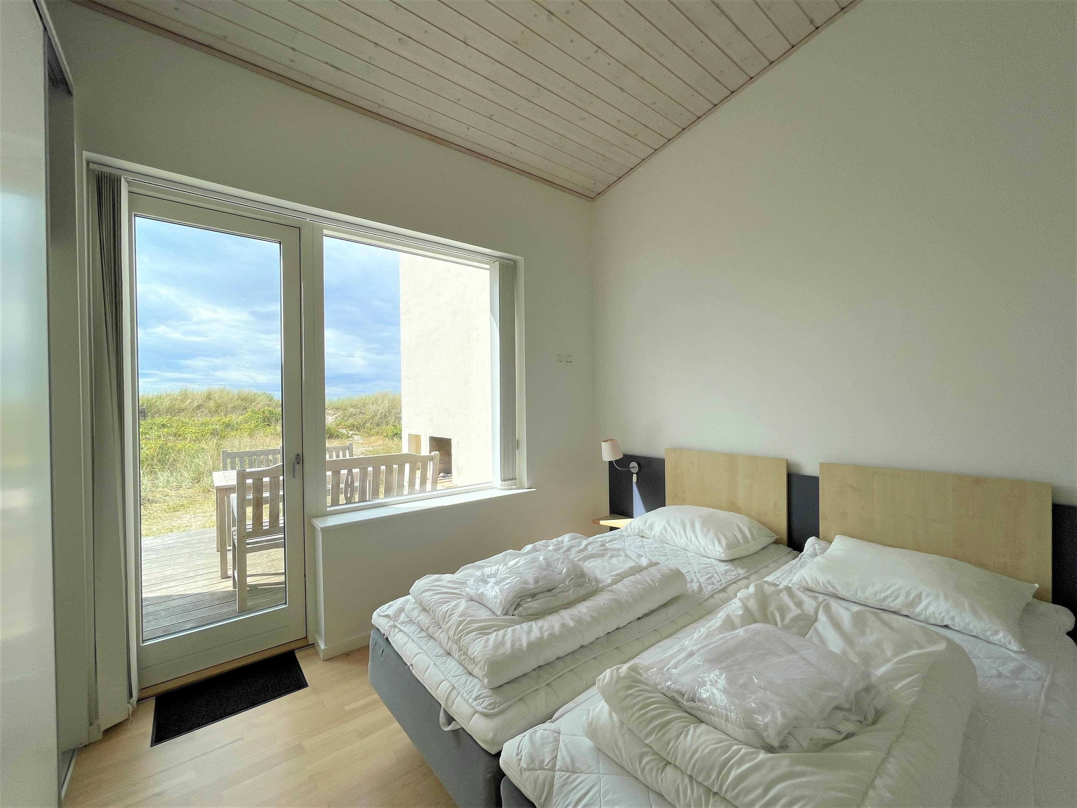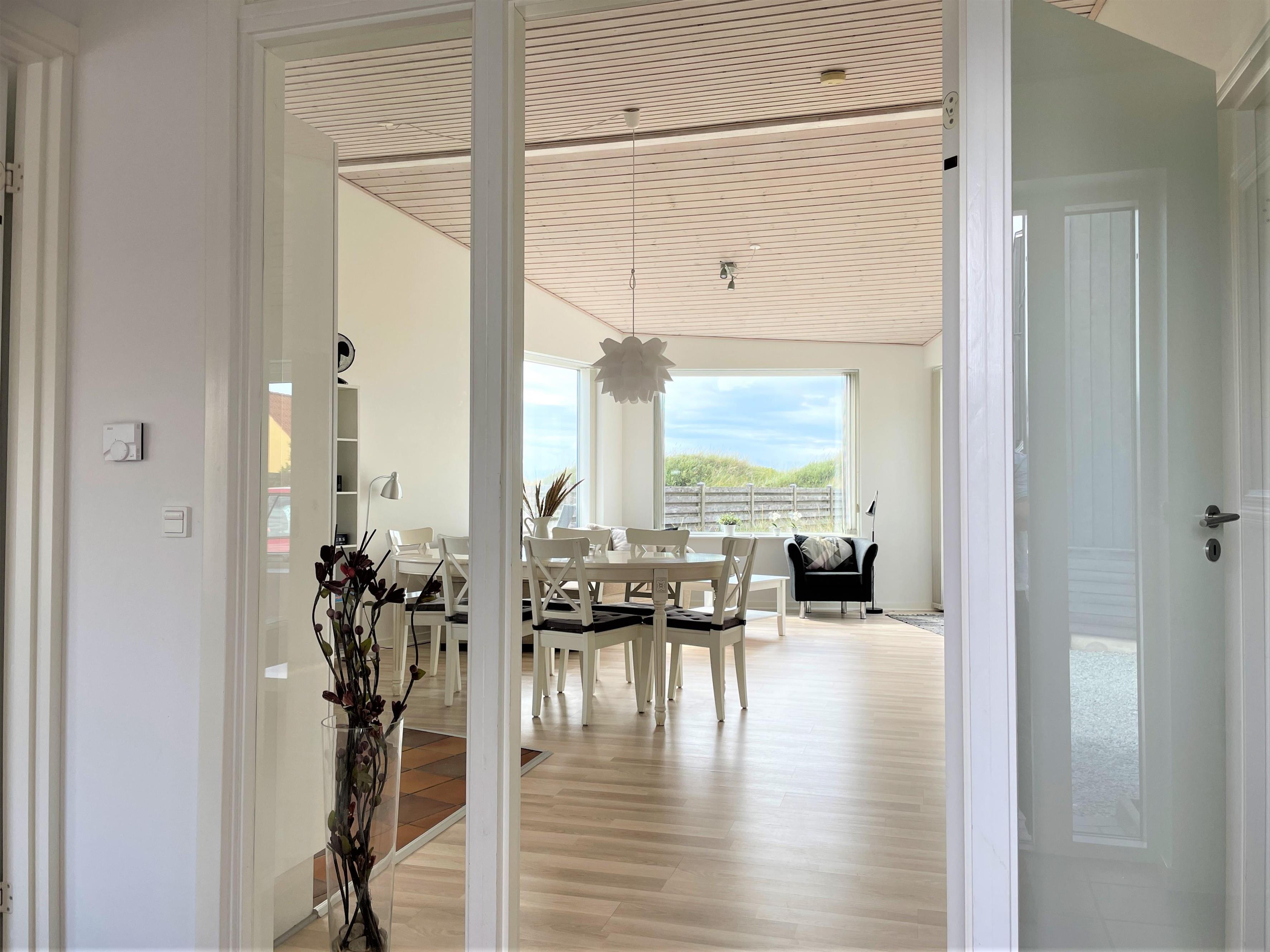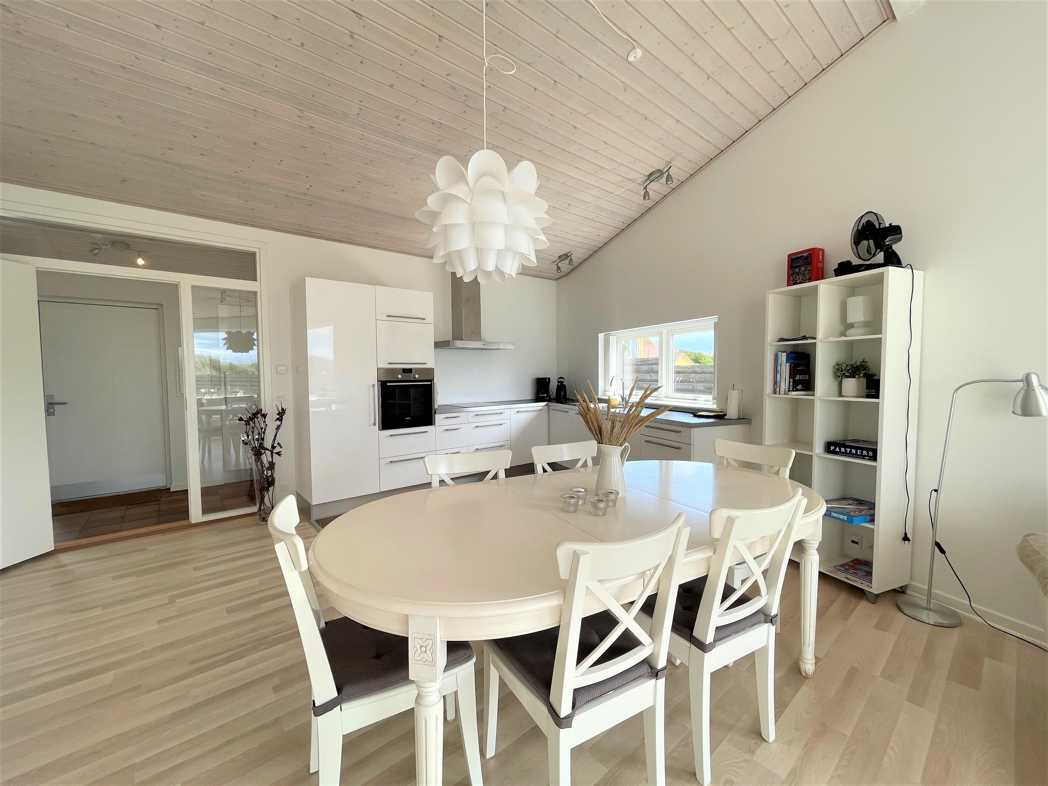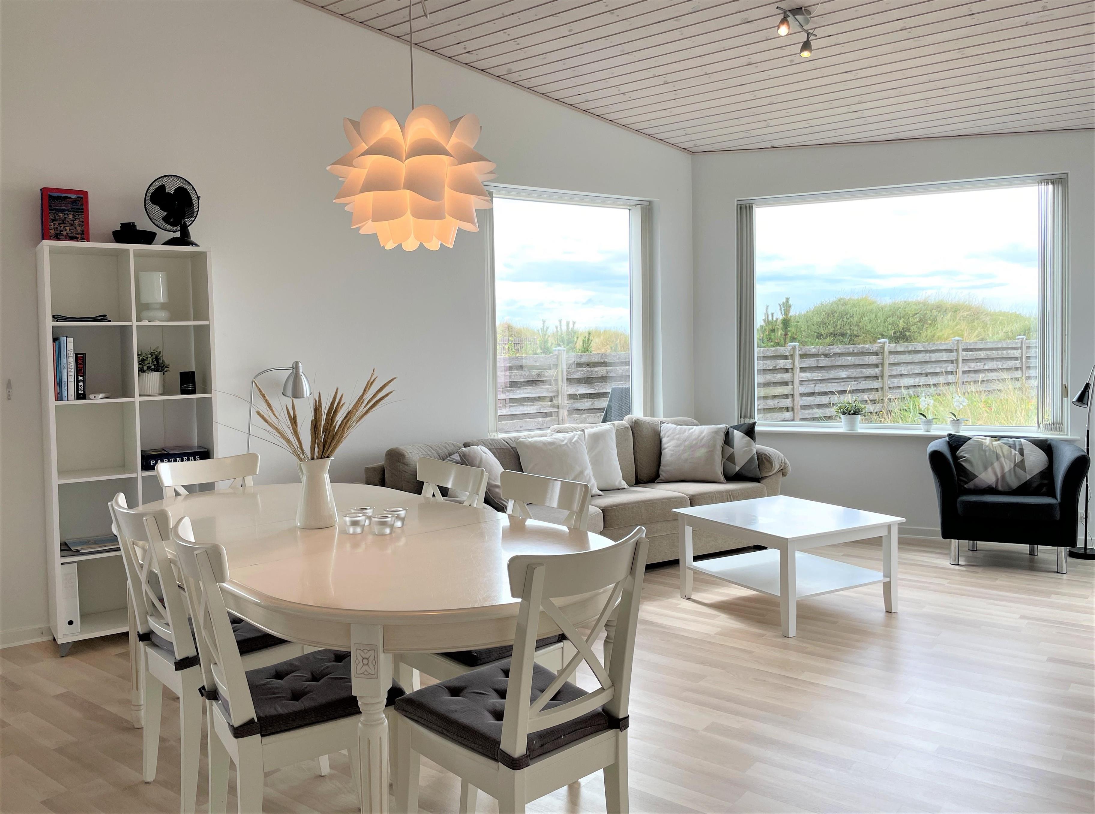 Inmitten der Dünen mit voller Meersicht, liegt dieses fantastische Strandhaus. Dies ist eines der besten Lage auf Læsø, zudem an einem der besten Sandstränden auf Læsø. Wo man wirklich den Strand und die Natur geniessen kann, und gleichzeitig nahe beim gemütlichem Hafenviertel ist. Selbst das Strandhaus beinhaltet einen schönen Eingang, grosse helle und Moderne Küche/Waschküche mit Essplatz und Sofaecke mit einem eingebautem Kamin in der Wand. Das Haus hat 3 Schlafzimmer , zwei mit Doppel und eines mit 2 Einzelbetten. Vom Schlafzimmer mit Doppelbett und vom Wohnzimmer, gibt es einen Ausgang zur Terasse mit Panoram-Meersicht. Via Ausgang steht man direkt inmitten von Strandgräser und Heckenrosen.