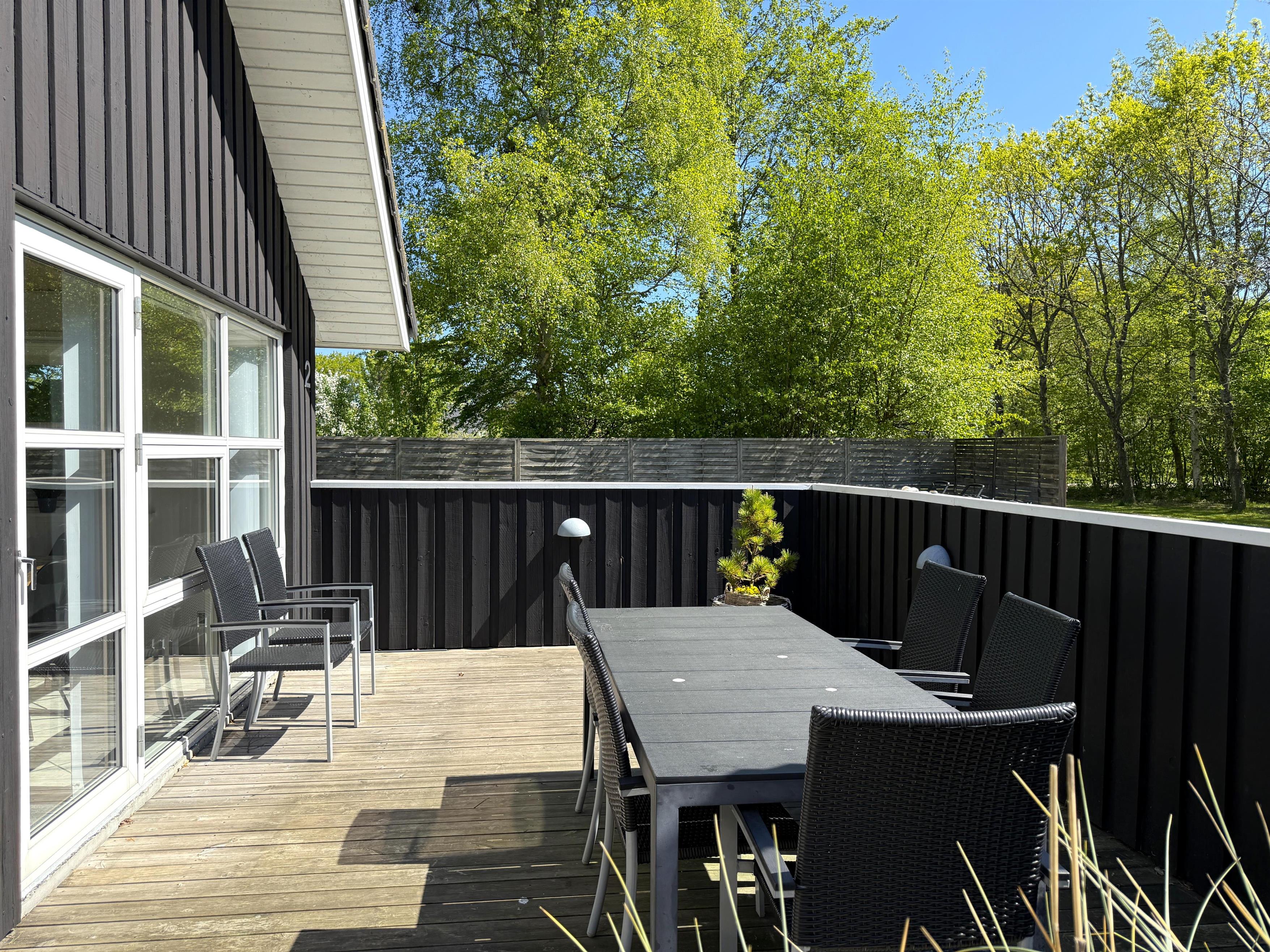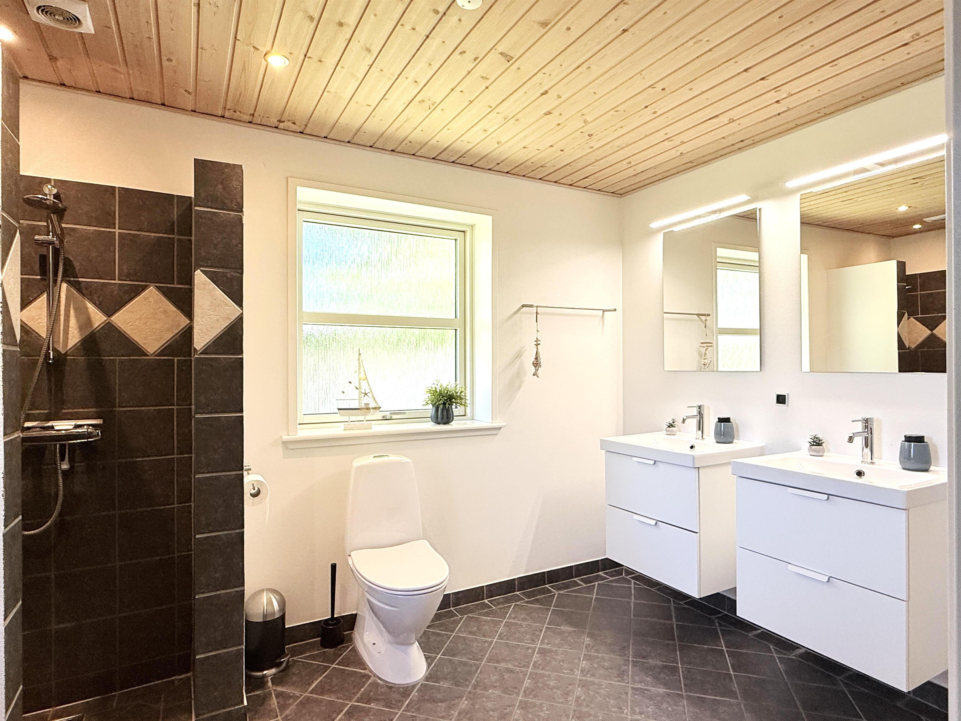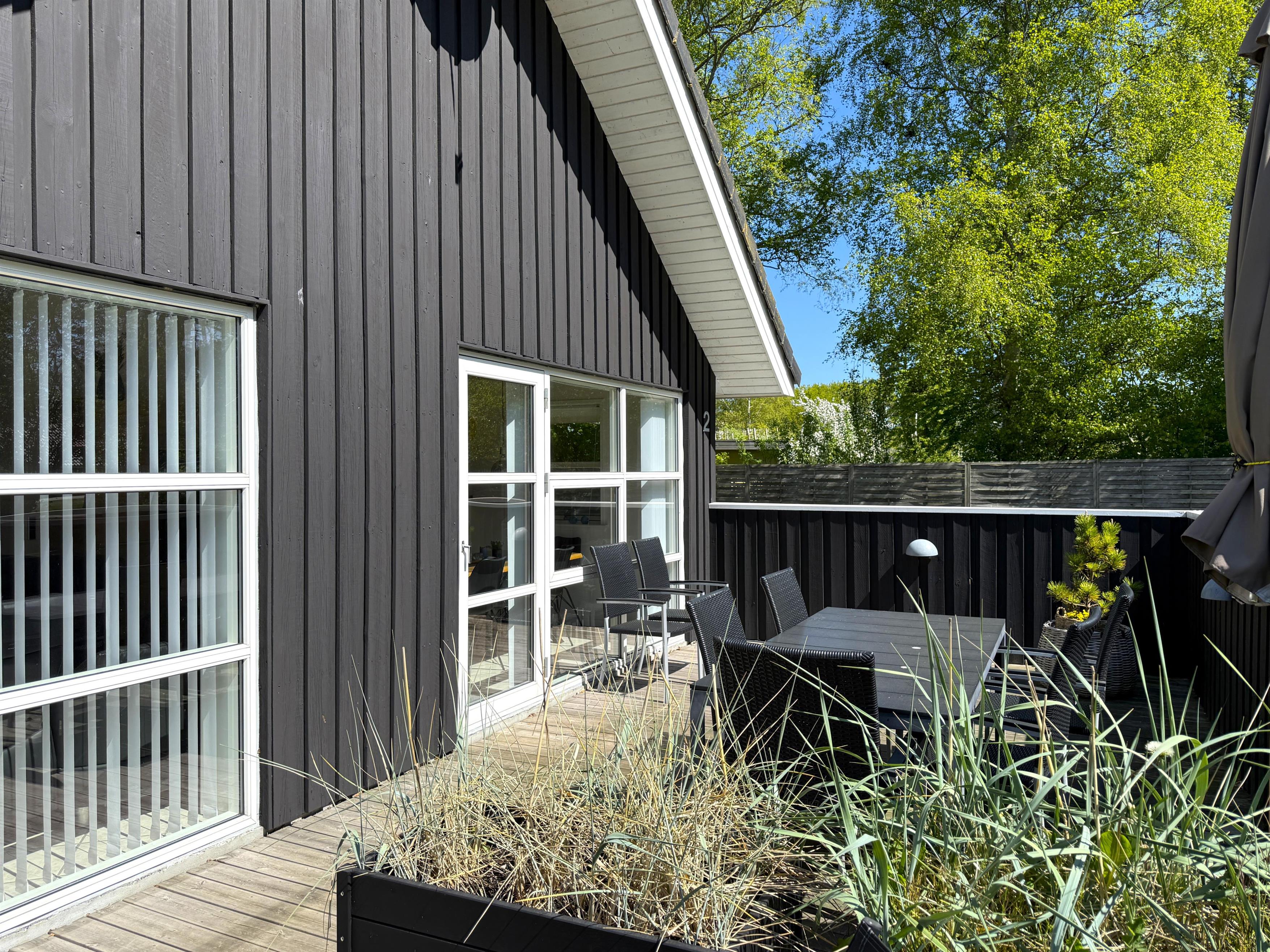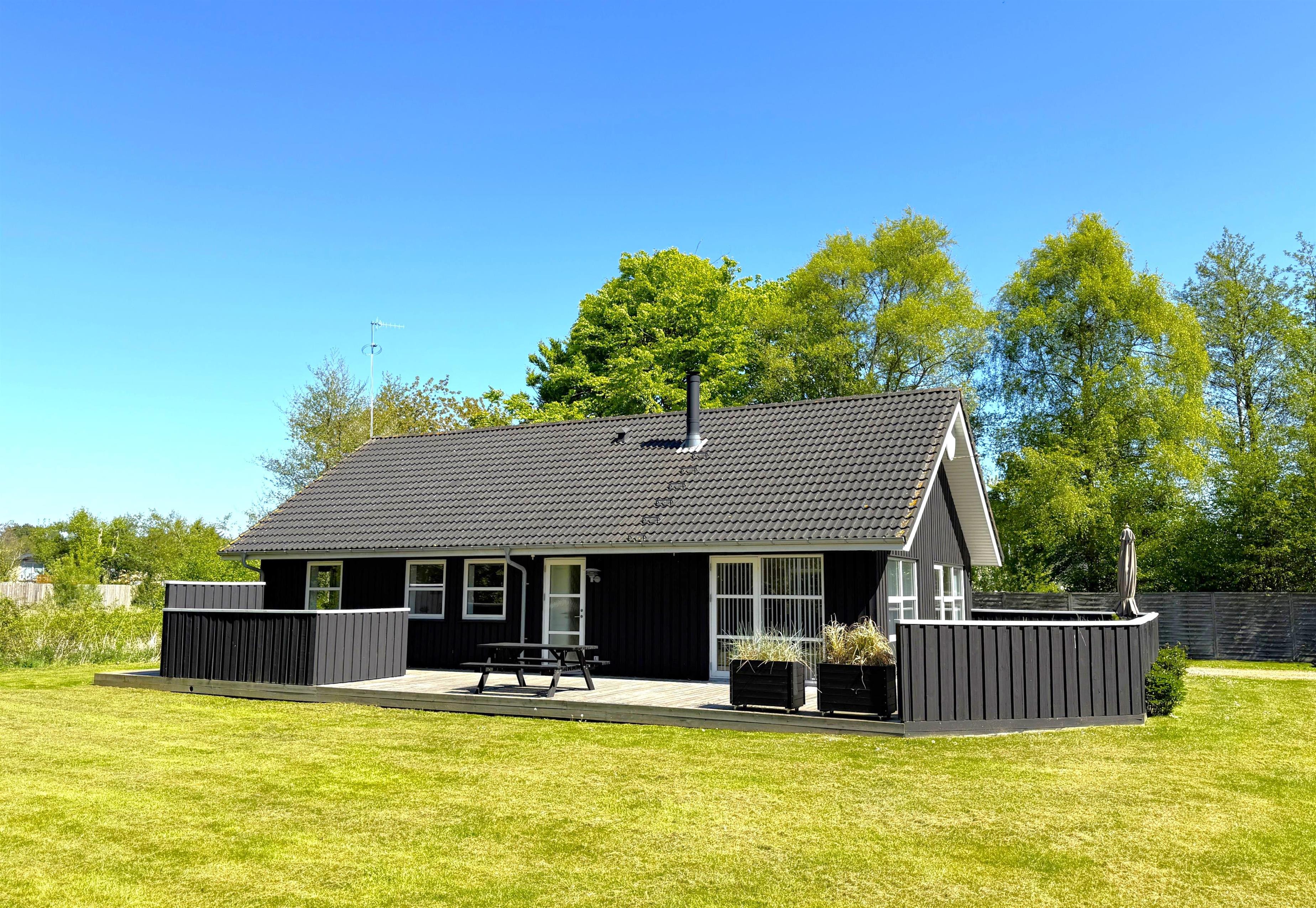 Das Haus verfügt über eine schöne, moderne Wohnküche mit Essbereich und gemütlicher Sofaecke, die auch für die ganze Familie ausreichend Platz bietet. Es gibt drei komfortable Schlafzimmer, zwei davon mit Doppelbetten und eines mit zwei Einzelbetten. Ausreichend Stauraum und ein geräumiger Dachboden mit zwei zusätzlichen Schlafplätzen sind ebenfalls vorhanden. Zwei schöne, große Badezimmer mit Duschen und ein praktischer Hauswirtschaftsraum mit Waschmaschine und Trockner runden das Angebot ab. Angrenzend an das größte Badezimmer befindet sich eine Sauna. Seit dem 1. März steht außerdem ein Naturbad zur Verfügung. Auf den großen Holzterrassen laden bequeme Sonnenliegen und Gartenmöbel zum Verweilen ein und bieten beste Voraussetzungen für gemütliche Grillabende.