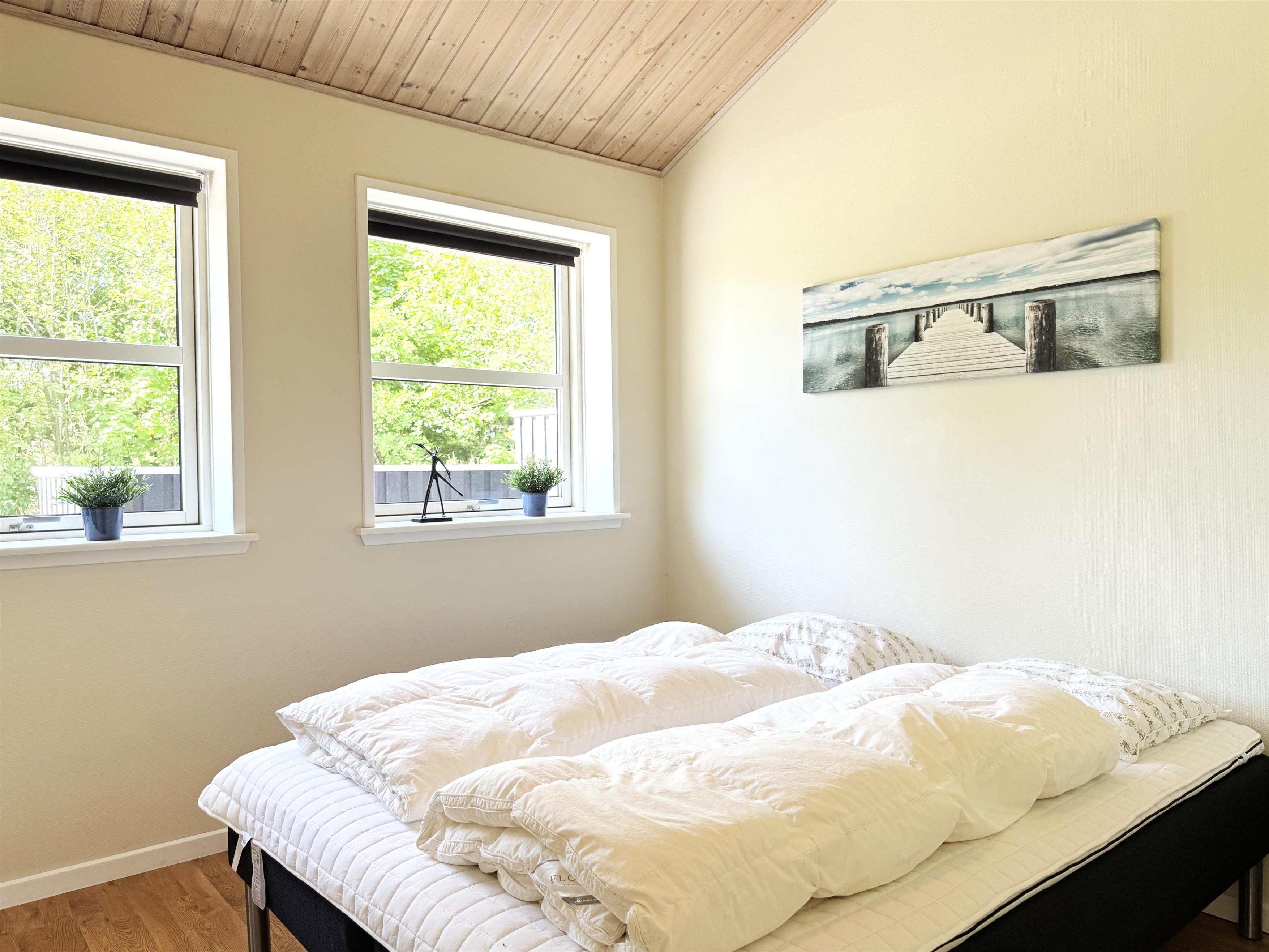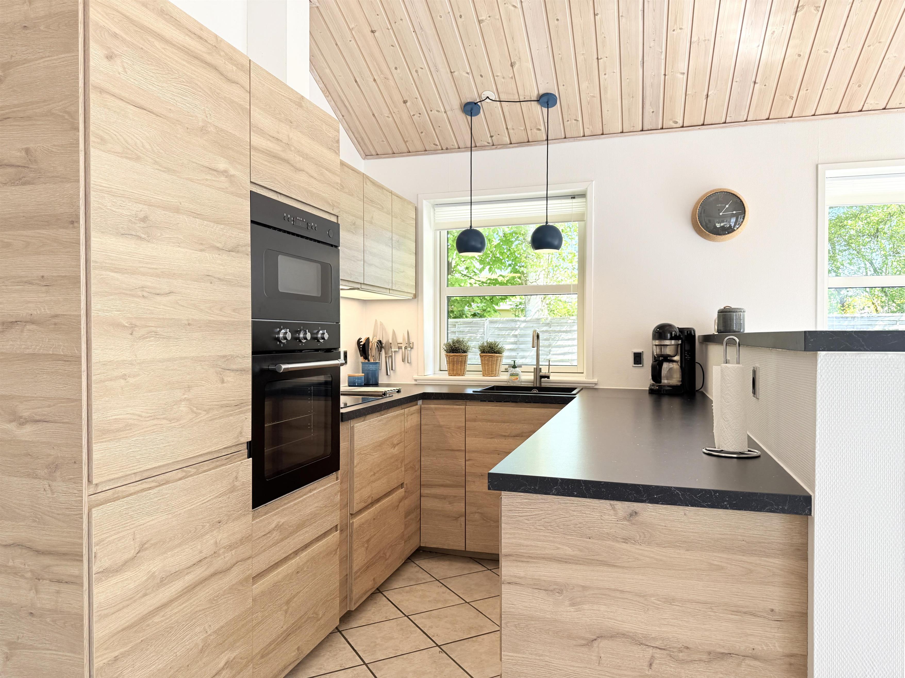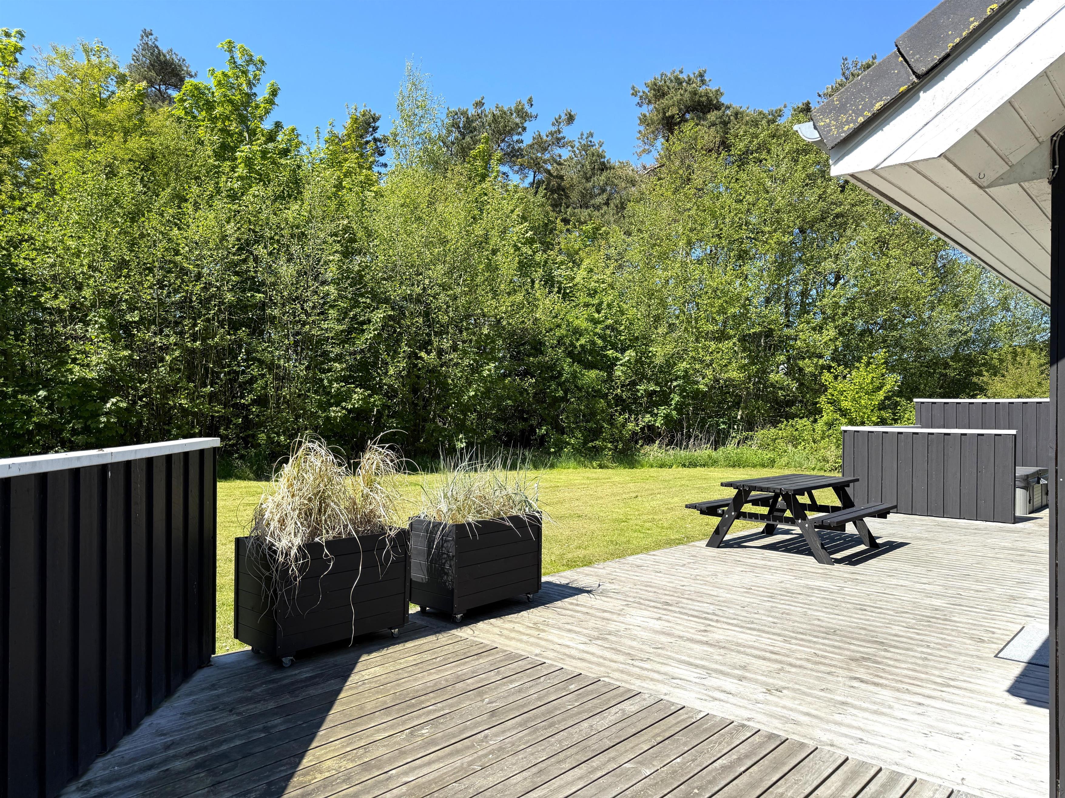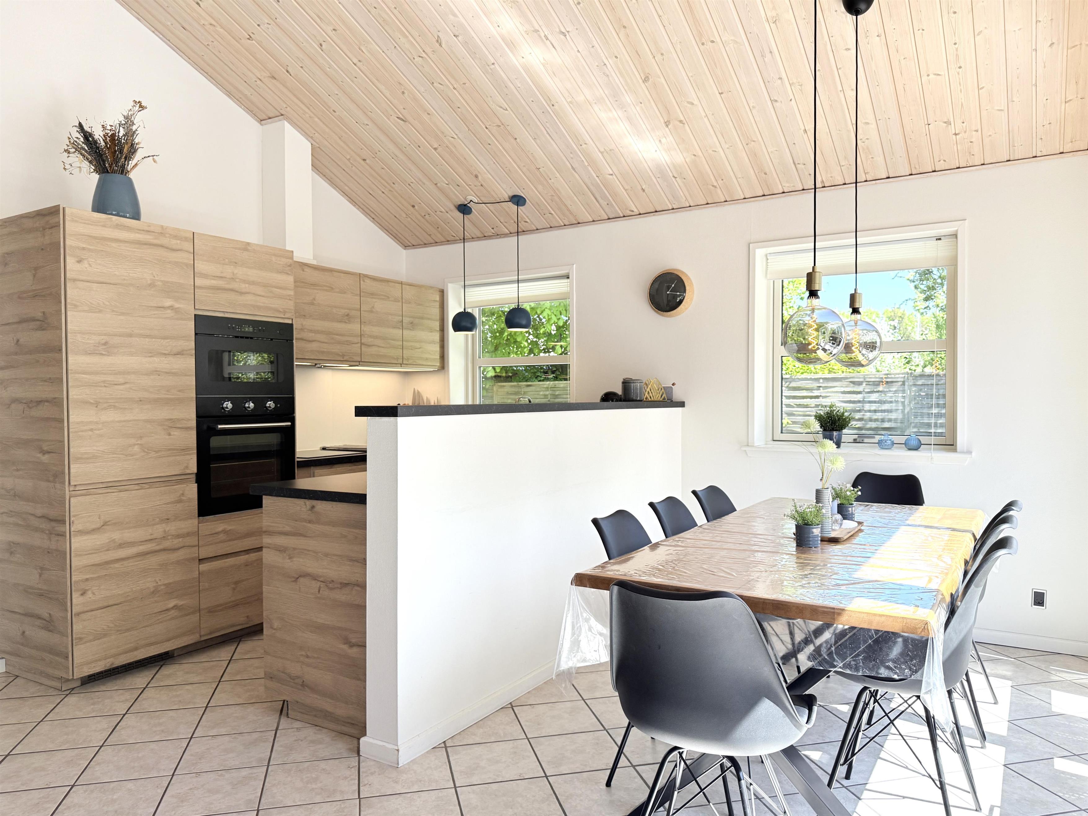 Das Haus verfügt über eine schöne, moderne Wohnküche mit Essbereich und gemütlicher Sofaecke, die auch für die ganze Familie ausreichend Platz bietet. Es gibt drei komfortable Schlafzimmer, zwei davon mit Doppelbetten und eines mit zwei Einzelbetten. Ausreichend Stauraum und ein geräumiger Dachboden mit zwei zusätzlichen Schlafplätzen sind ebenfalls vorhanden. Zwei schöne, große Badezimmer mit Duschen und ein praktischer Hauswirtschaftsraum mit Waschmaschine und Trockner runden das Angebot ab. Angrenzend an das größte Badezimmer befindet sich eine Sauna. Seit dem 1. März steht außerdem ein Naturbad zur Verfügung. Auf den großen Holzterrassen laden bequeme Sonnenliegen und Gartenmöbel zum Verweilen ein und bieten beste Voraussetzungen für gemütliche Grillabende.