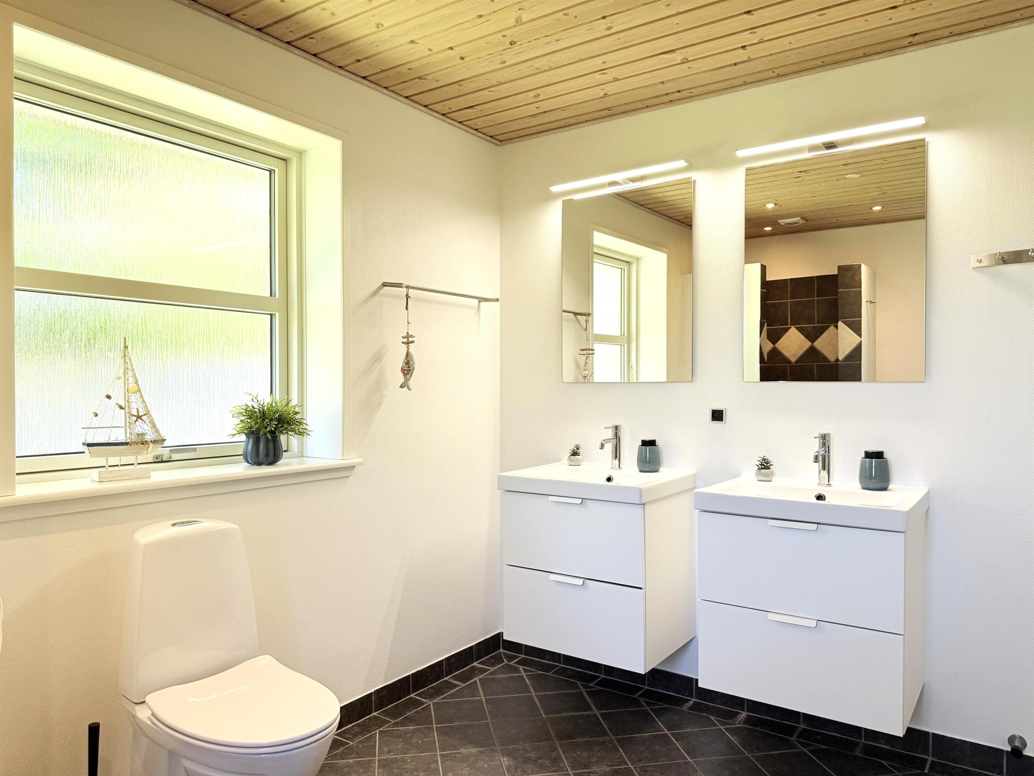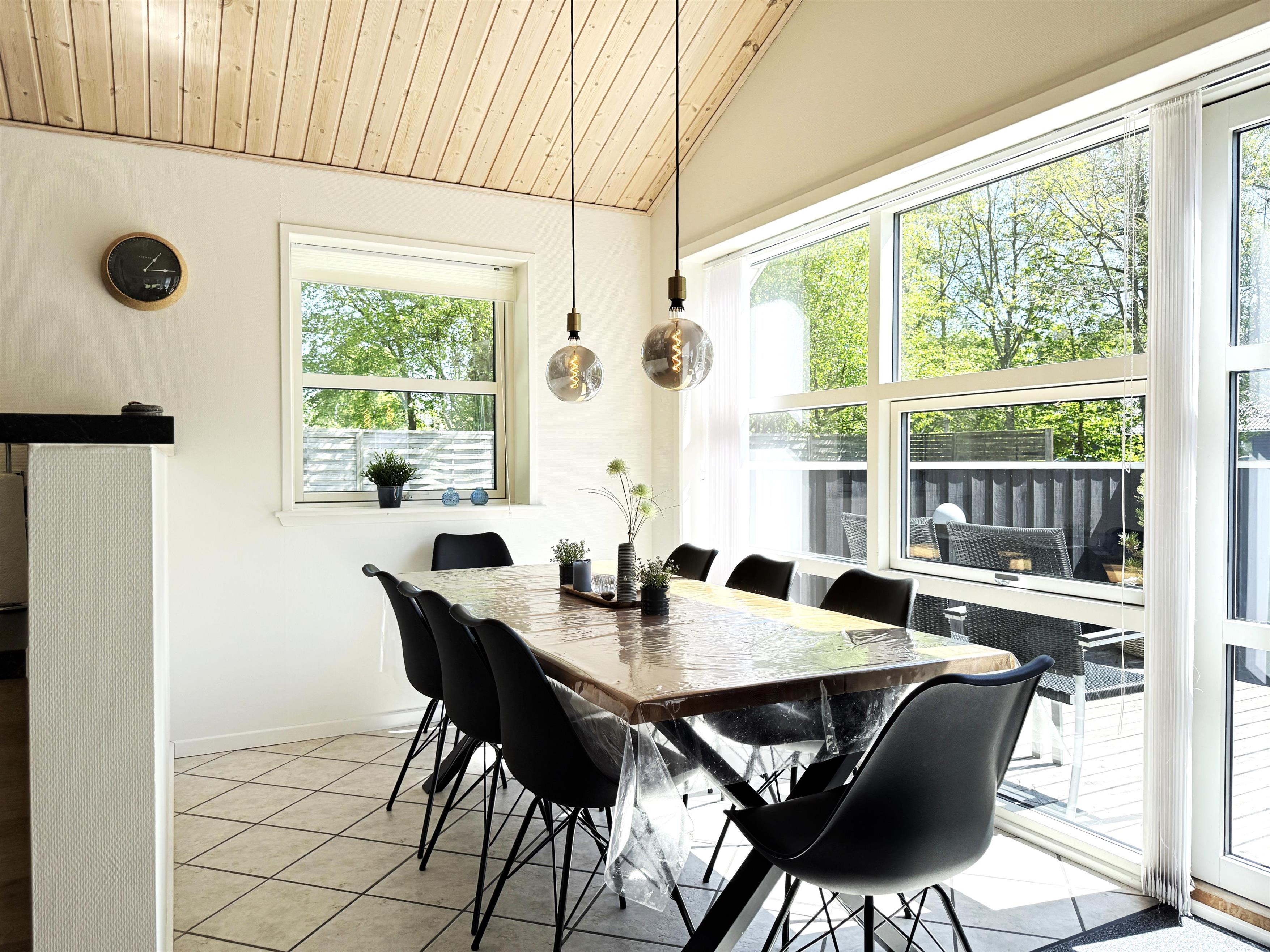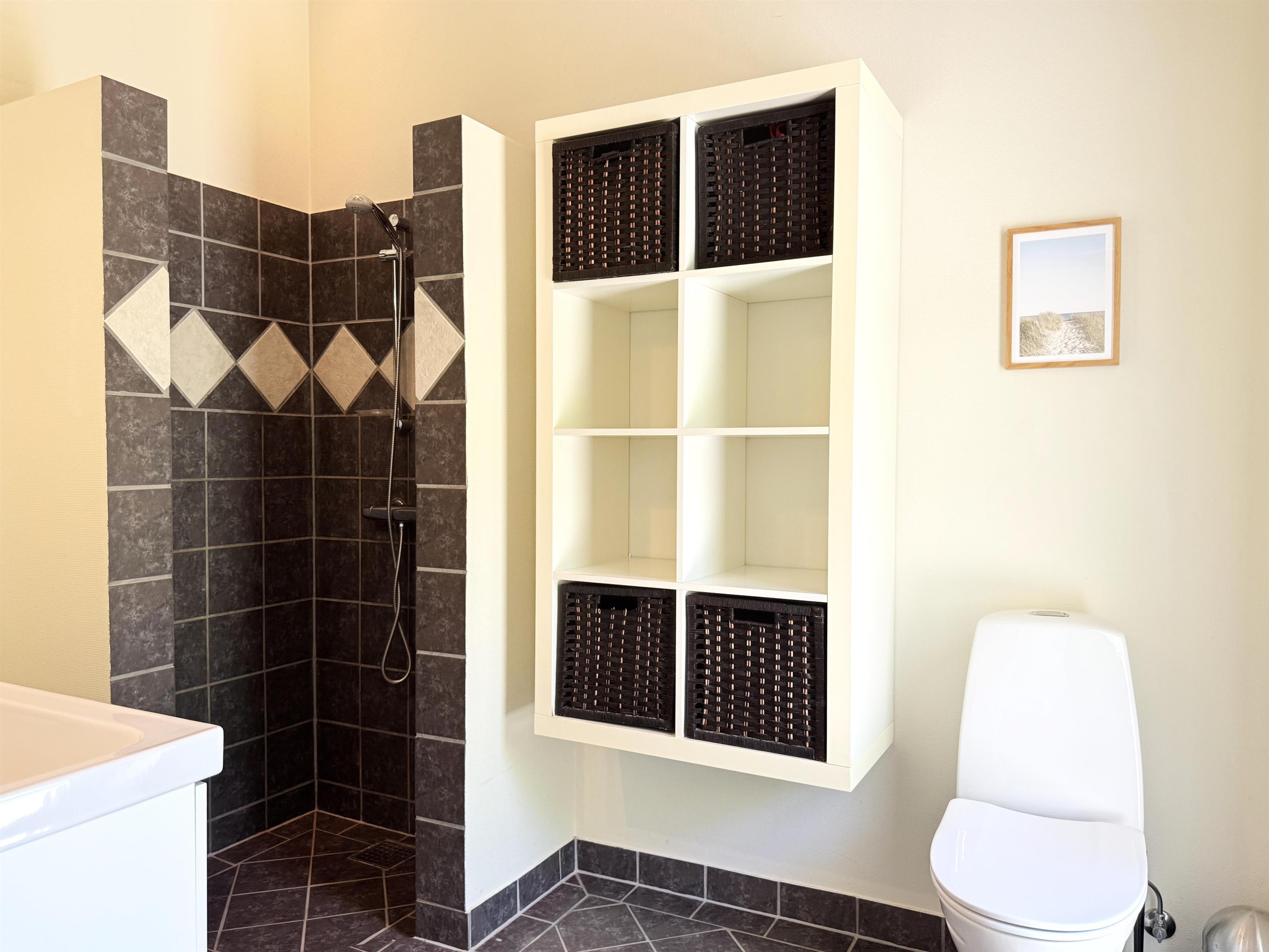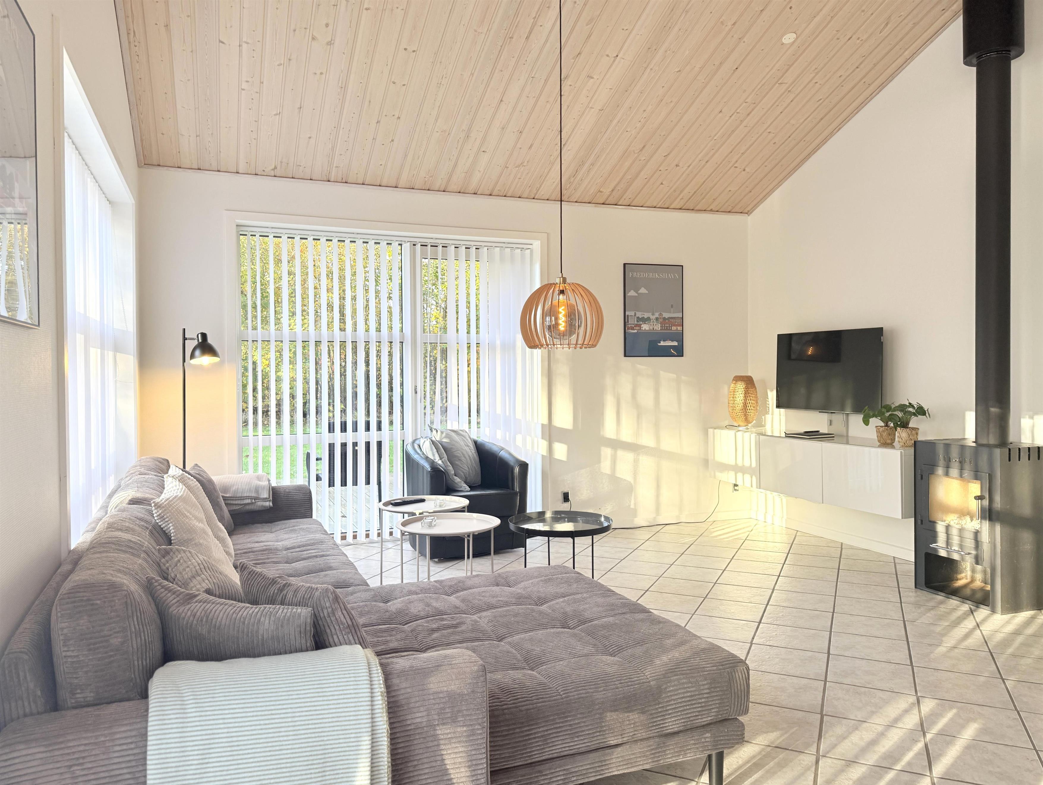 Das Haus verfügt über eine schöne, moderne Wohnküche mit Essbereich und gemütlicher Sofaecke, die auch für die ganze Familie ausreichend Platz bietet. Es gibt drei komfortable Schlafzimmer, zwei davon mit Doppelbetten und eines mit zwei Einzelbetten. Ausreichend Stauraum und ein geräumiger Dachboden mit zwei zusätzlichen Schlafplätzen sind ebenfalls vorhanden. Zwei schöne, große Badezimmer mit Duschen und ein praktischer Hauswirtschaftsraum mit Waschmaschine und Trockner runden das Angebot ab. Angrenzend an das größte Badezimmer befindet sich eine Sauna. Seit dem 1. März steht außerdem ein Naturbad zur Verfügung. Auf den großen Holzterrassen laden bequeme Sonnenliegen und Gartenmöbel zum Verweilen ein und bieten beste Voraussetzungen für gemütliche Grillabende.