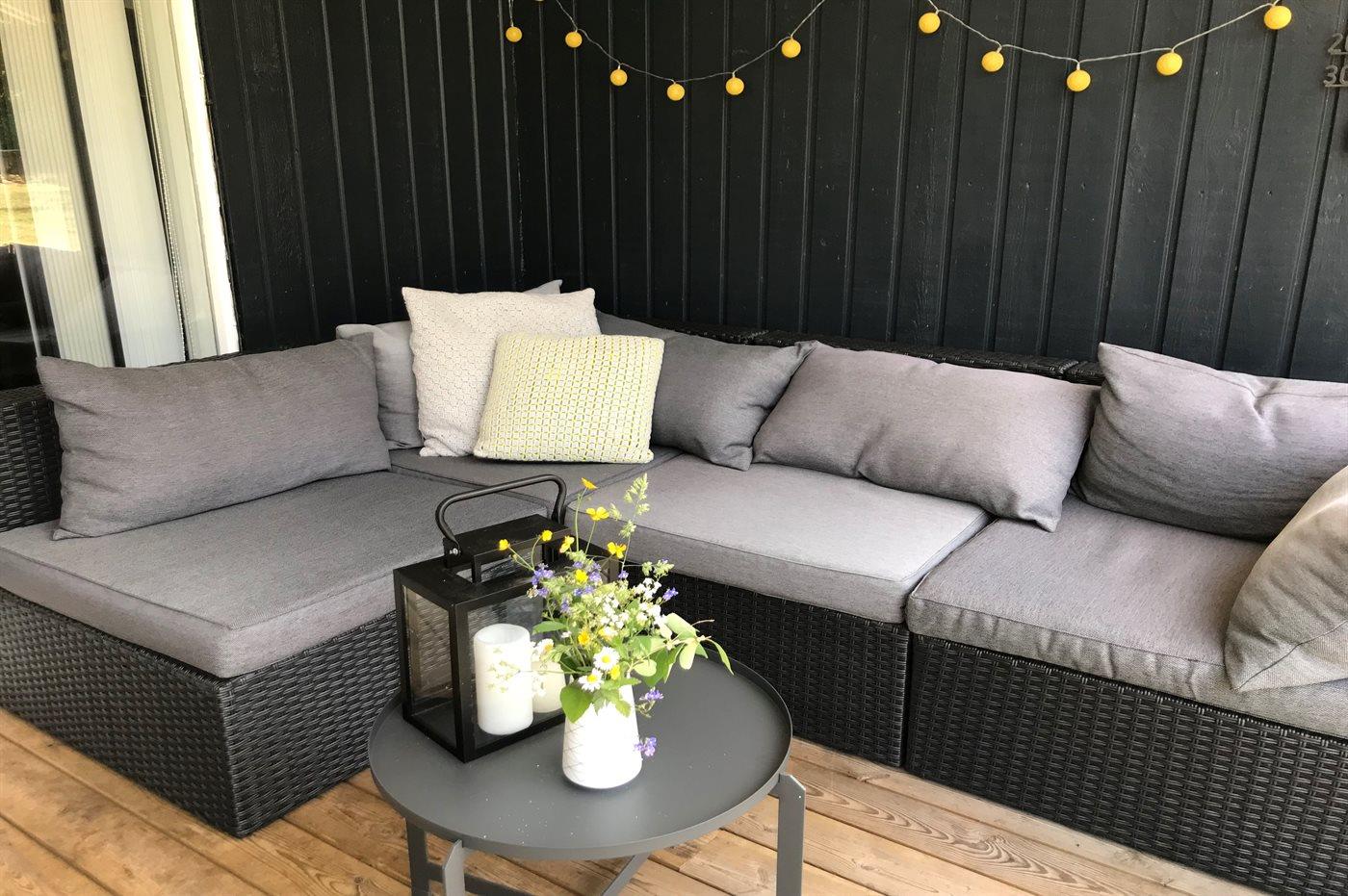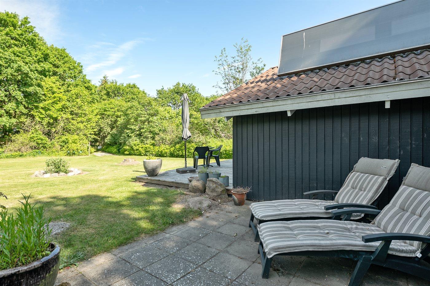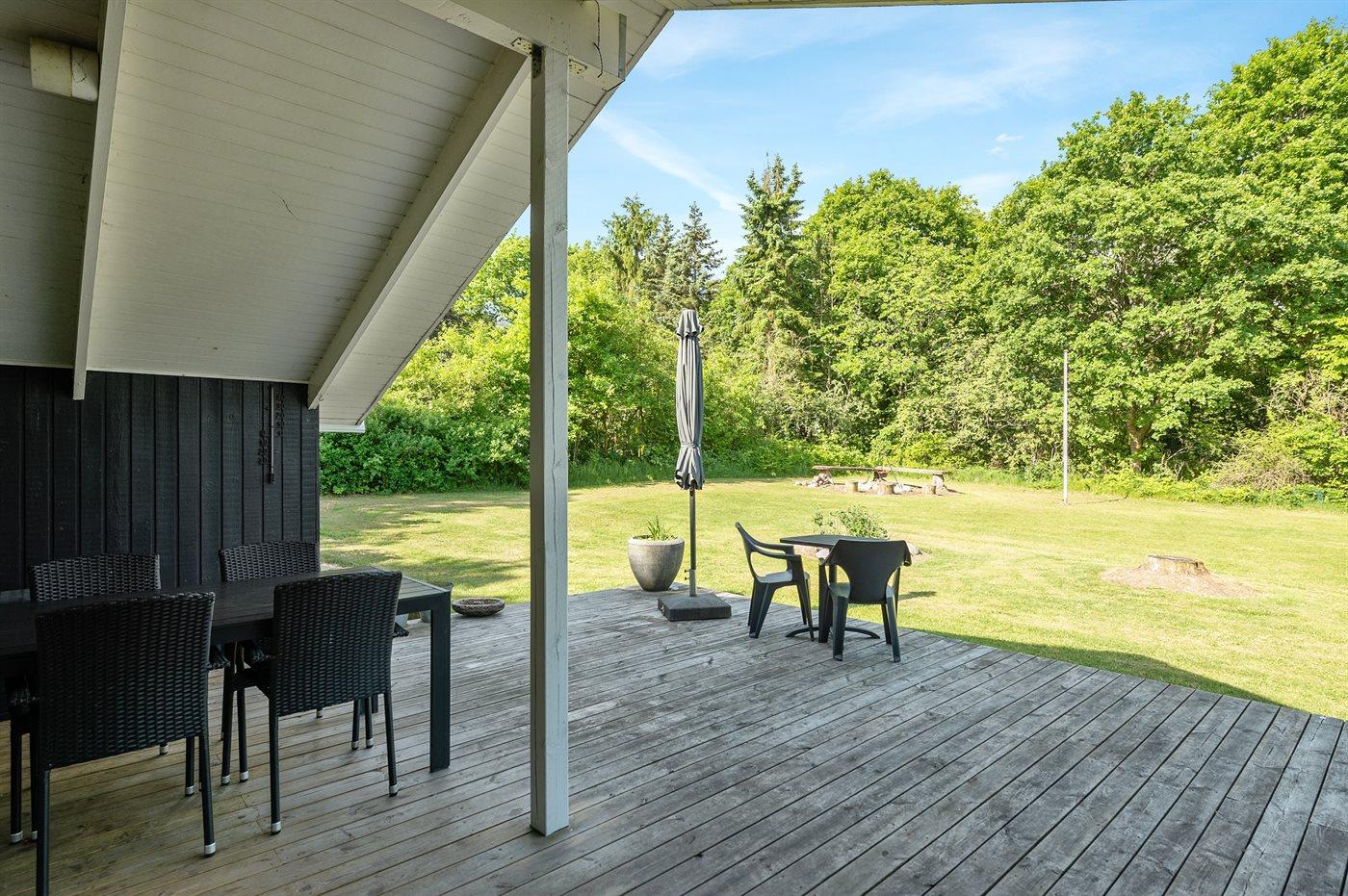 The holiday home is situated on a 1060 m² garden site. The site is fenced in. Situated 56500 m from the sea. Situated 100 m from lake. Nearest shop is 4000 m away. You will find a golf course in a distance of 10000 m. A 10 m² terrace belong to the holiday home. Furthermore the house has a 16 m² covered terrace. Situated 200 m from a playground.Fire place. Parking place by the holiday home.