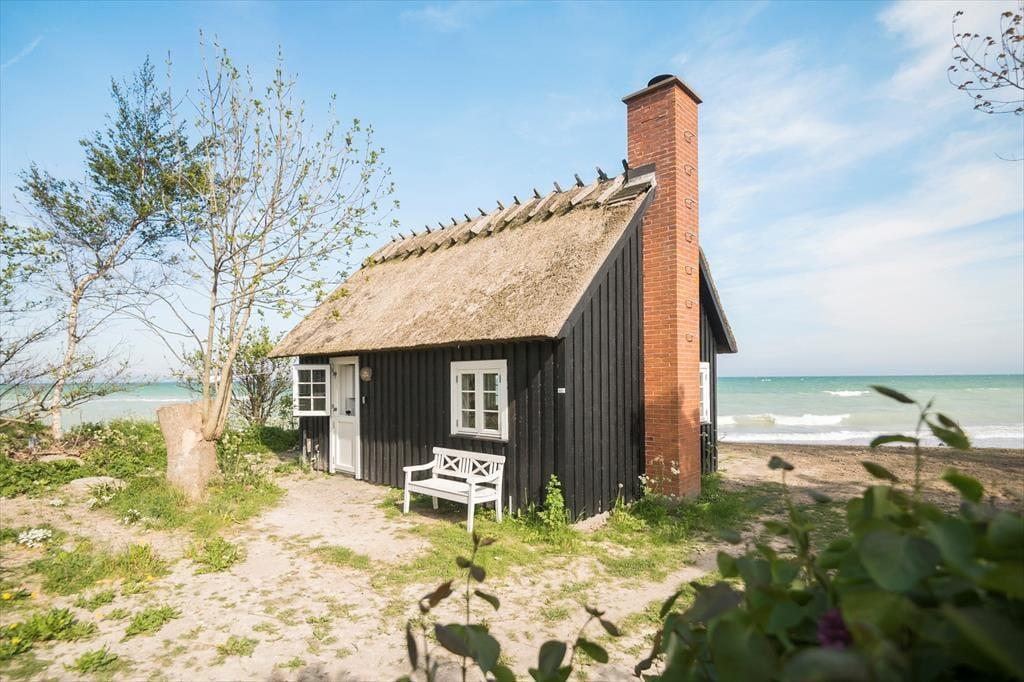 Kleines Holzhaus mit Reetdach, fantastisch gelegen direkt am Strand. Das Ferienhaus liegt auf Westmøn nah am Dorf Fanefjord, das etwa 7 Kilometer entfernt ist. Dort gibt es Einkaufsmöglichkeiten.