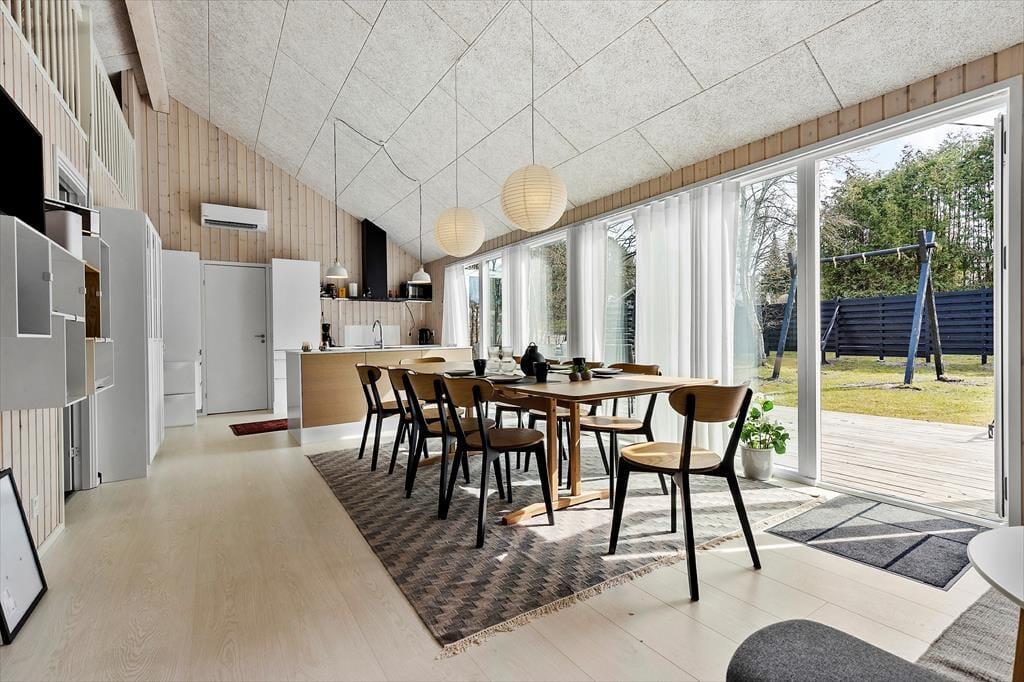 Freue dich bereits jetzt auf dieses moderne Ferienhaus aus dem Jahr 2021, in dem Komfort und Stil Hand in Hand gehen. Die 102 m² große Wohnfläche umfasst vier gemütliche Schlafräume, zwei Badezimmer und einen hellen Küchen-, Wohn- und Essbereich, in dem du mit deinen Lieben die Mahlzeiten zubereiten und genießen kannst und viele gemütliche und entspannte Stunden verbringst. Die offene Wohnlösung lässt den Aufenthaltsbereich angenehm geräumig wirken und bietet beste Voraussetzungen für viele gemeinsame Momente. Der Hängeboden verspricht den jüngsten Urlaubern zusätzlichen Platz zum Spielen und Relaxen. Euer vierbeiniges Familienmitglied ist in diesem Ferienhaus ebenfalls herzlich willkommen.
