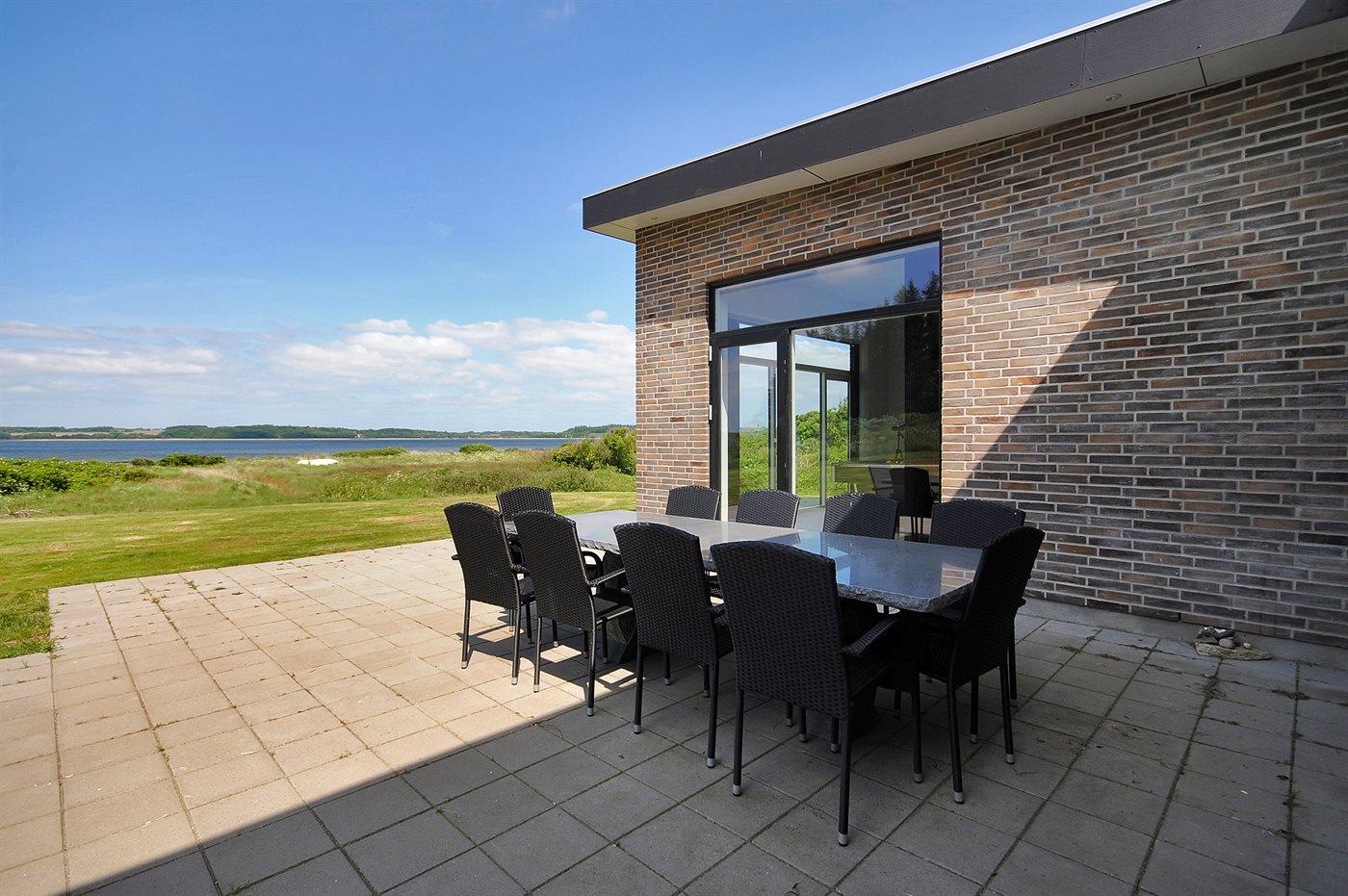 The holiday home is situated on a 2600 m² natural site. Situated 50 m from inlet. Nearest shop is 5000 m away. You will find a golf course in a distance of 6000 m. A 70 m² terrace belong to the holiday home. Sandbox. Carport is at your disposal. Parking place by the holiday home.
