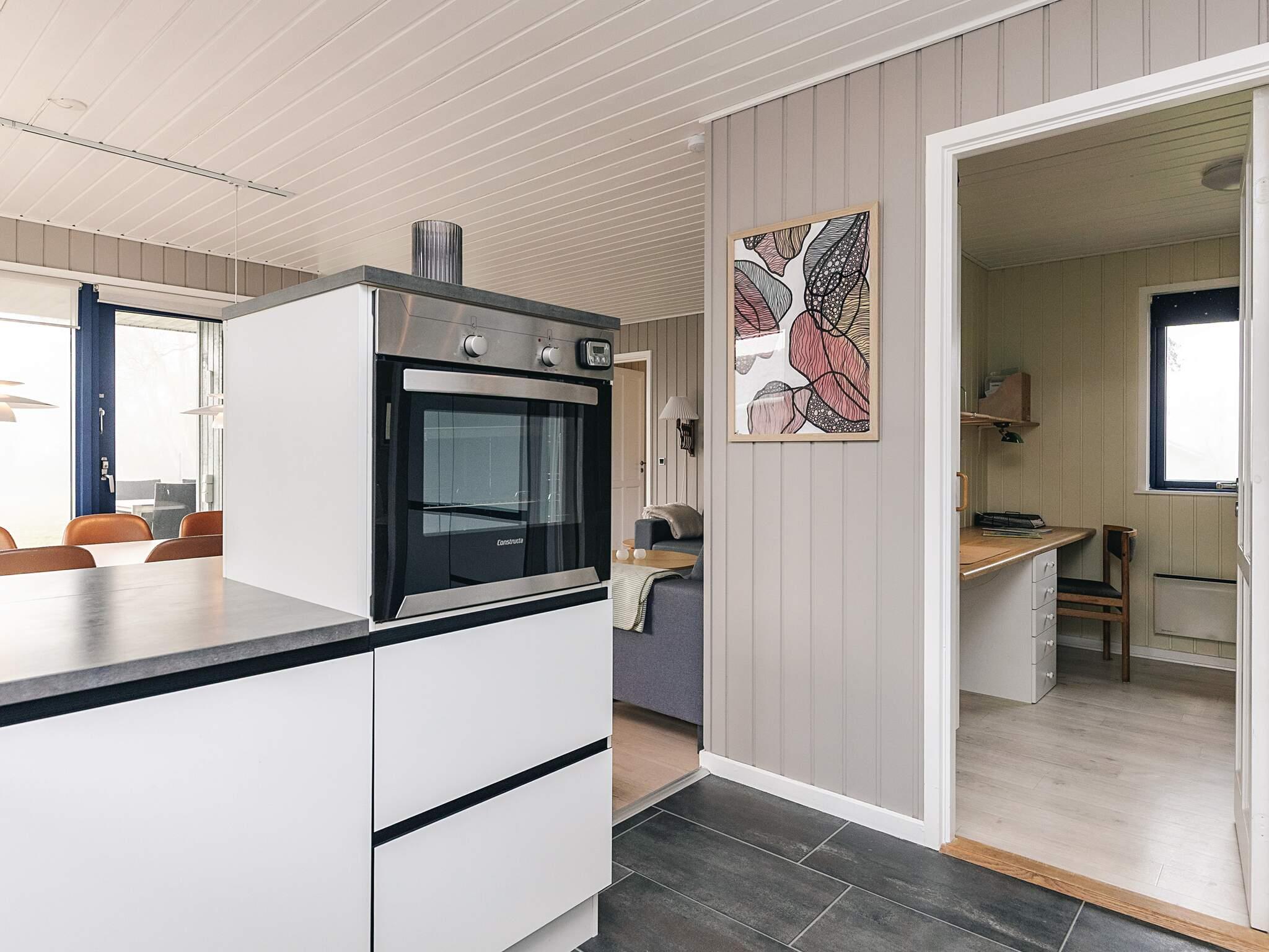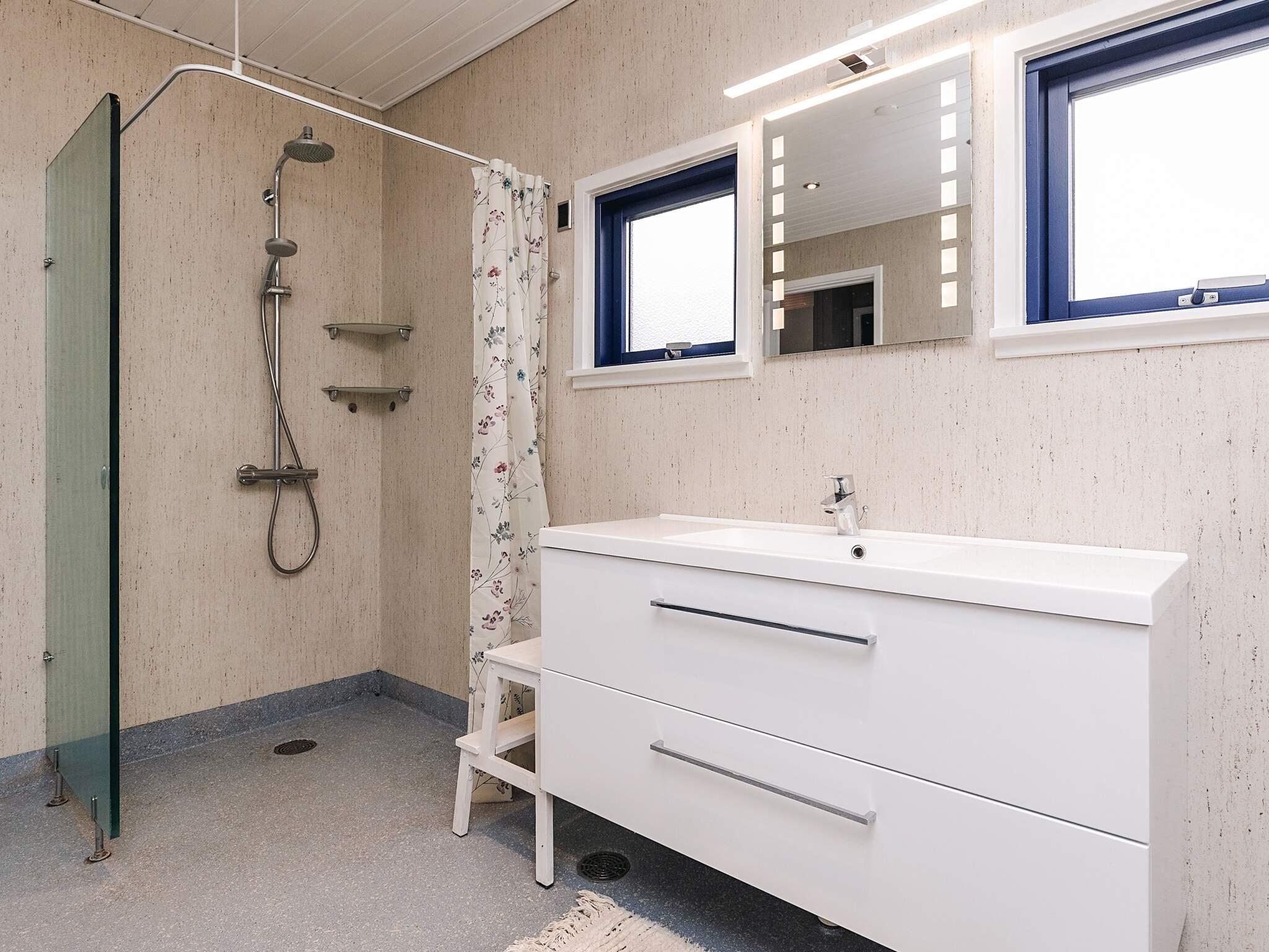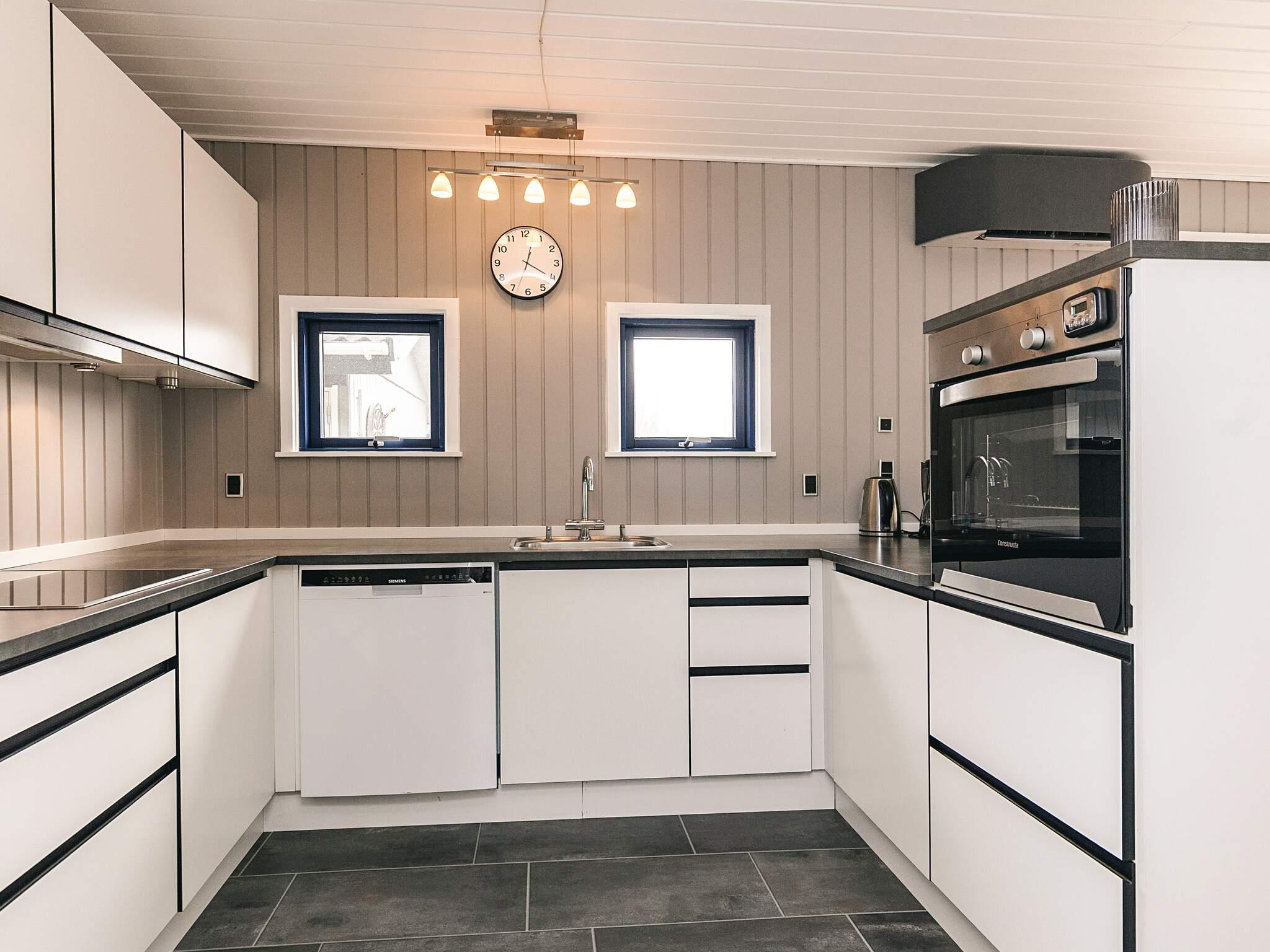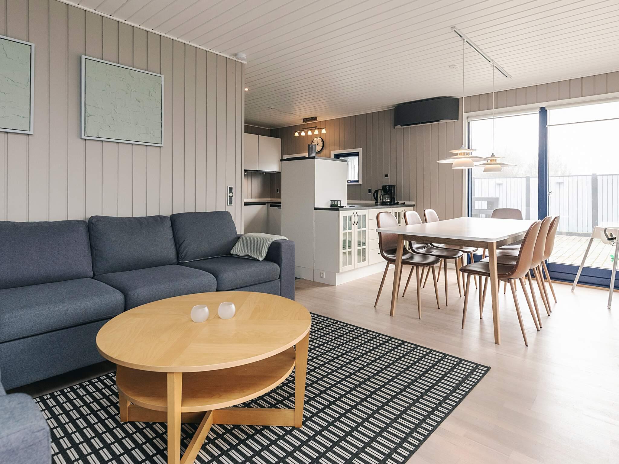 Das Ferienhaus verfügt über drei Schlafzimmer, eines mit Doppelbett, eines mit zwei Einzelbetten und das letzte Zimmer mit einem Etagenbett und einem Doppelbett im Anbau. Die offene Küche ist mit Kaffeemaschine, Induktionsherd, separatem Backofen, Kühlschrank und Geschirrspüler ausgestattet. Im Schuppen gegenüber der Eingangstür befindet sich ein 60-Liter-Gefrierschrank. Das Ferienhaus verfügt über zwei Badezimmer, eines mit Toilette und Waschbecken, das andere mit Toilette, Waschbecken, Dusche, Waschmaschine und Trockner. Das Wohnzimmer verfügt über einen Fernseher mit Chromecast und kostenlosem Internet sowie einen DVD-Player. Vom Wohnzimmer aus gelangt man auf eine halbüberdachte Terrasse und einen großen Garten.