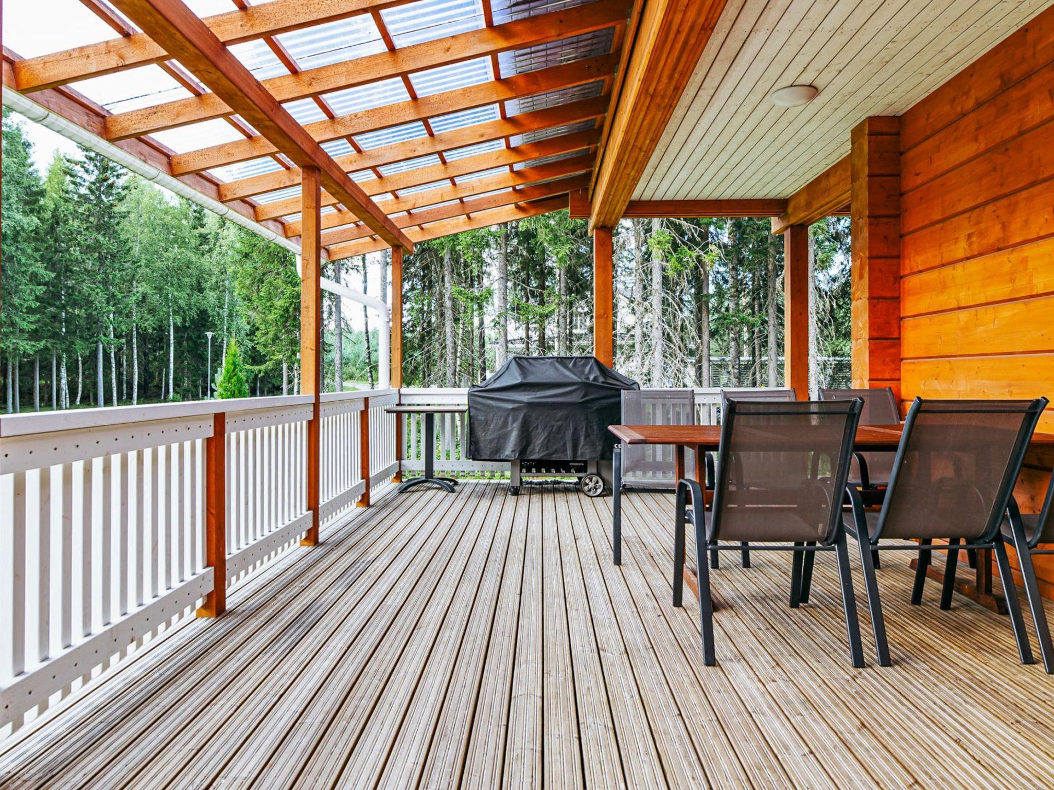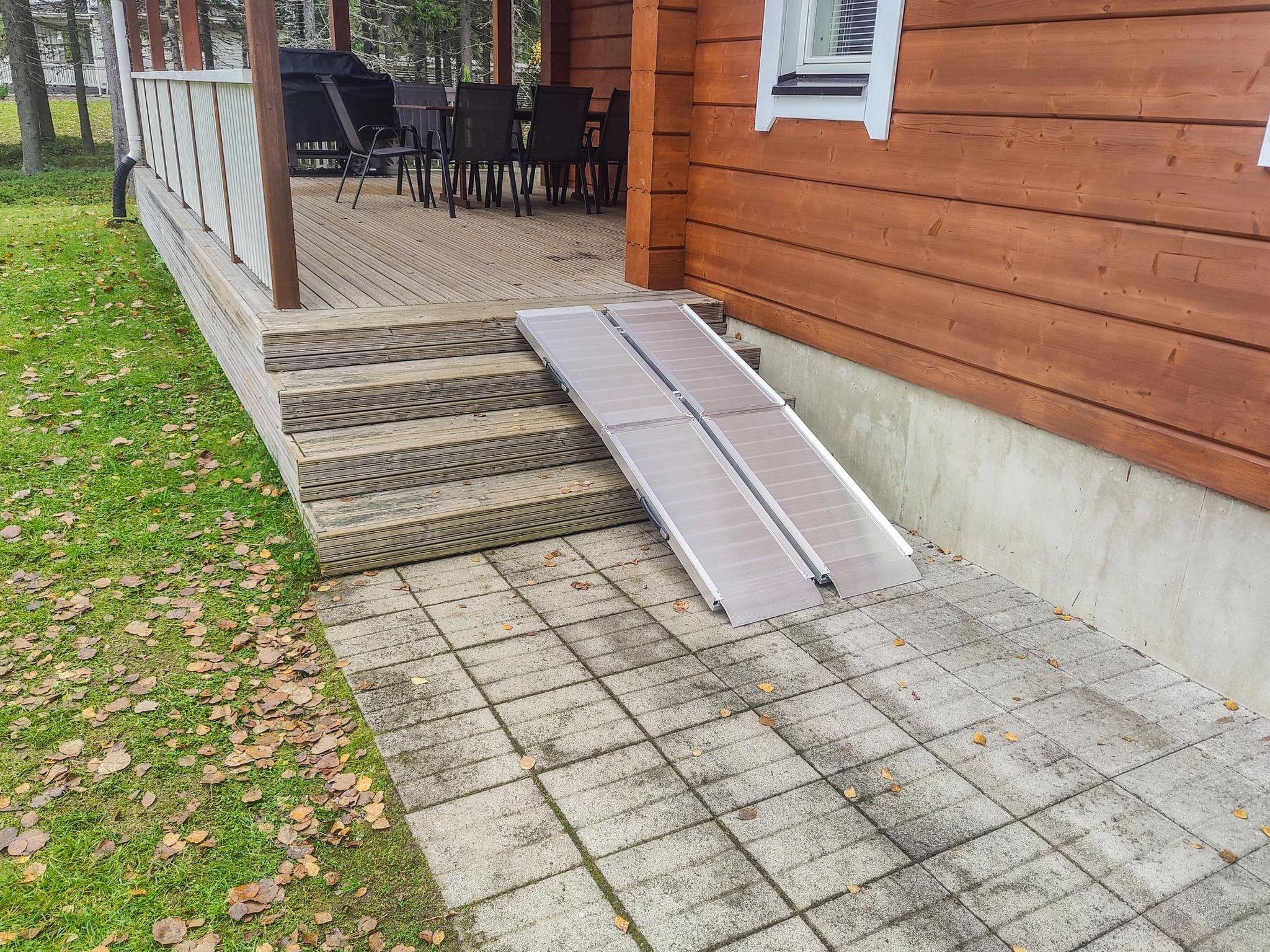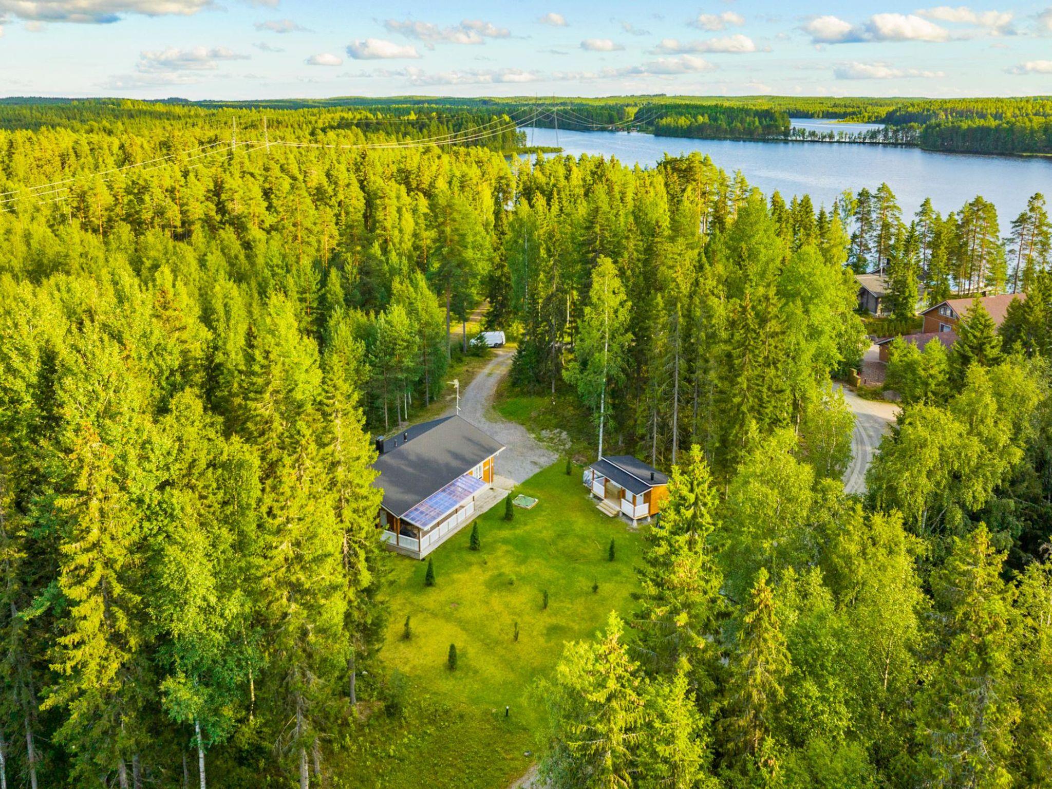 Log villa 2012, kitchen-living room with sofa bed, bedroom with double bed, bedroom with 2 beds, hall, bathroom, sauna, utility room, covered terraces.