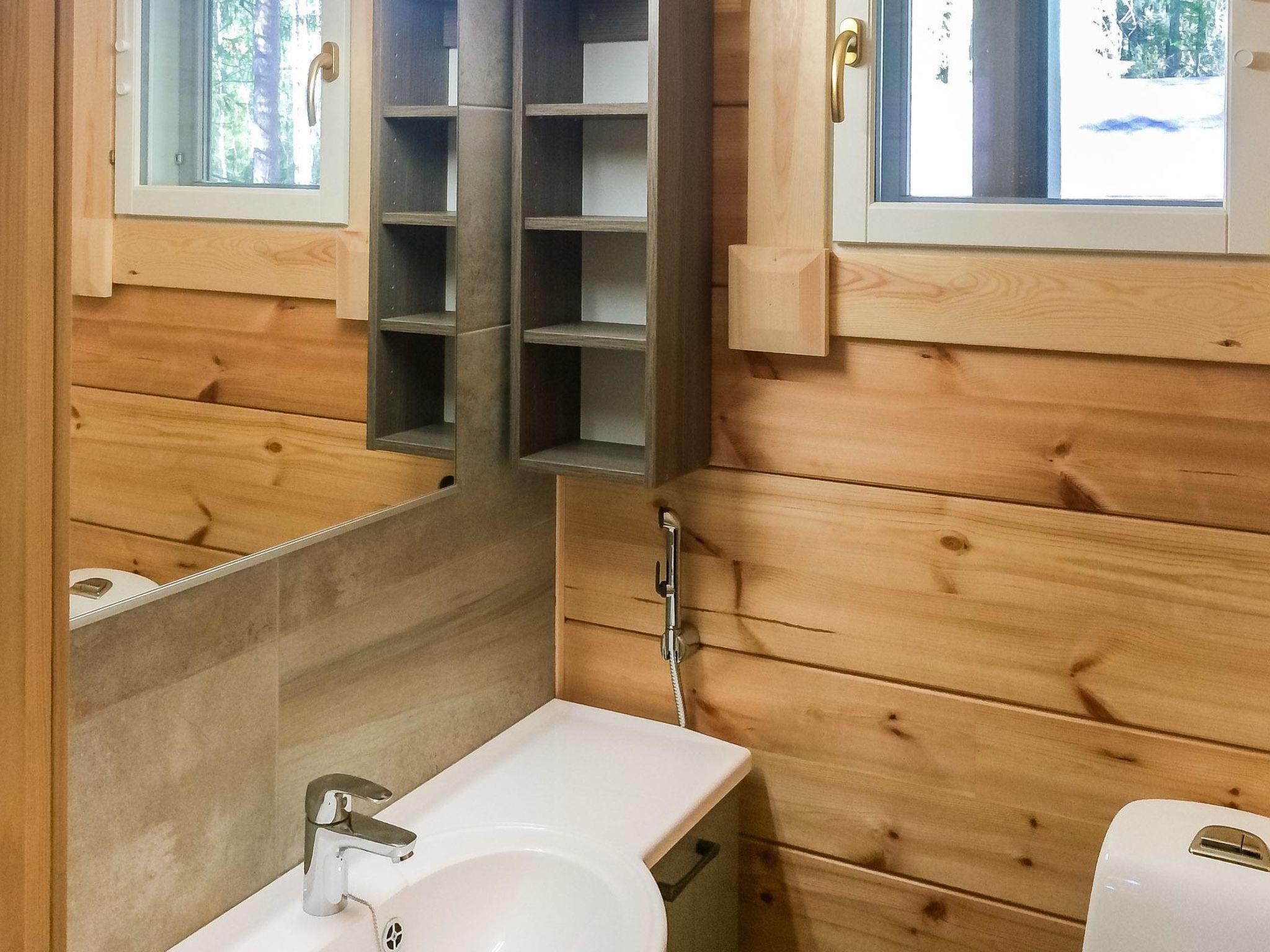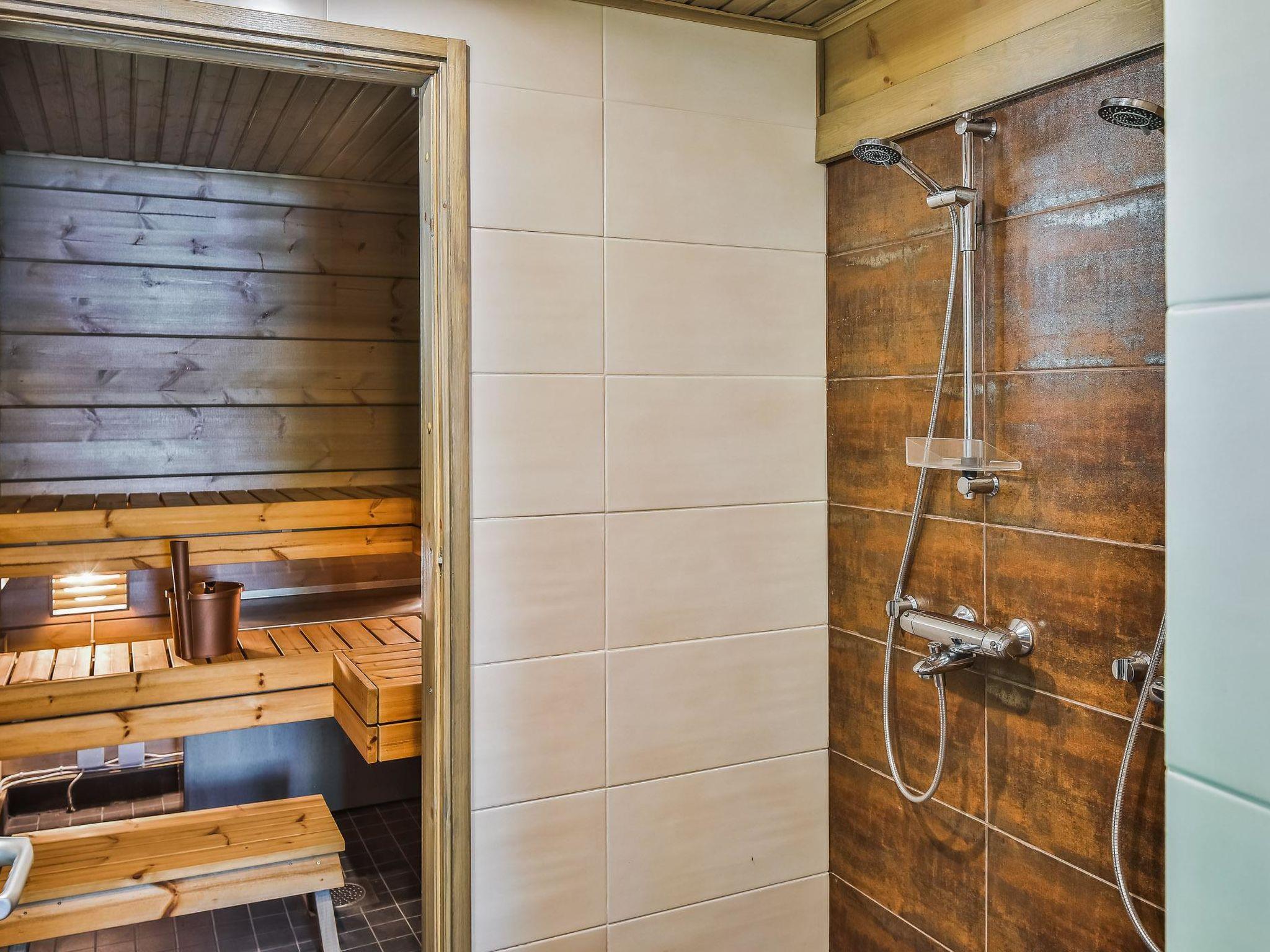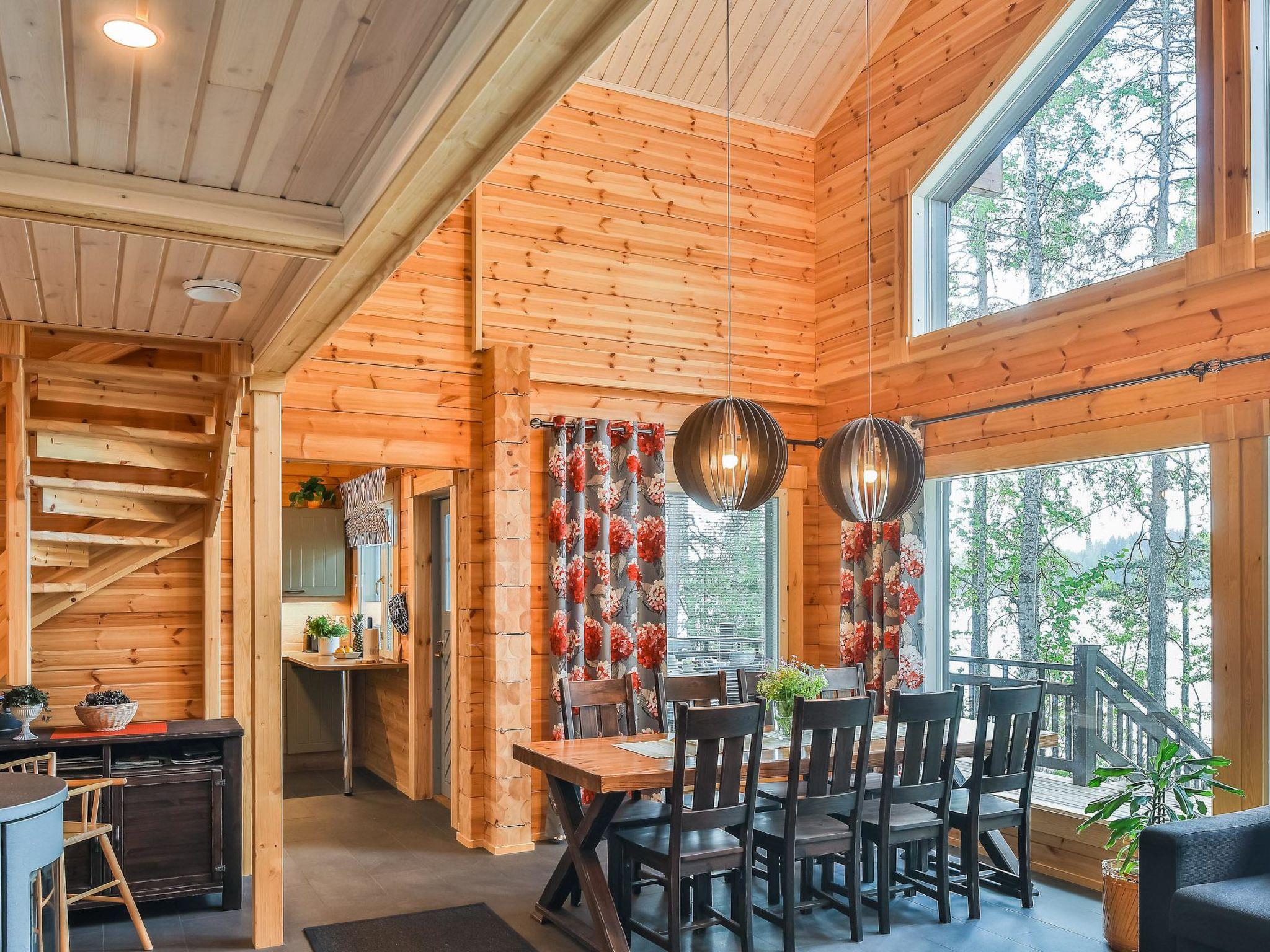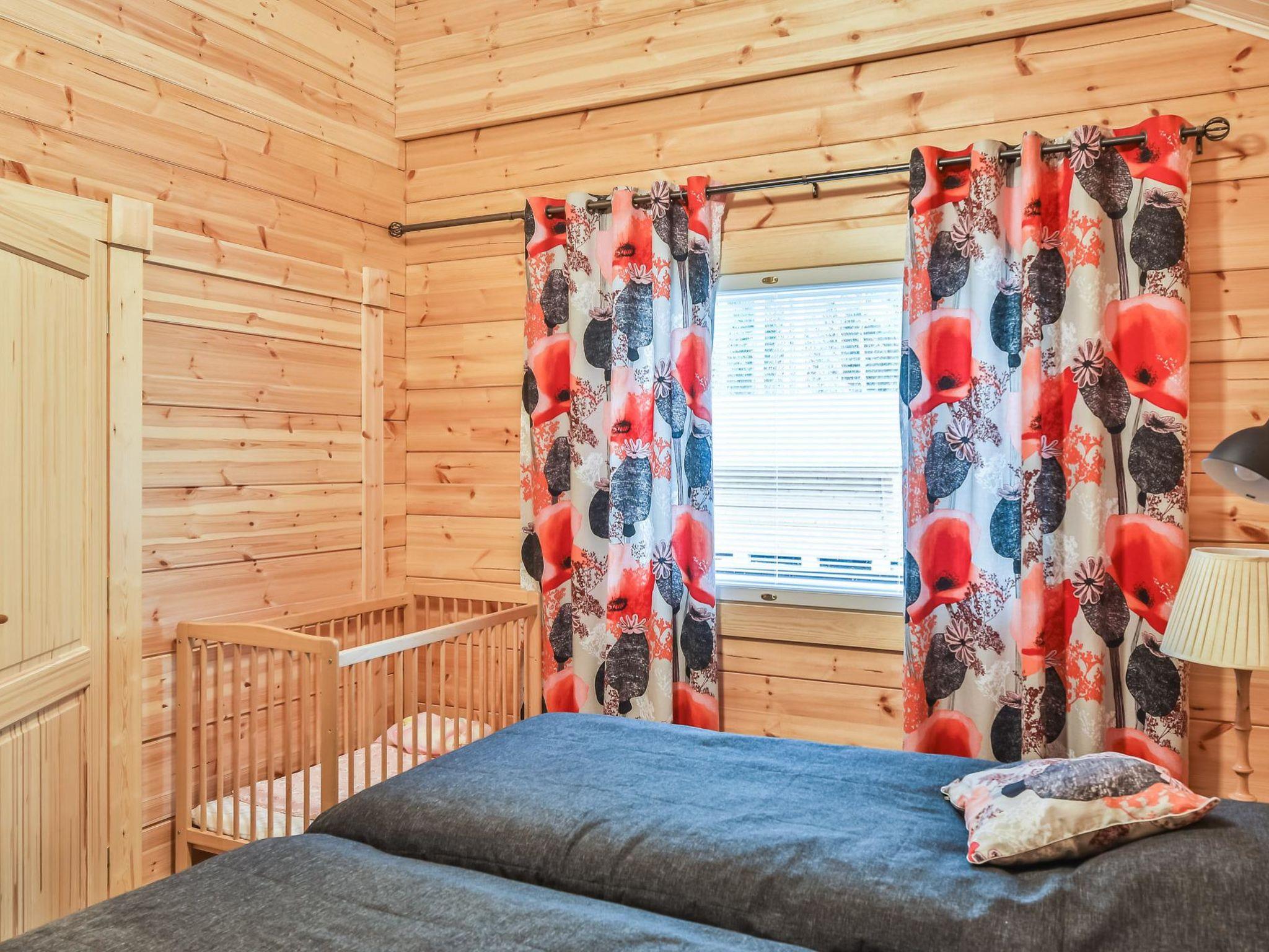 Lamellar log chalet 2018, kitchen, living room, 2 bedrooms both with 2 beds. Baby cot in one bedroom. Upstairs bedroom 4 beds. Washroom (2 showers), sauna (electric), utility room, hall and open porches. Toilet downstairs and upstairs.