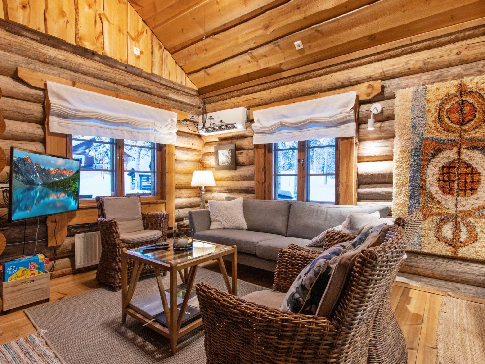 40 km north of Kolari, lake Äkäslompolo 1,5 km, swimming beach 3,5 km. Log cottage, built 2004. Livingroom/kitchen with extendable bed sofa, one bedroom with two separate beds, loft with 4 separate beds and bedsofa, electric sauna, bathroom/toilet. Storage with ski maintenance stand and infra-red heater. Wifi ( password in cottage manual).