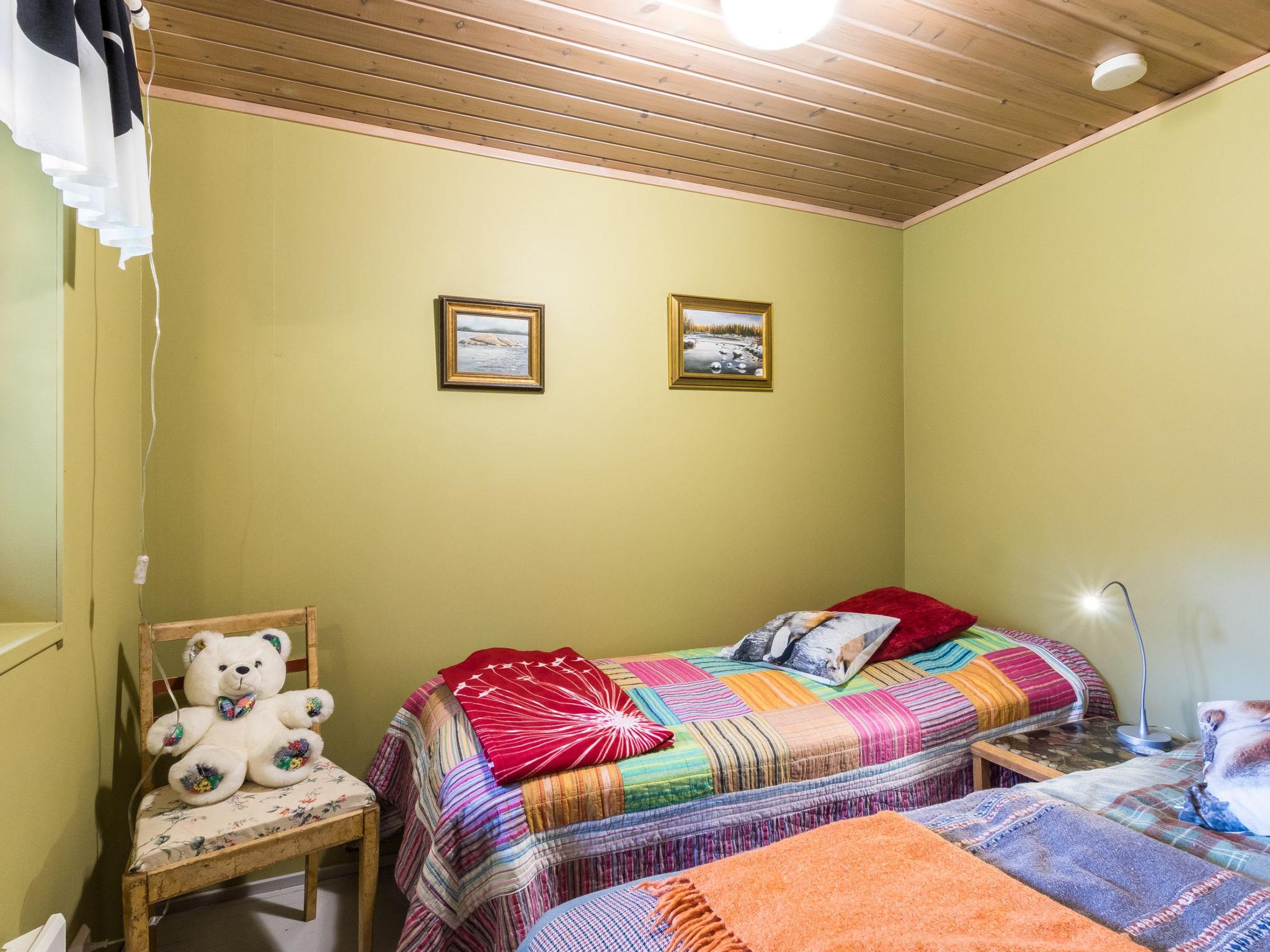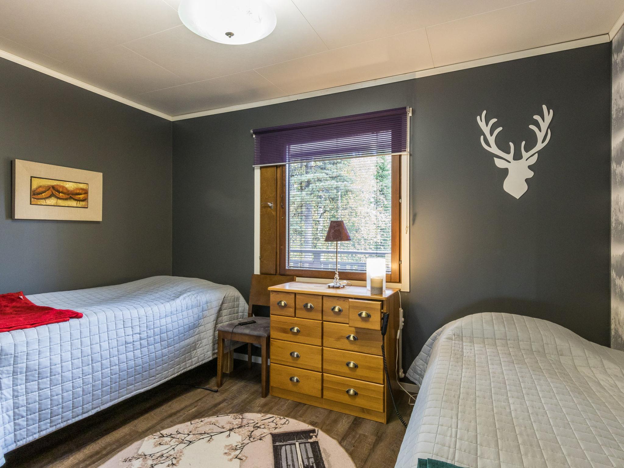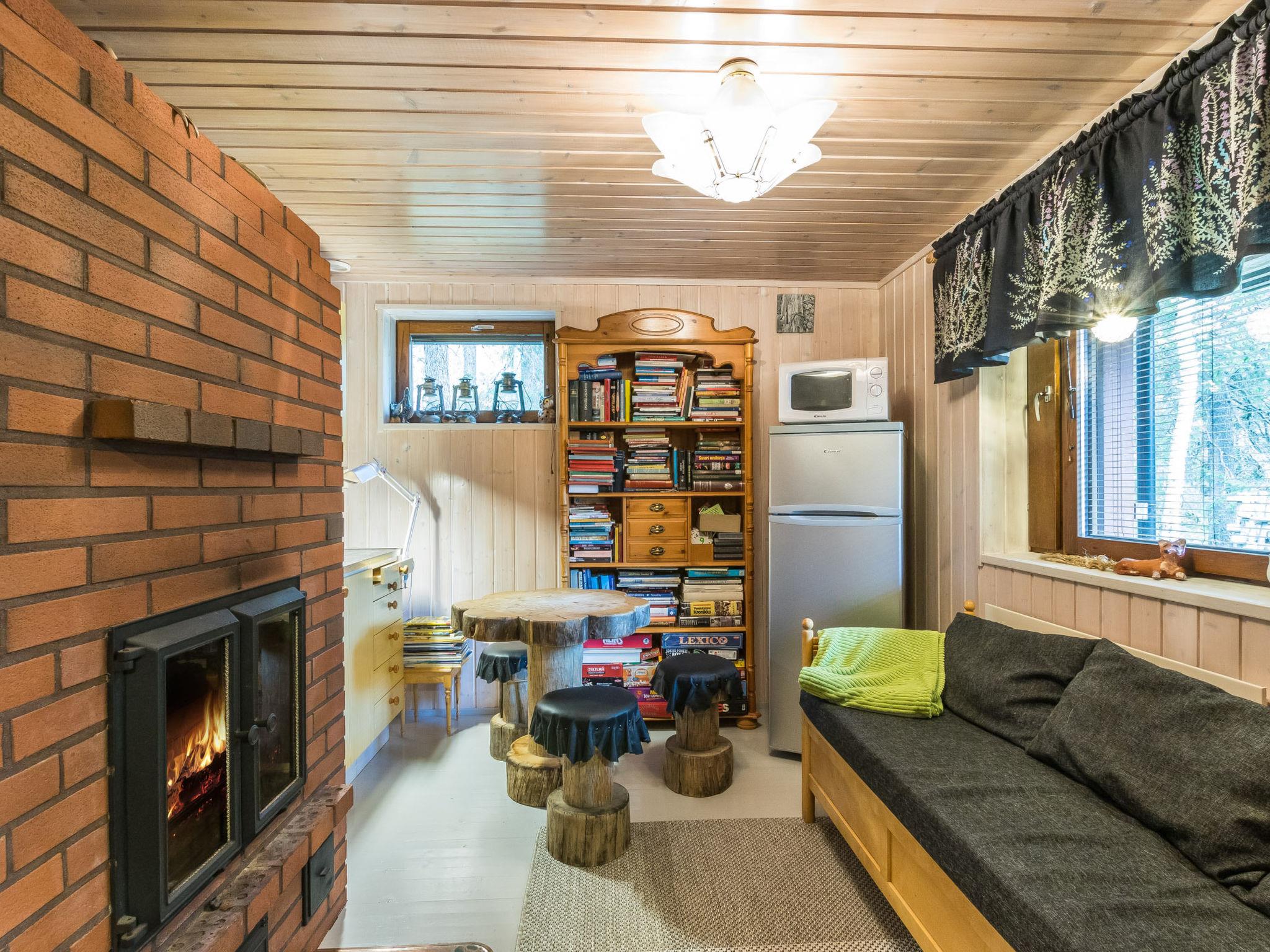 The ground floor offers bedroom with two single beds a cozy living area with a fireplace, a sauna with an electric stove, a shower, and a separate toilet. The bathroom and sauna were renovated in January 2020, and the bedrooms were updated in 2022.